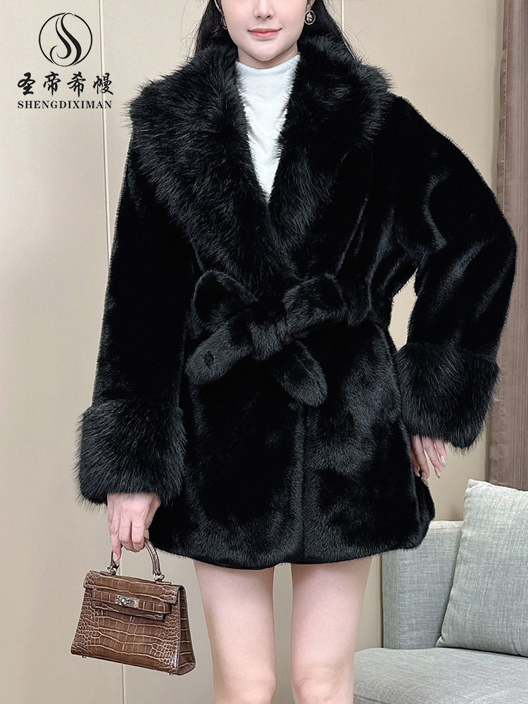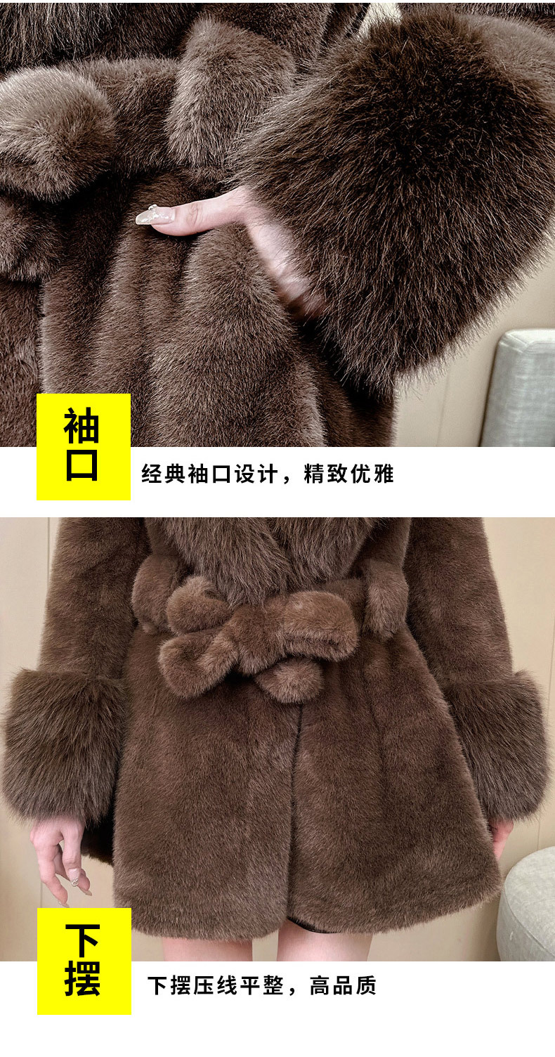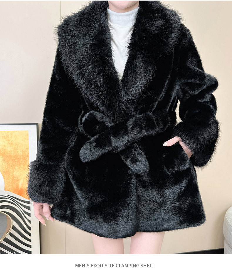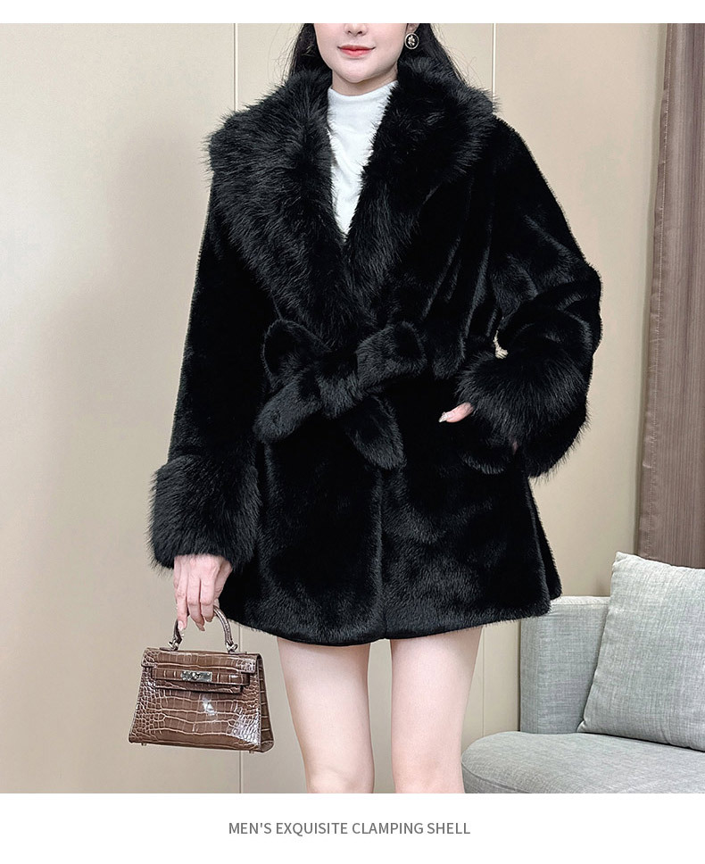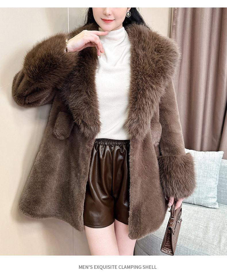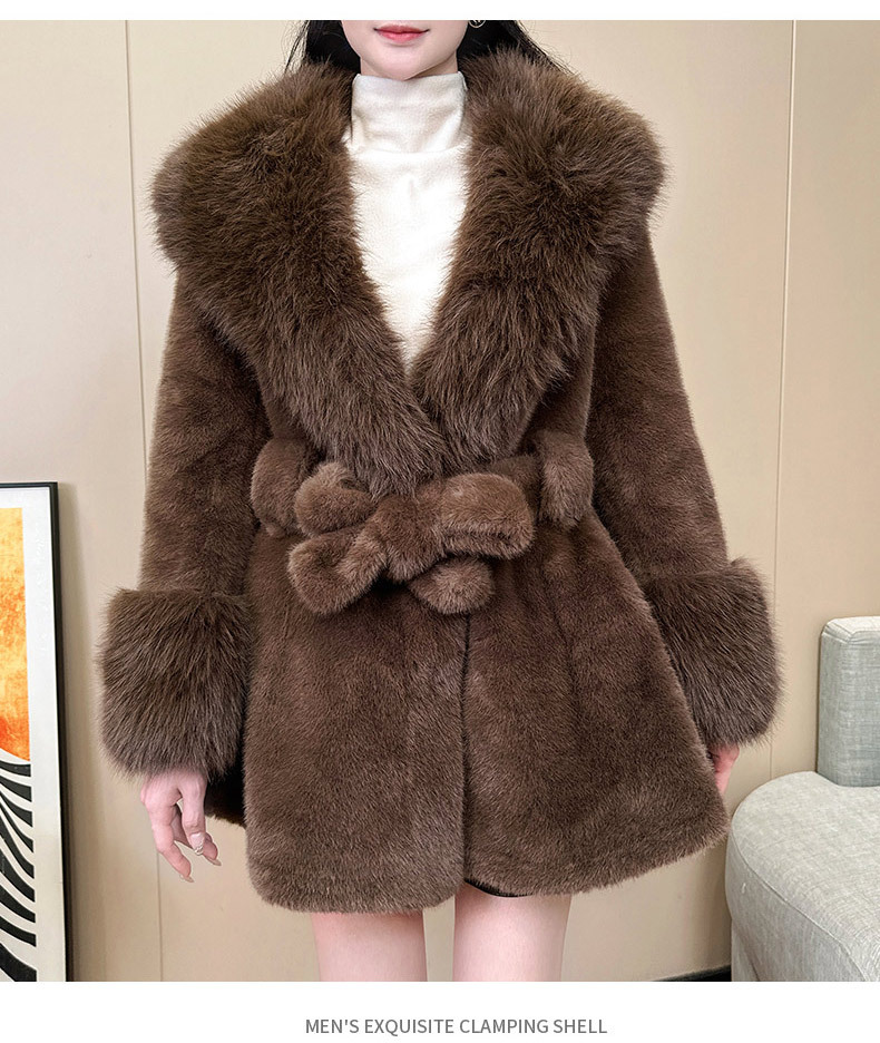 2024 зимний новый женский меховое пальто мода теплая женская норковая пальто тонкая талия средняя длинная кожаная одежда