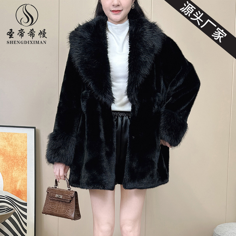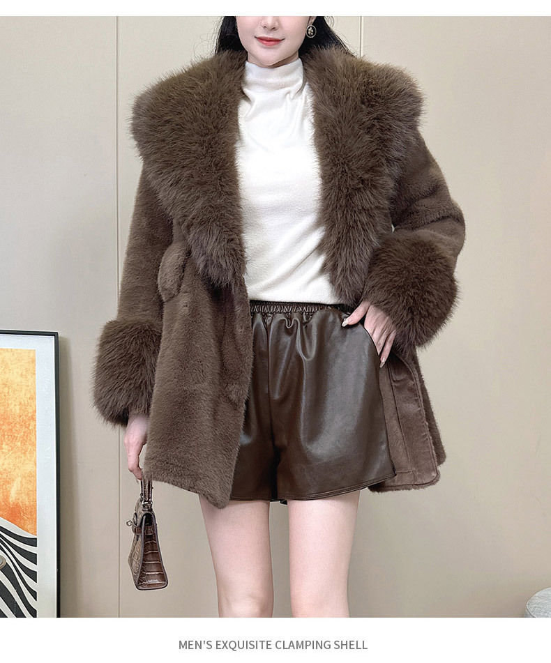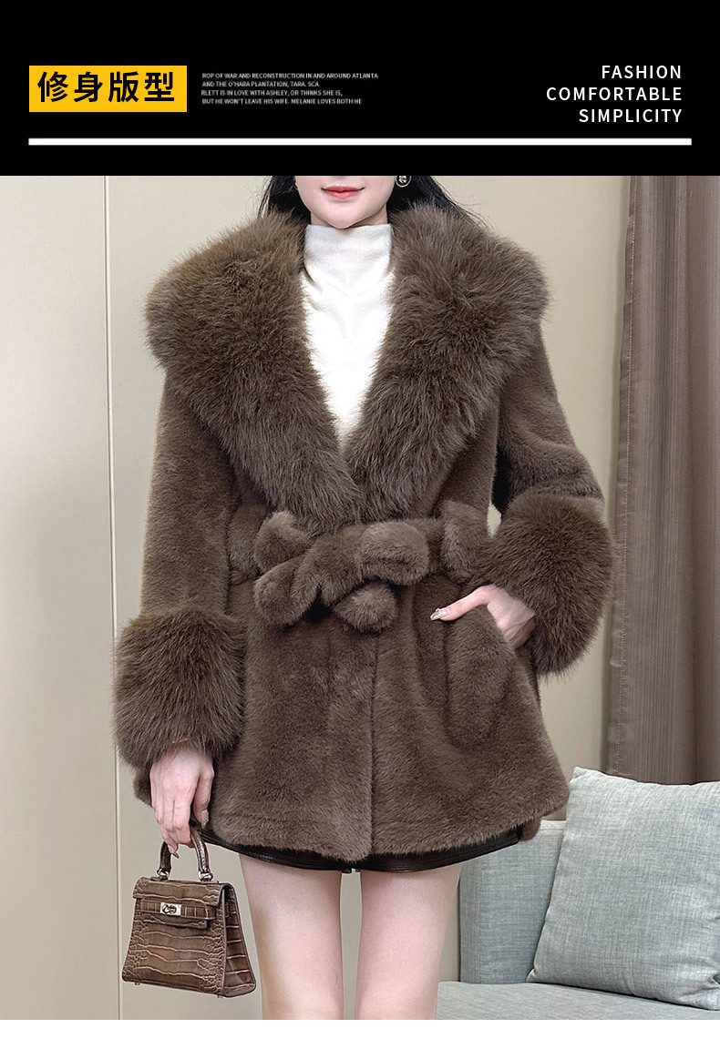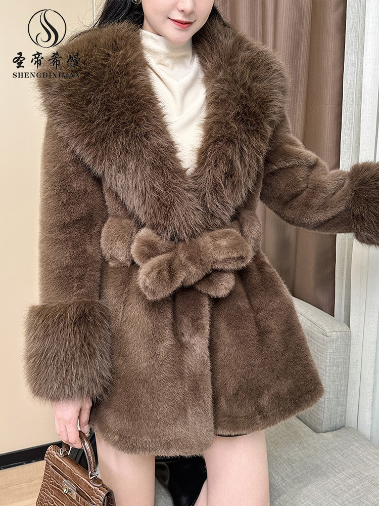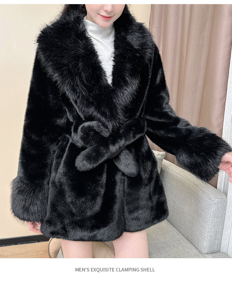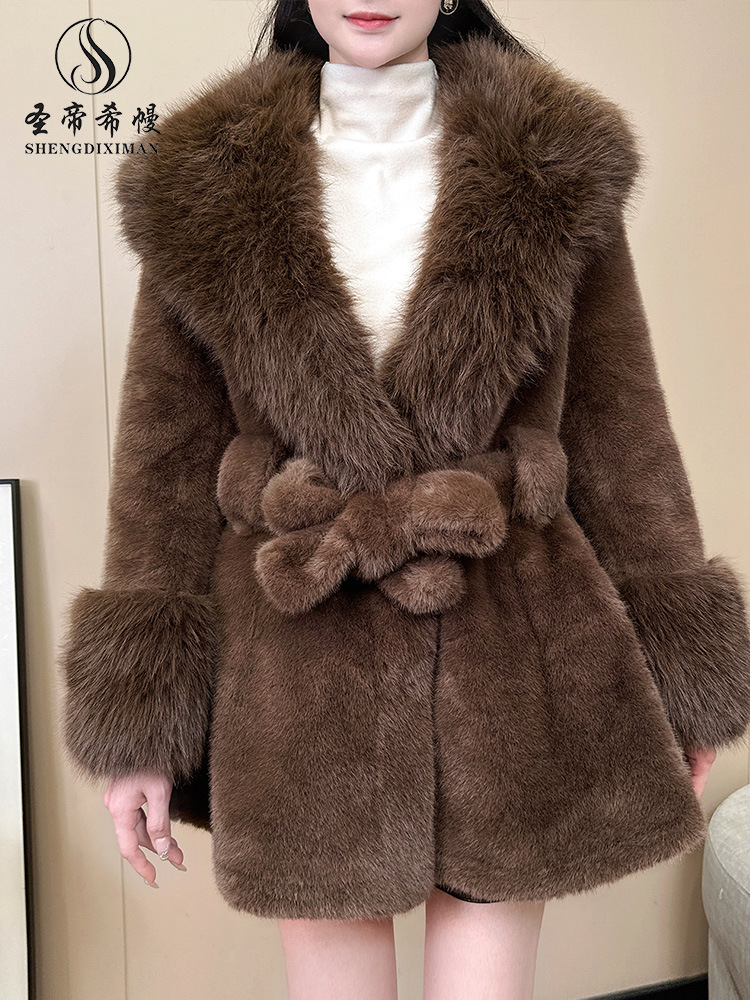 2024 зимний новый женский меховое пальто мода теплая женская норковая пальто тонкая талия средняя длинная кожаная одежда