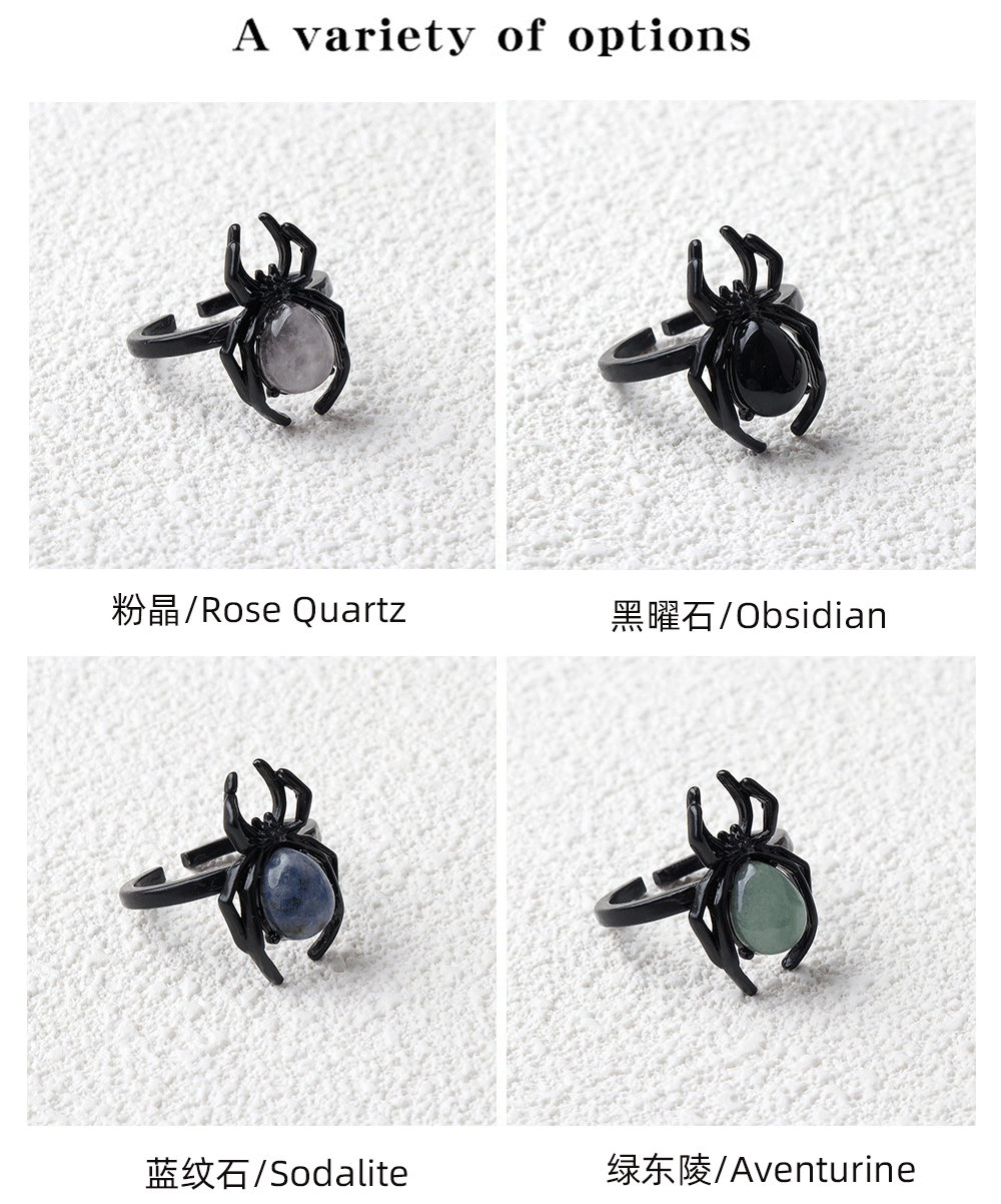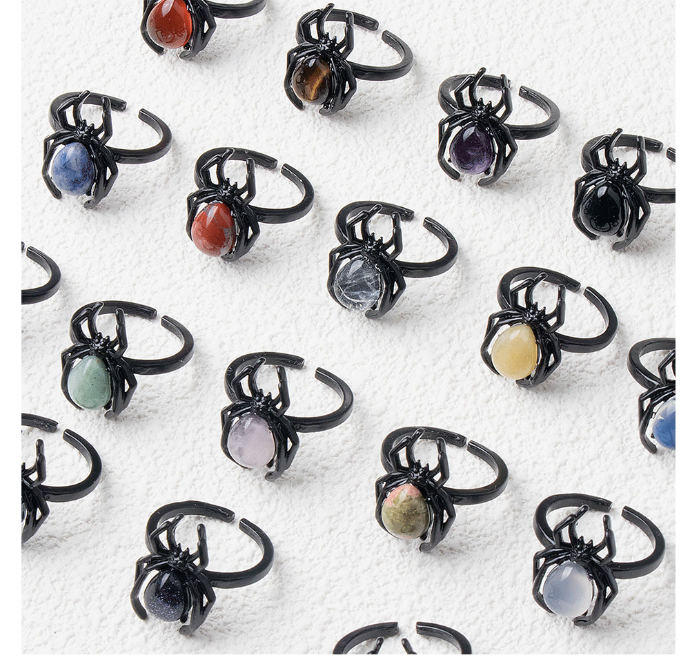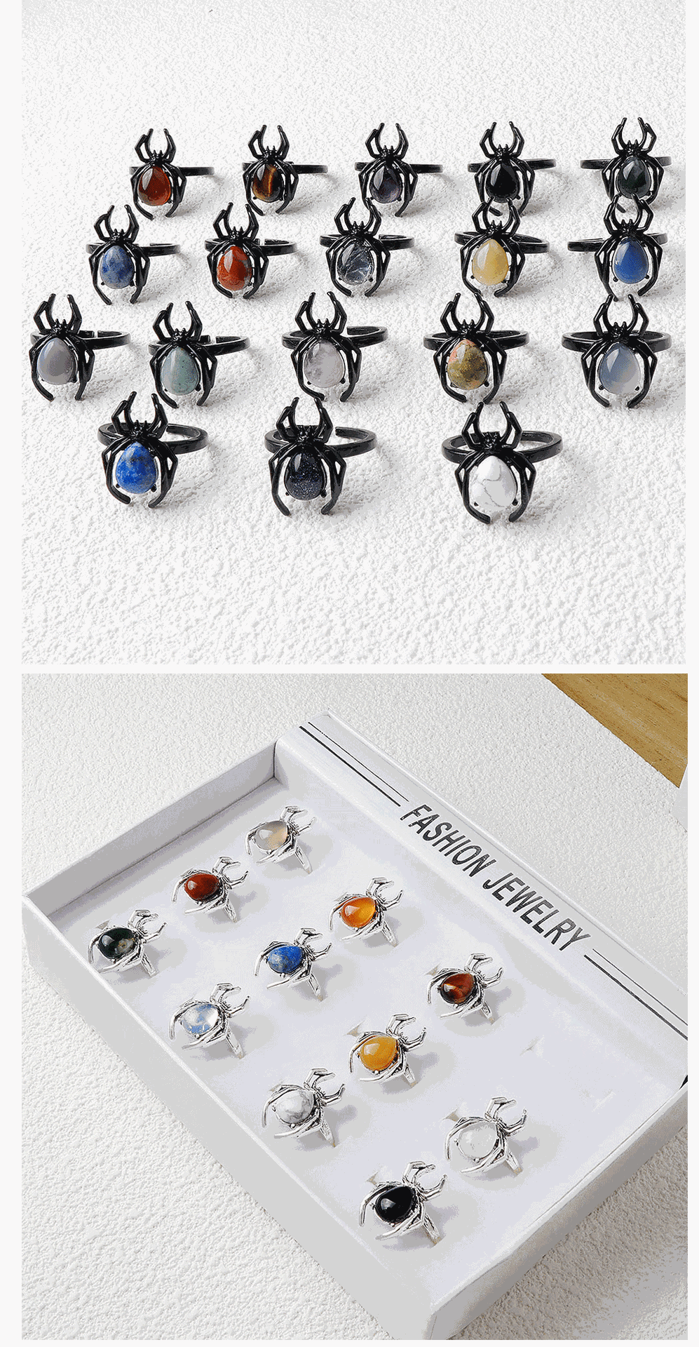 Натуральный хрустальный оникс камень инкрустированный драгоценный камень панк паук кольцо Хэллоуин аксессуары трансграничный новый
