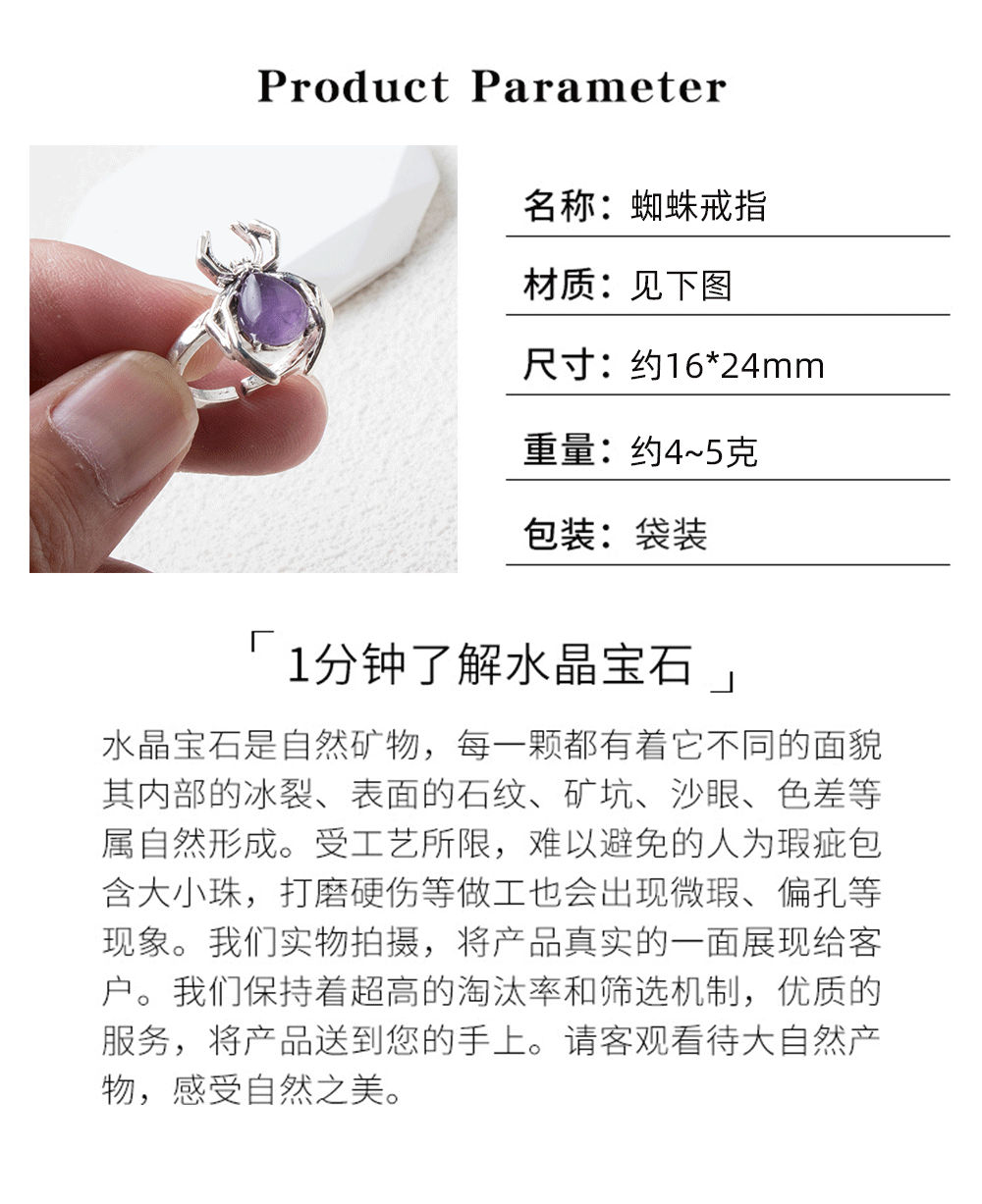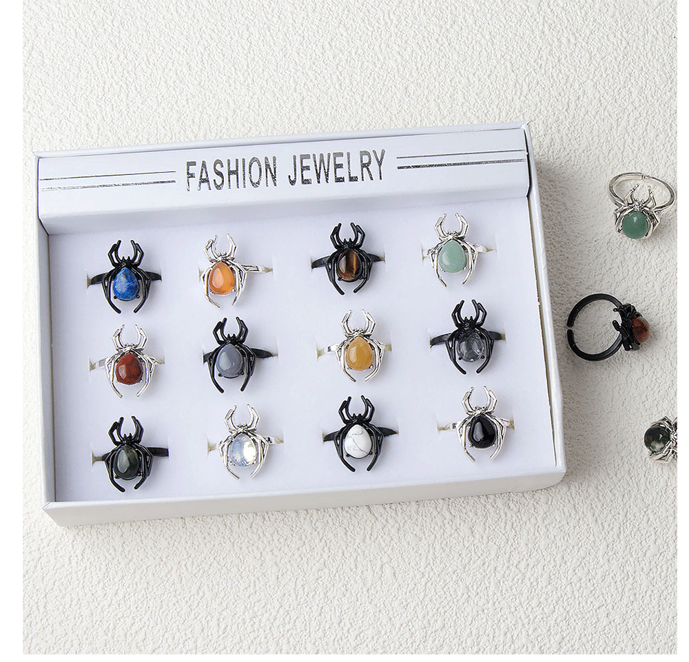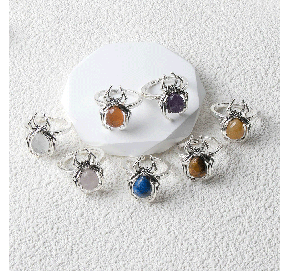 Натуральный хрустальный оникс камень инкрустированный драгоценный камень панк паук кольцо Хэллоуин аксессуары трансграничный новый