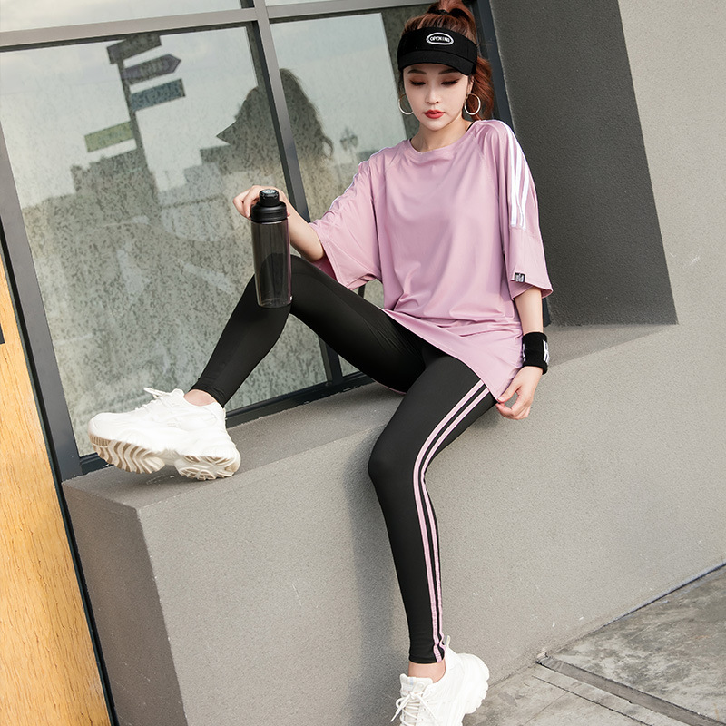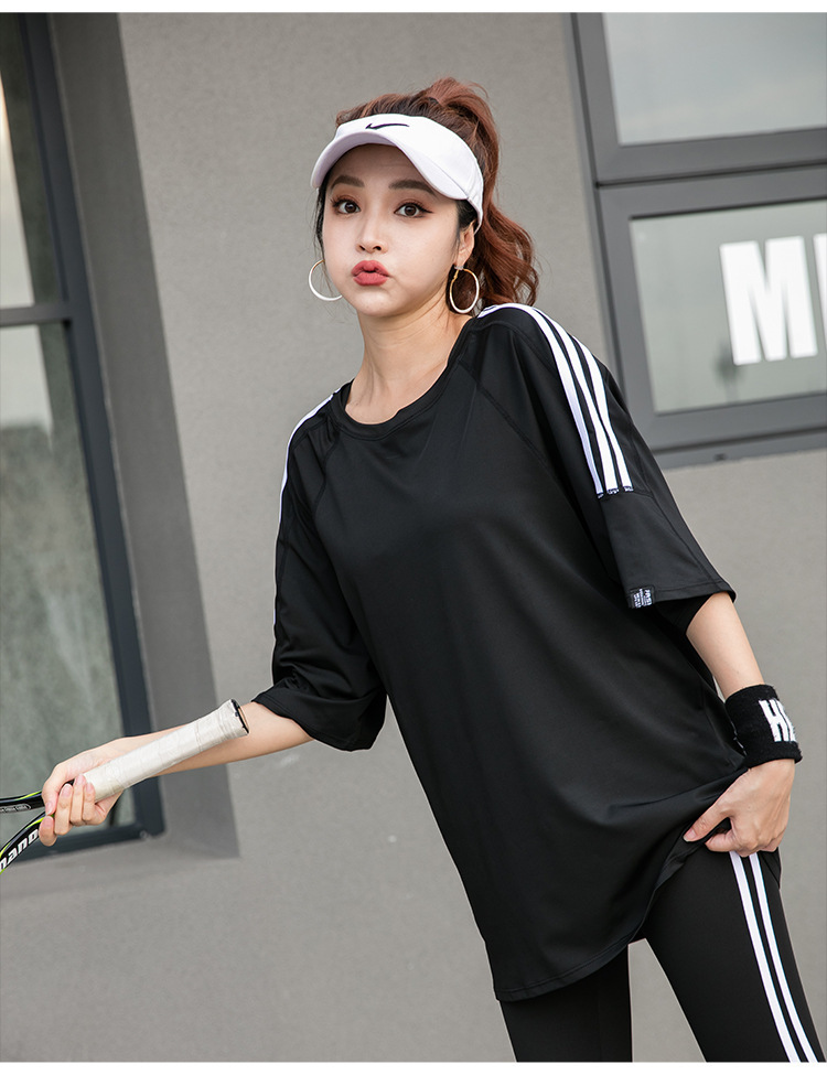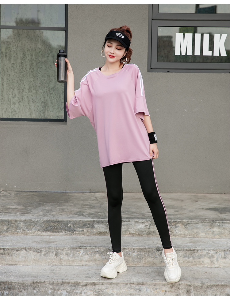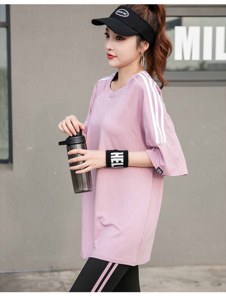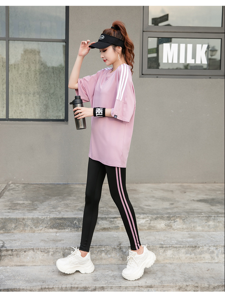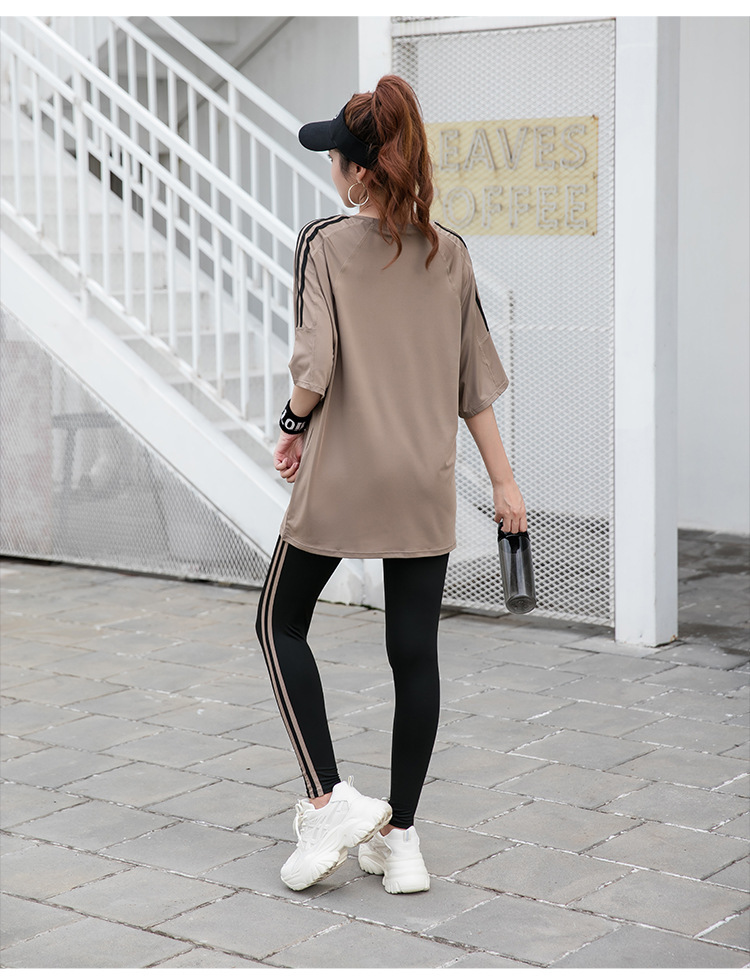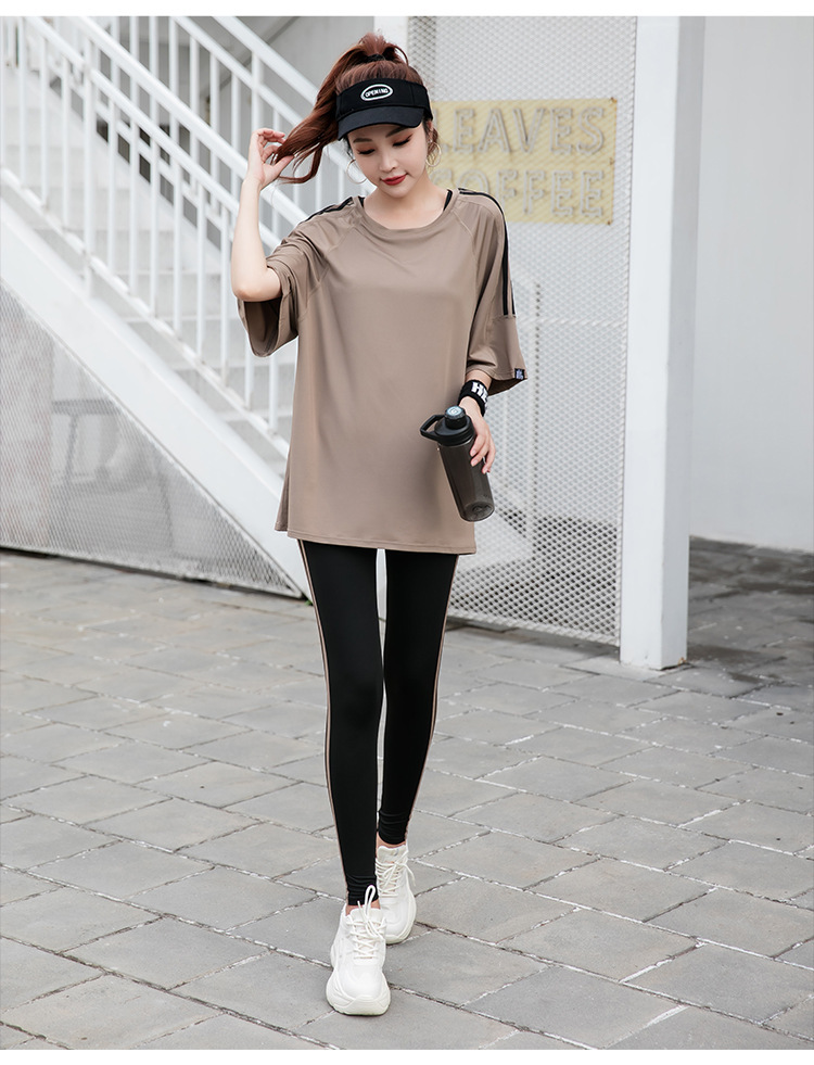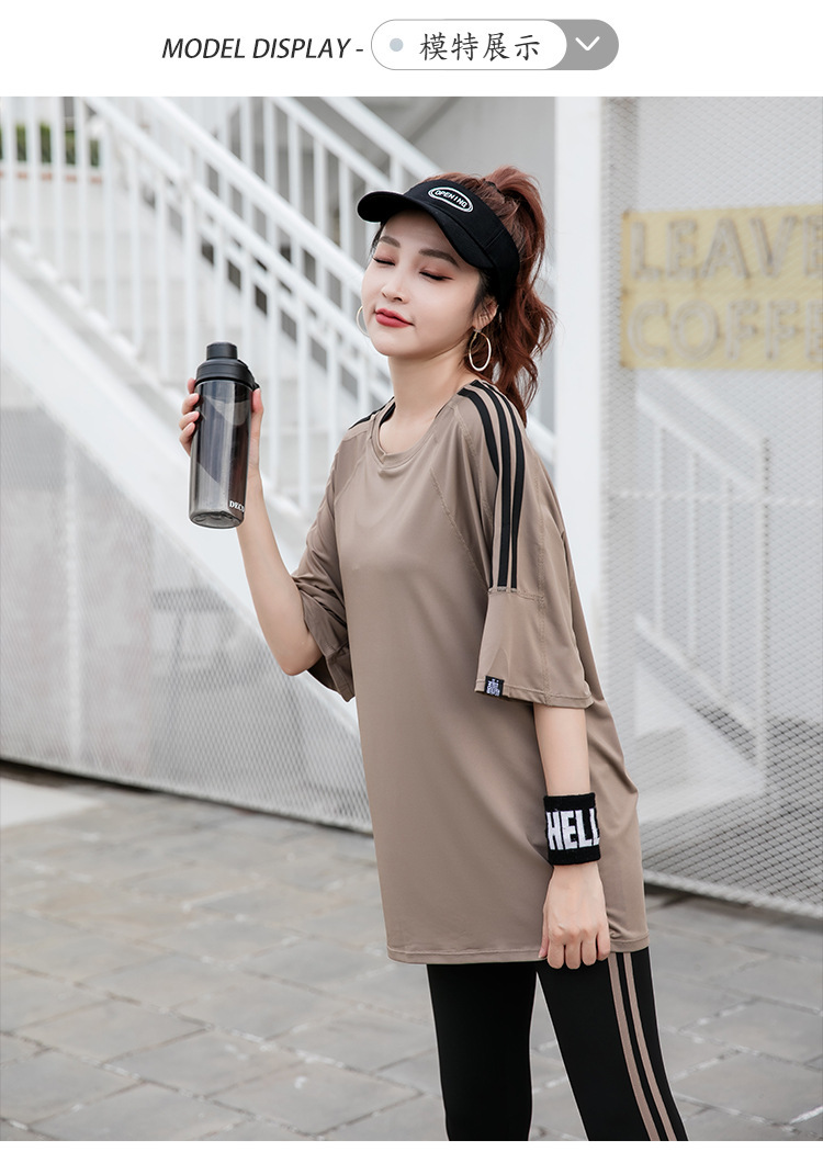 Спортивная йога с короткими рукавами футболка бег по утреннему бегу 2024 новый костюм тетя свободная и тонкая