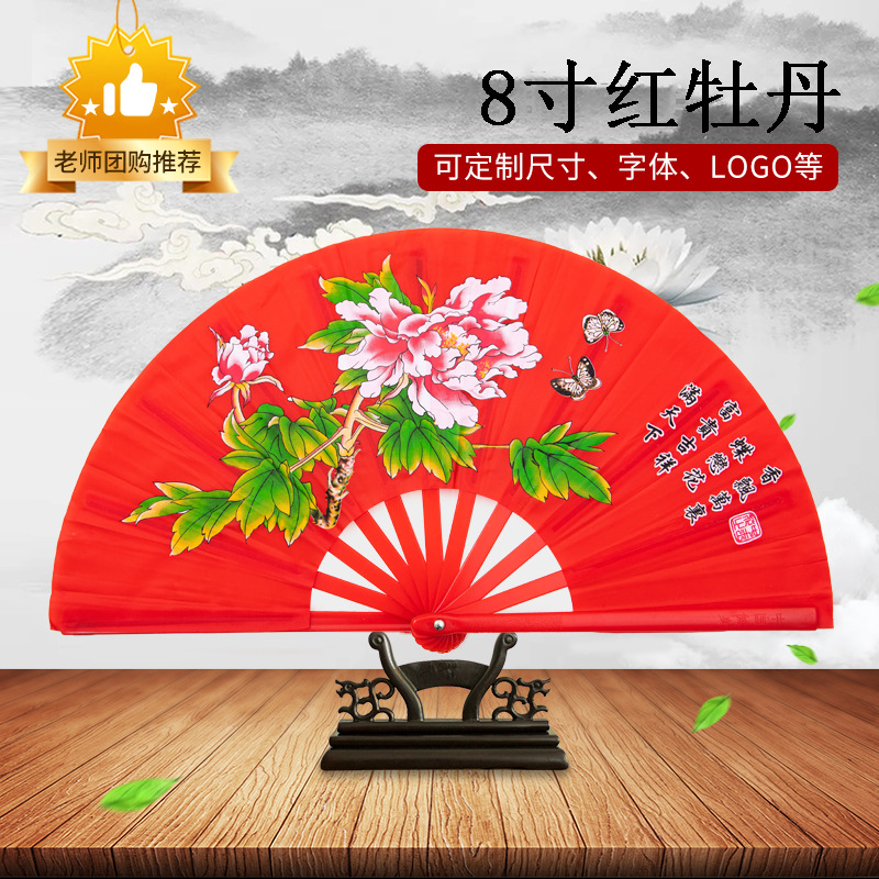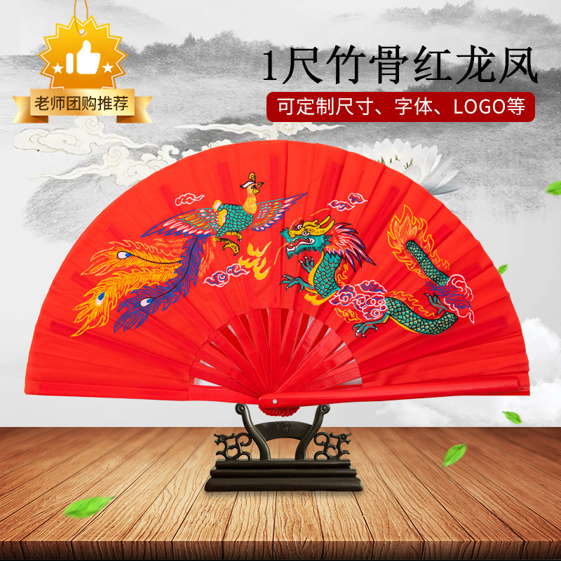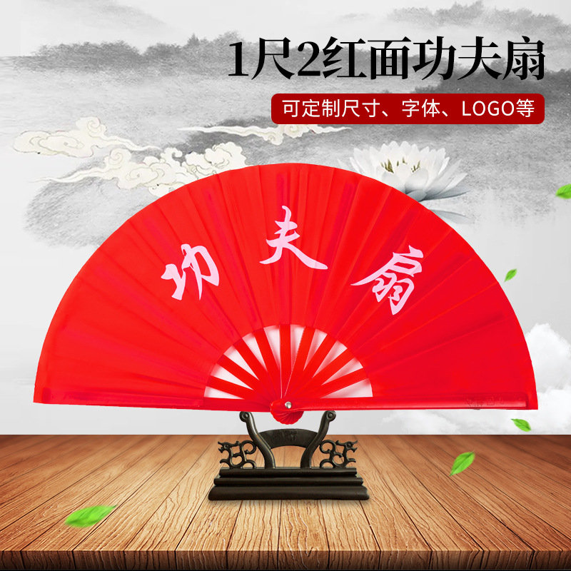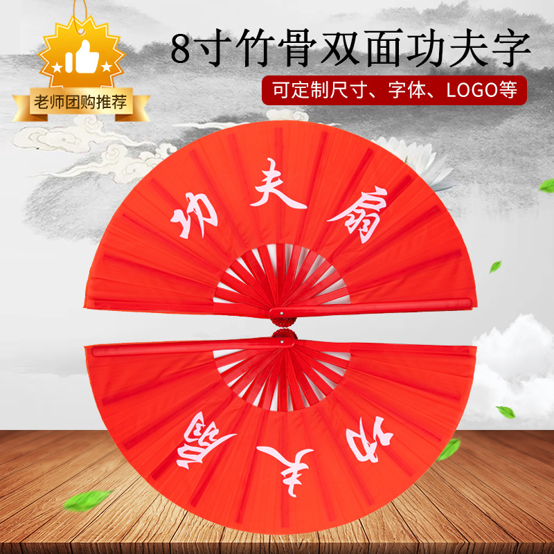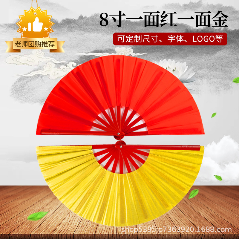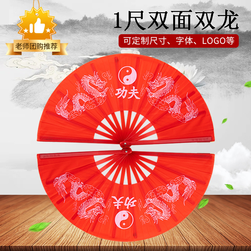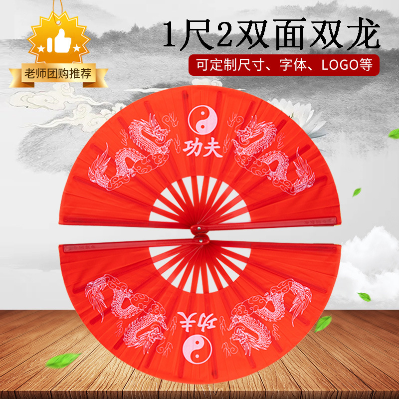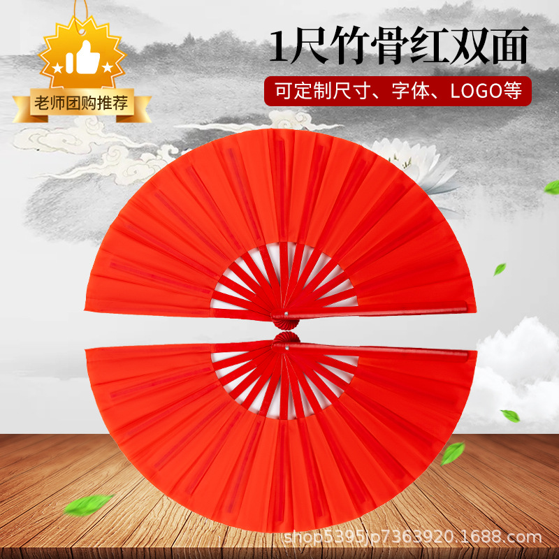 Поклонник Тайцзи Кунг-фу Поклонник Студент Танцор Поклонник Двусторонний вентилятор, веер складной, китайский стиль, боевые искусства, красный веер