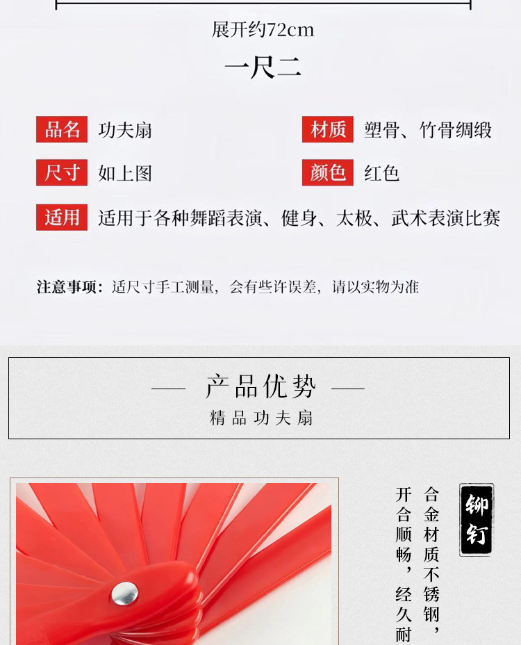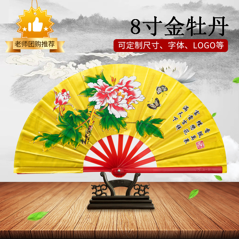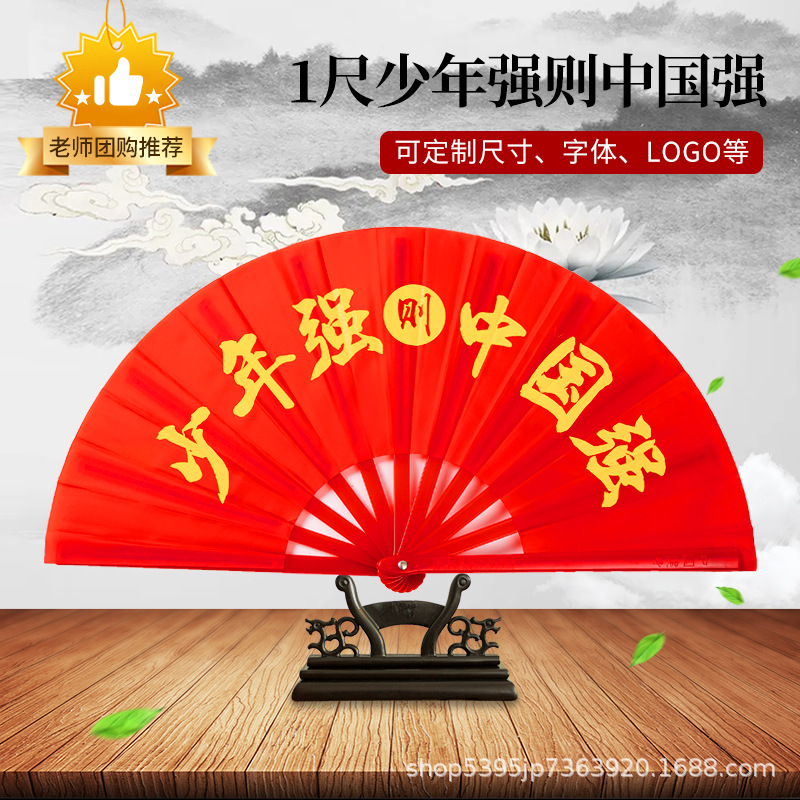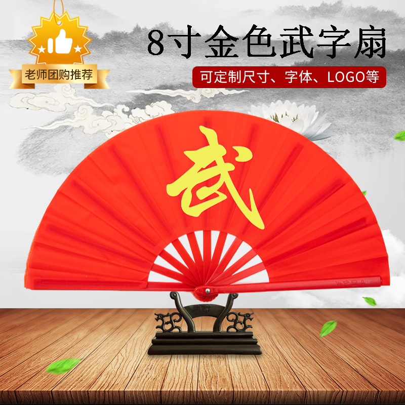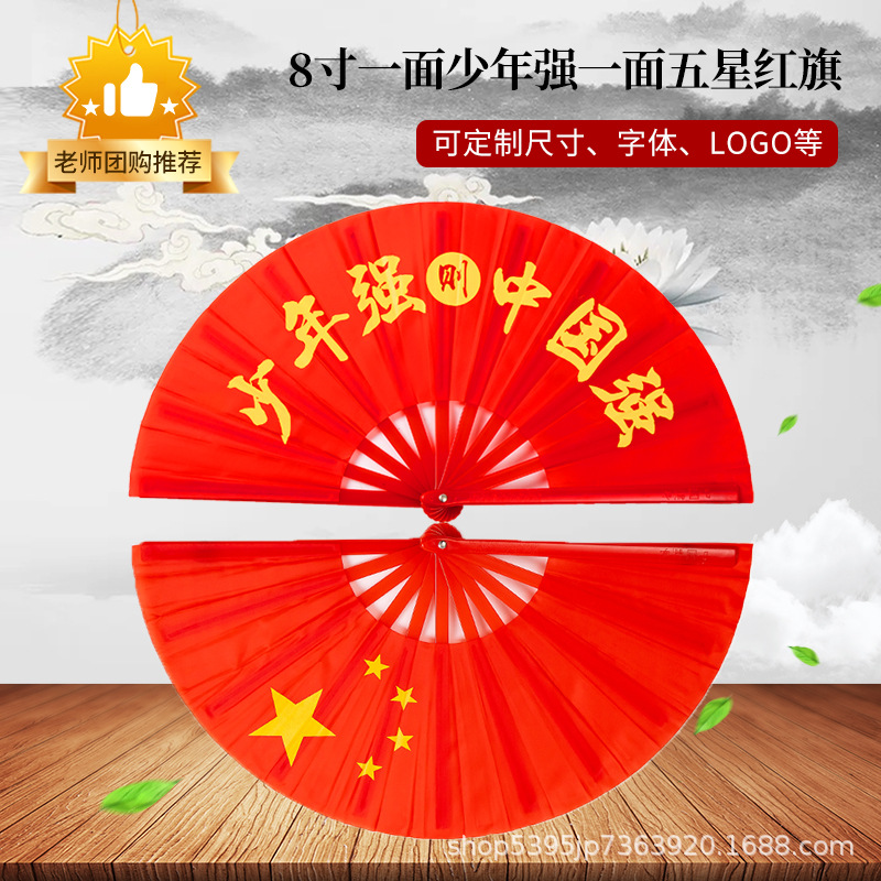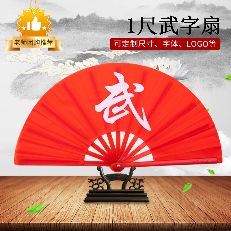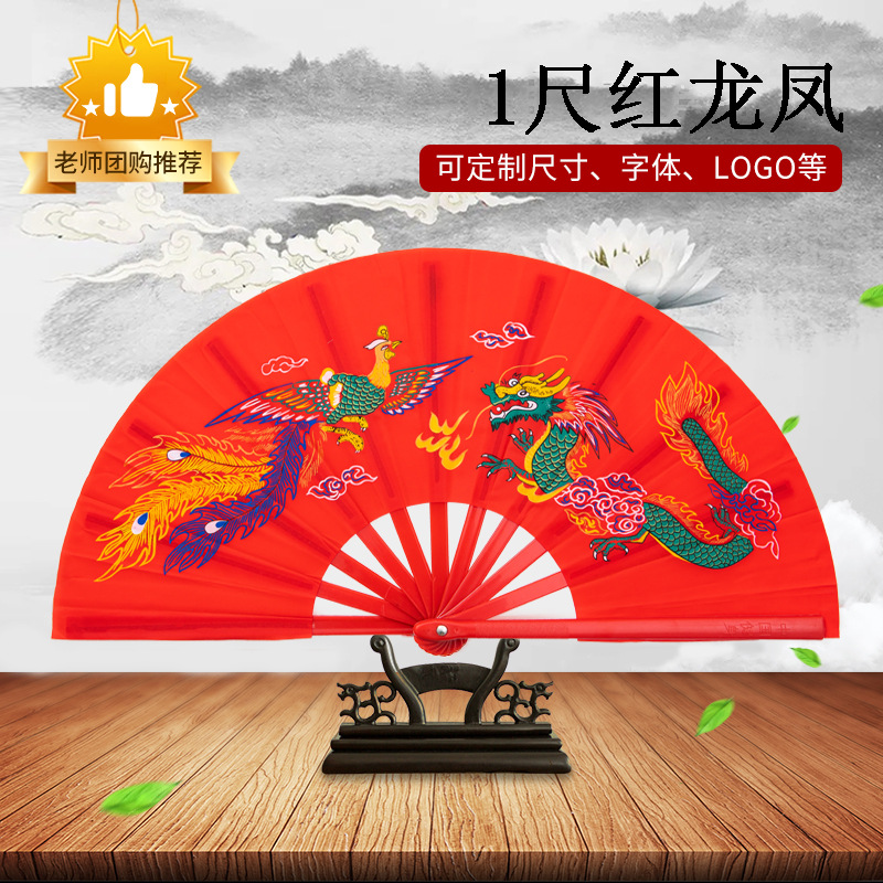 Поклонник Тайцзи Кунг-фу Поклонник Студент Танцор Поклонник Двусторонний вентилятор, веер складной, китайский стиль, боевые искусства, красный веер