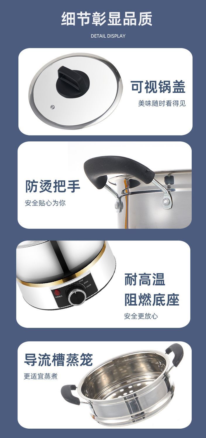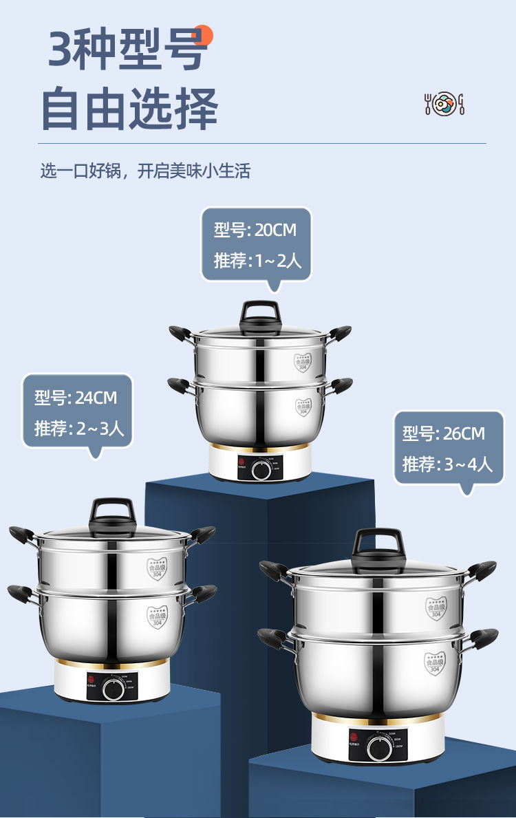 Многофункциональная электрическая кастрюля Wanlida 304, универсальная электрическая сковорода, интегрированная электрическая пароварка для приготовления на пару и варки, оптом для общежитий