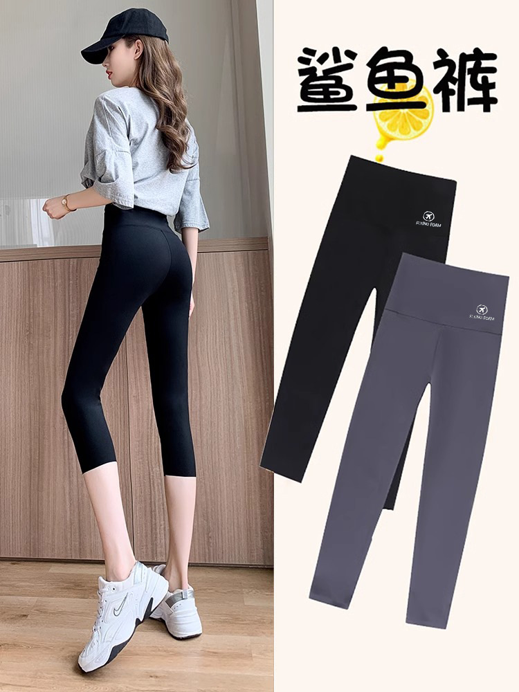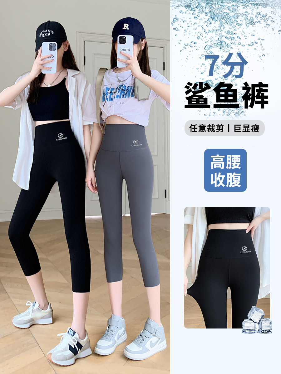 Семиочковатые леггинсы дамы летняя тонкая наружная одежда с высокой талией плюс размер велосипедные штаны йоги 7 очков самолет акула брюки
