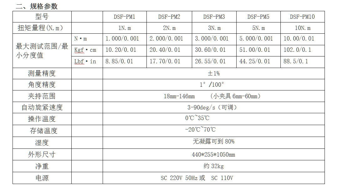 DSF-PM1(1N.m); DSF-PM2(2N.m); DSF-PM3(3N.m); DSF-PM5(5N.m); DSF-PM10(10N.m)