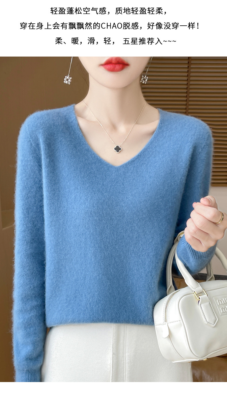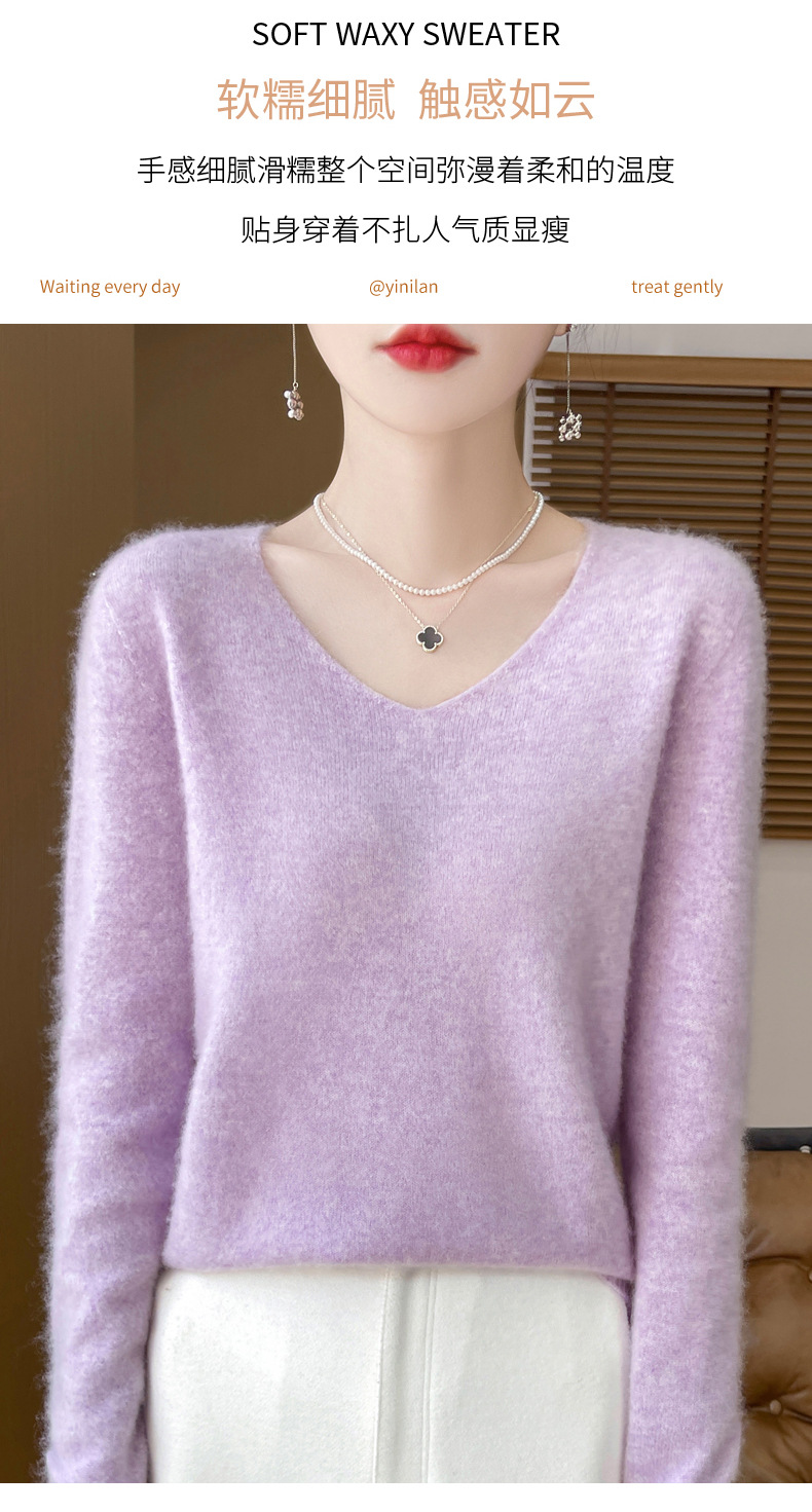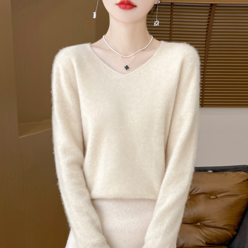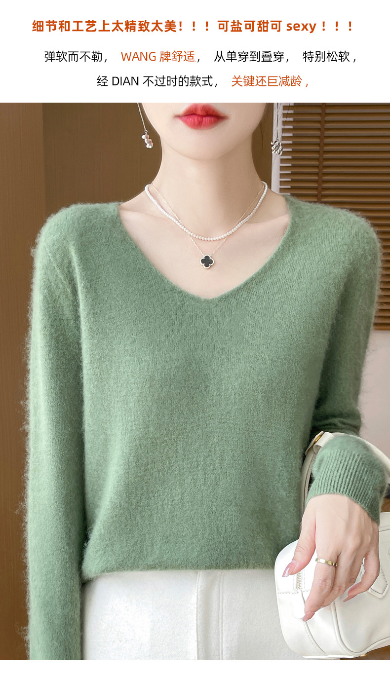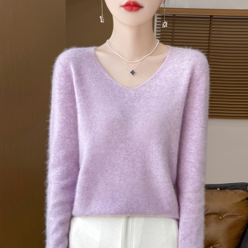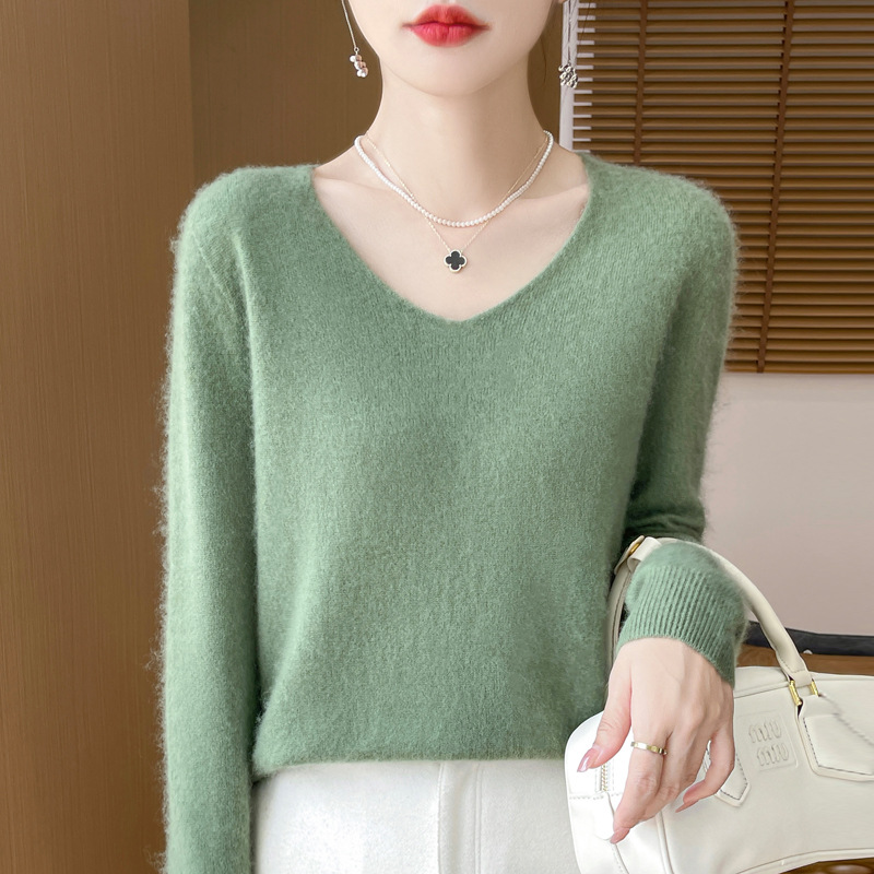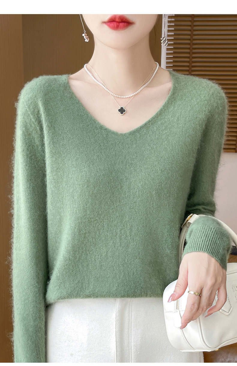 Бесшовный цельный свитер из 100 чистой шерсти, V-образный воротник, чистый цвет, с длинными рукавами, нормальный дизайн, 25, новый женский вязаный свитер