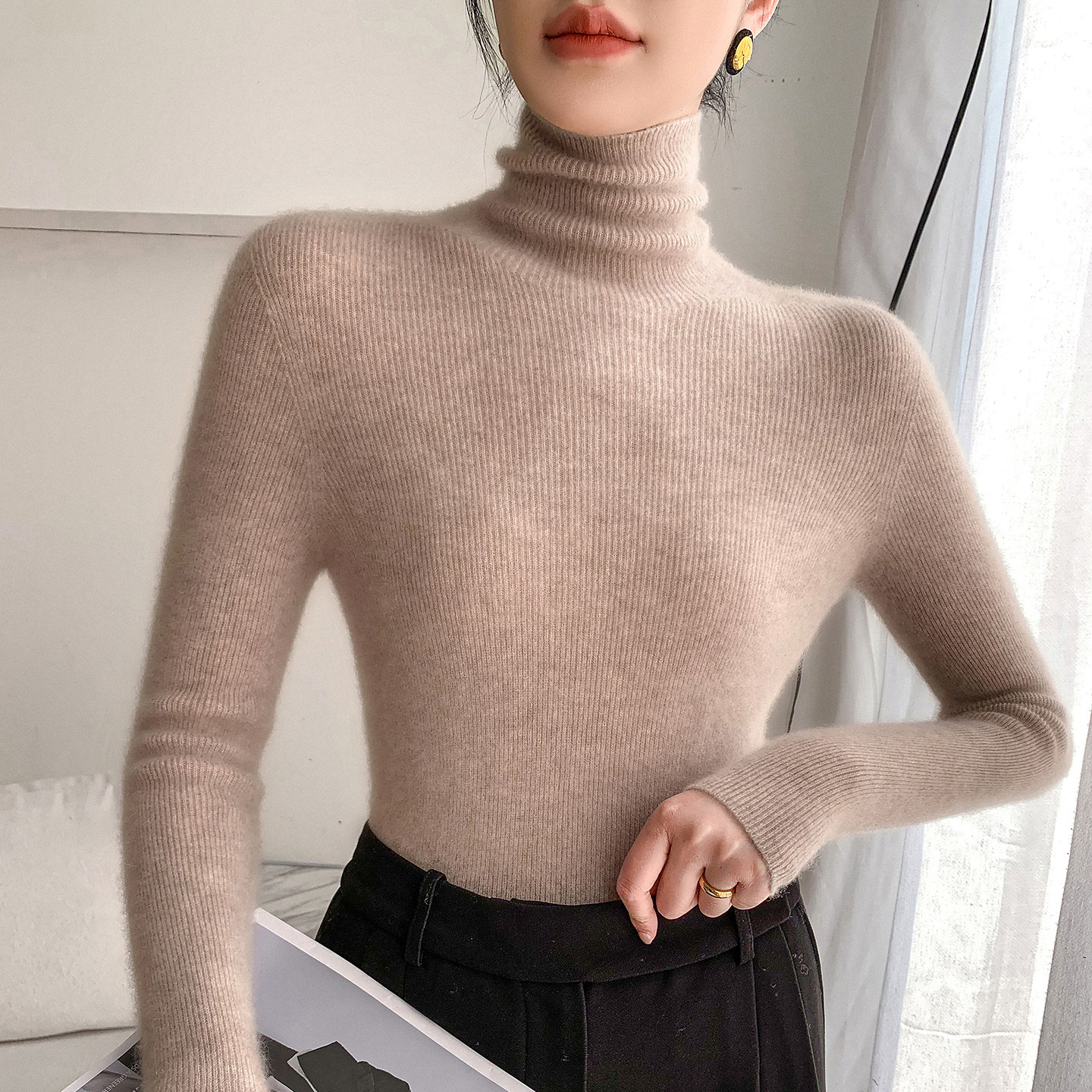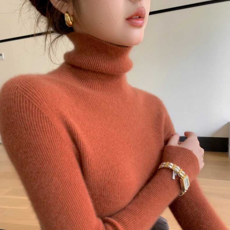 Женский свитер-водолазка из первоклассной ткани, осенне-зимняя трикотажная базовая одежда, новинка 2025 года, облегающая рубашка с длинным рукавом в корейском стиле.