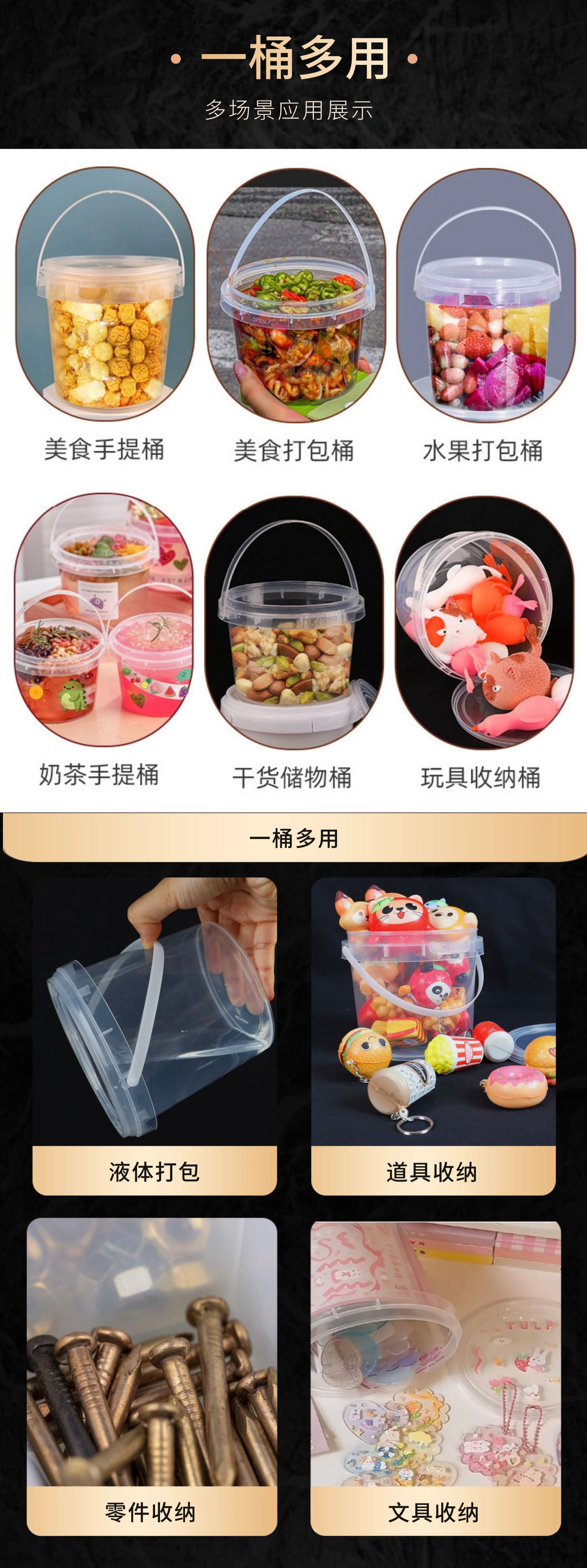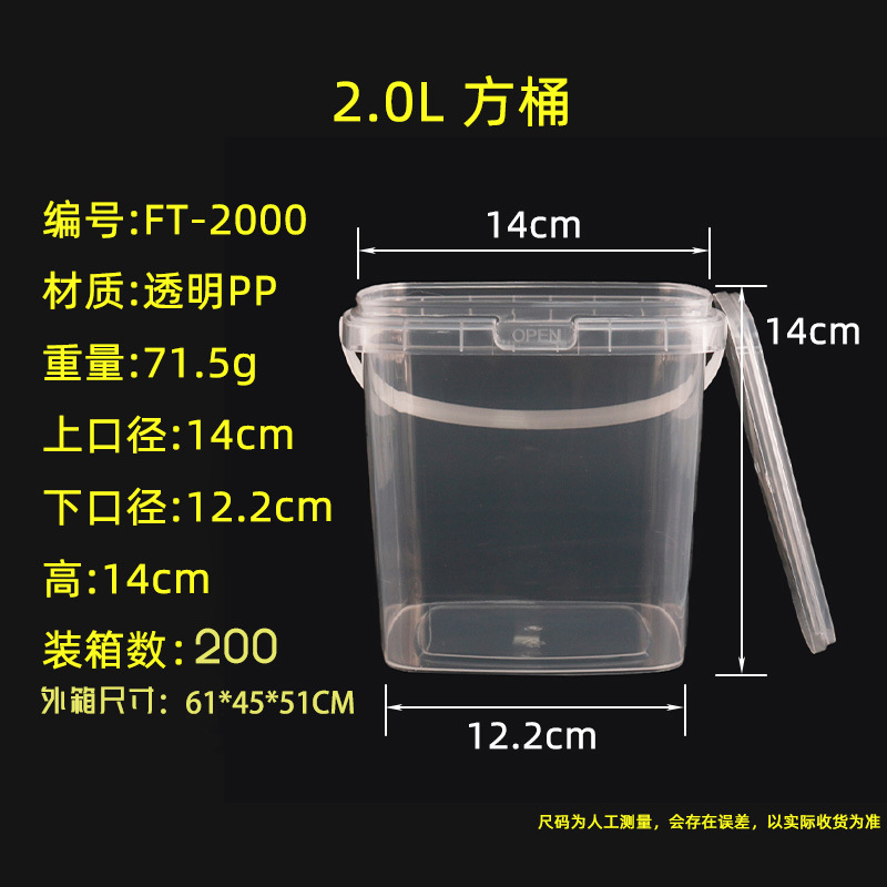 Пищевое утолщенное прозрачное герметичное квадратное круглое пластиковое ведро для упаковки, чай с молоком, фрукты, ведро для упаковки морепродуктов на вынос