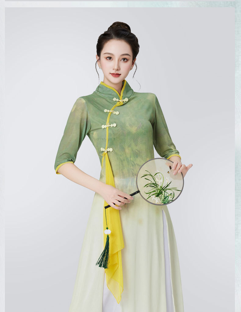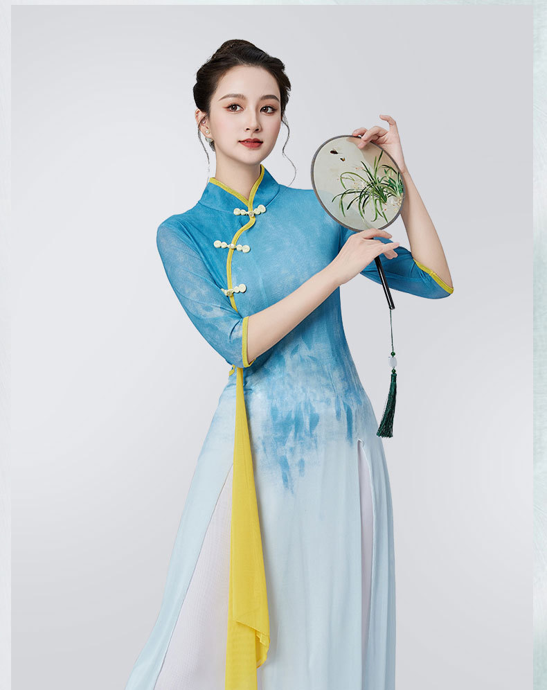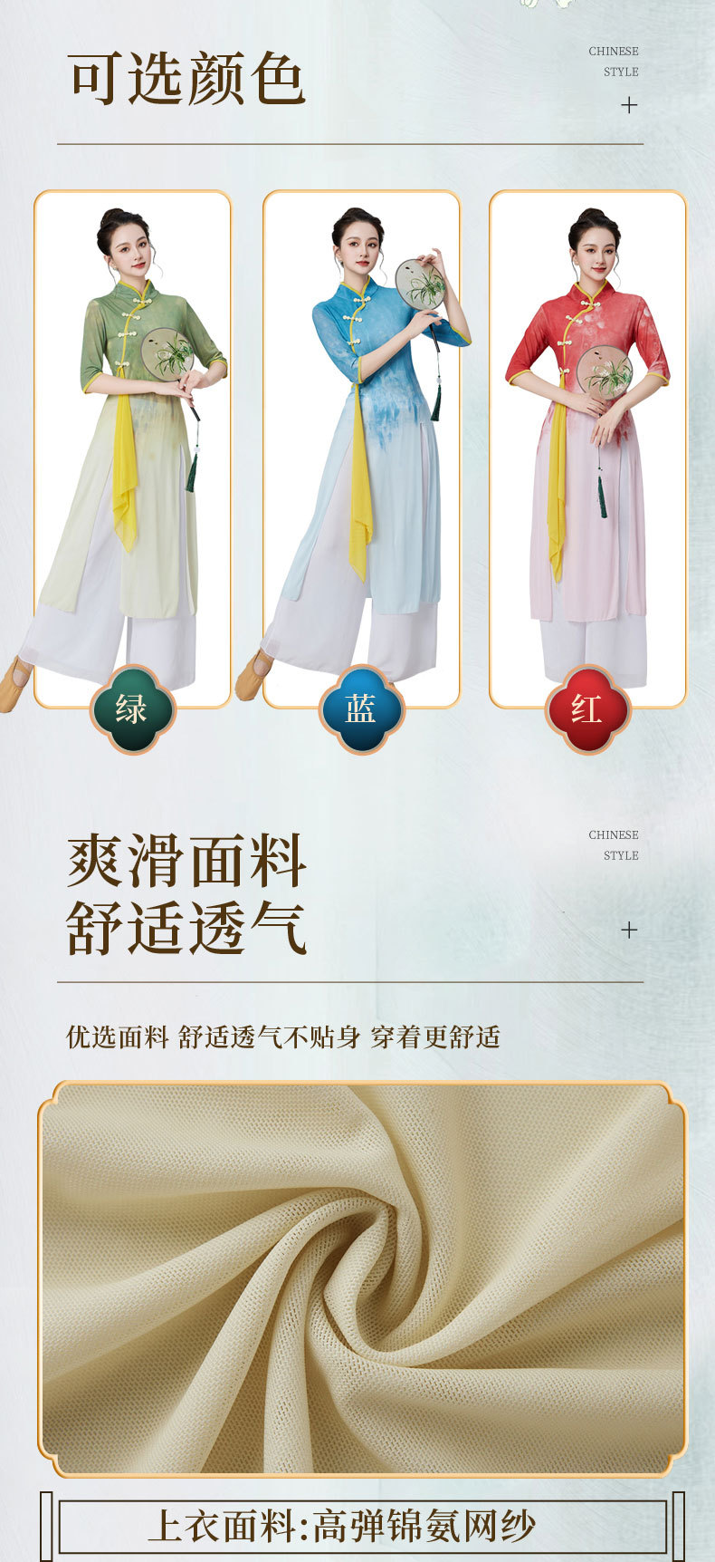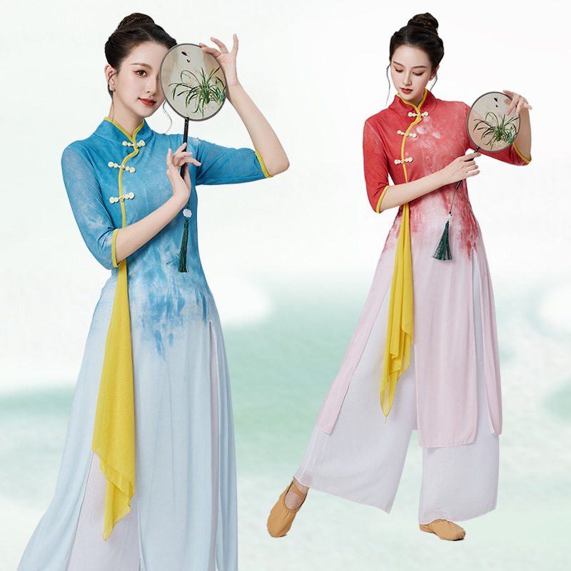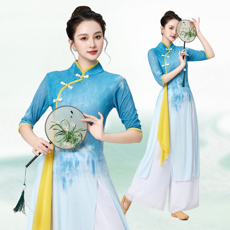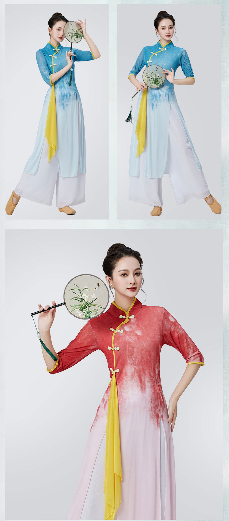 Клубы костюм новый набор китайского классического национального танца вентилятор градиент женский марля элегантный чонсам 2411