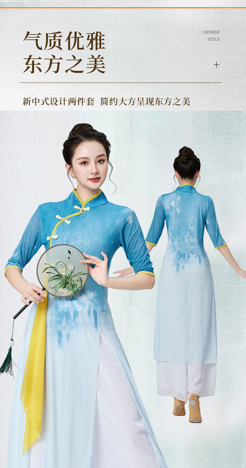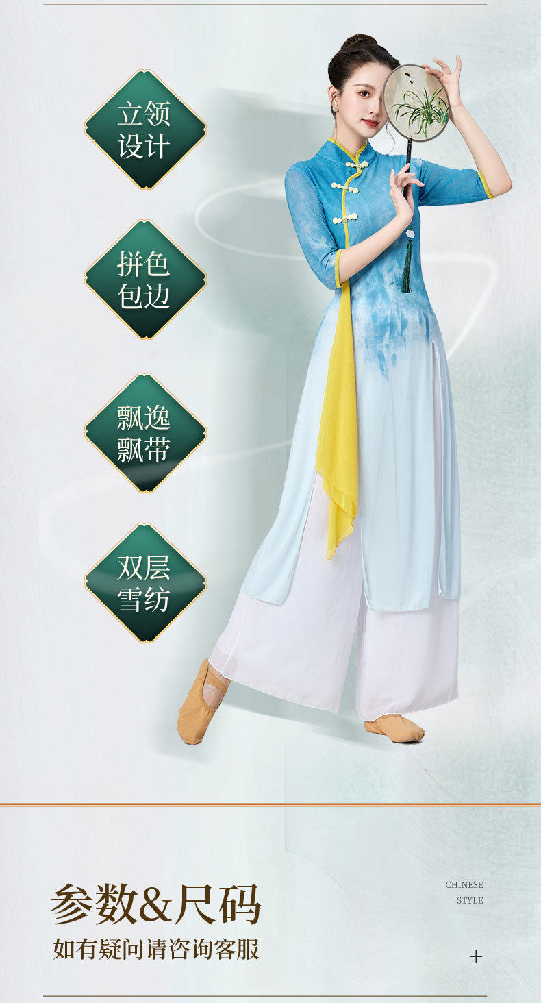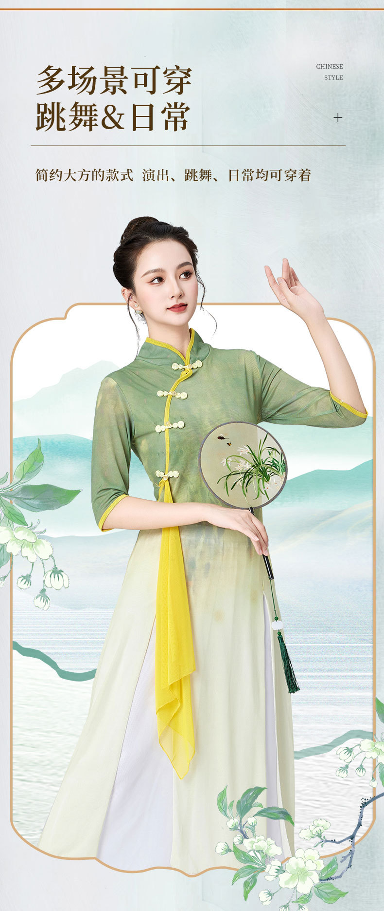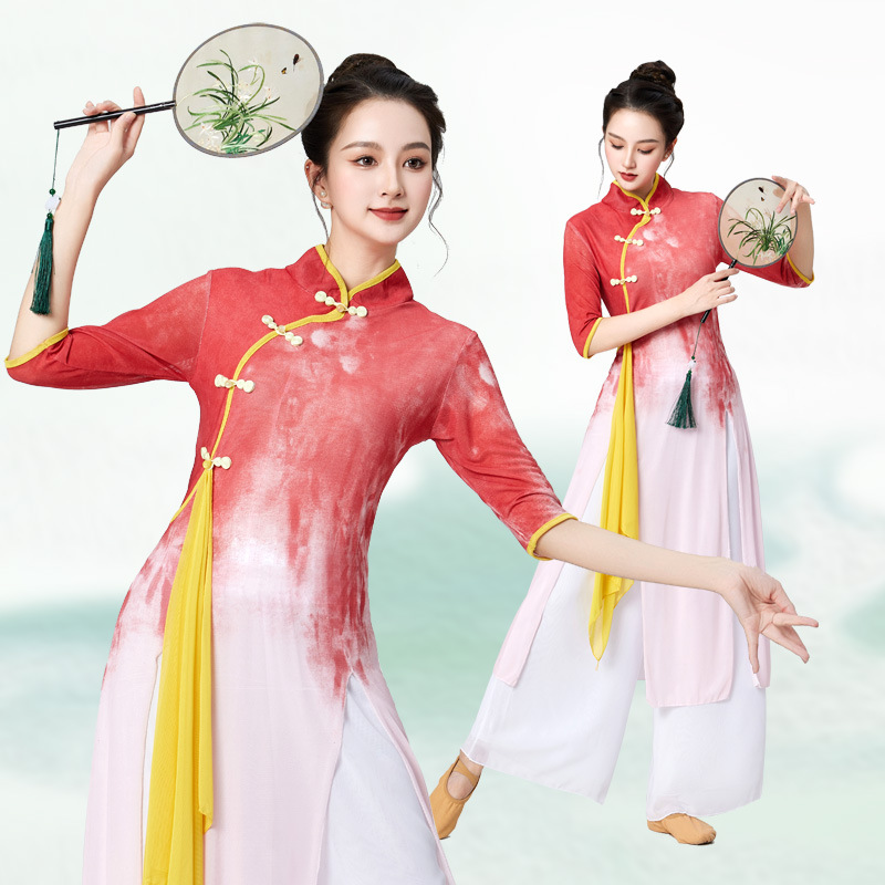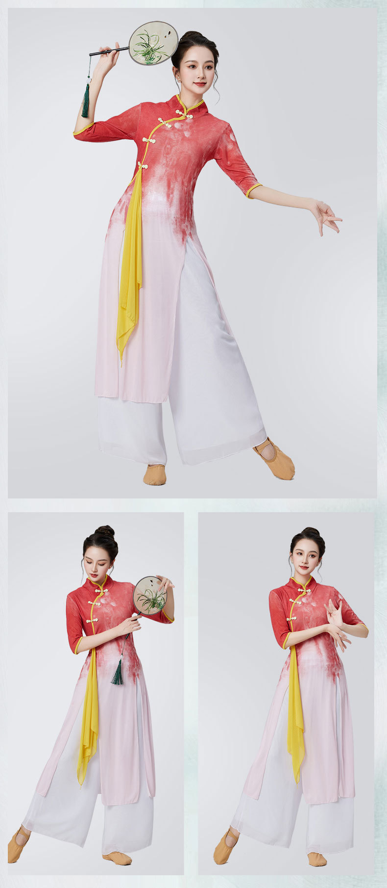 Клубы костюм новый набор китайского классического национального танца вентилятор градиент женский марля элегантный чонсам 2411
