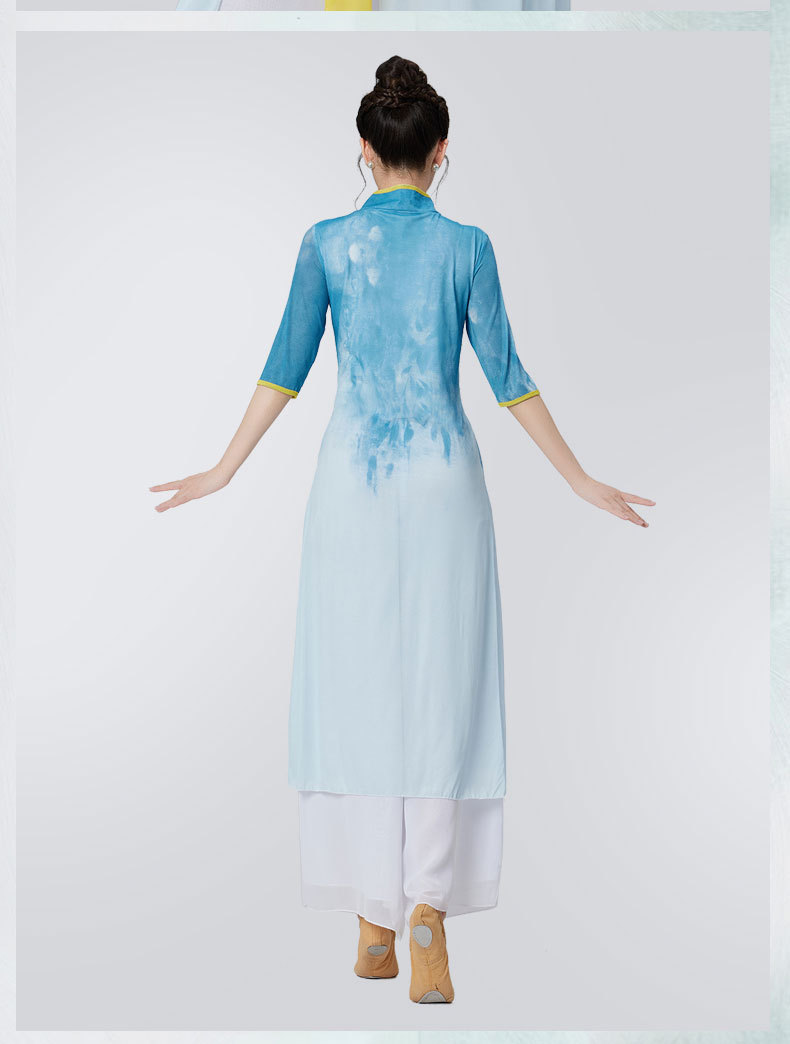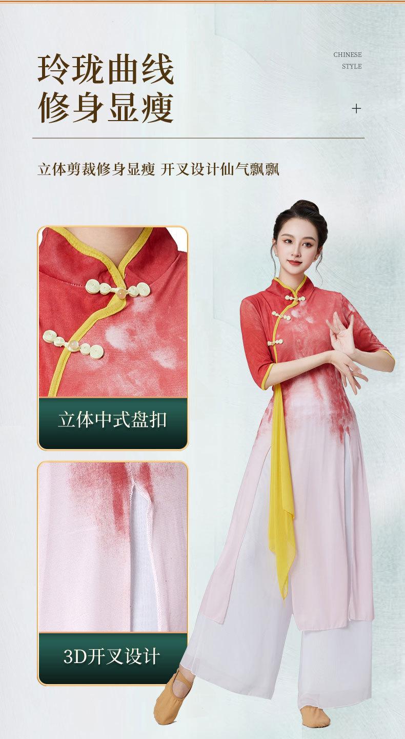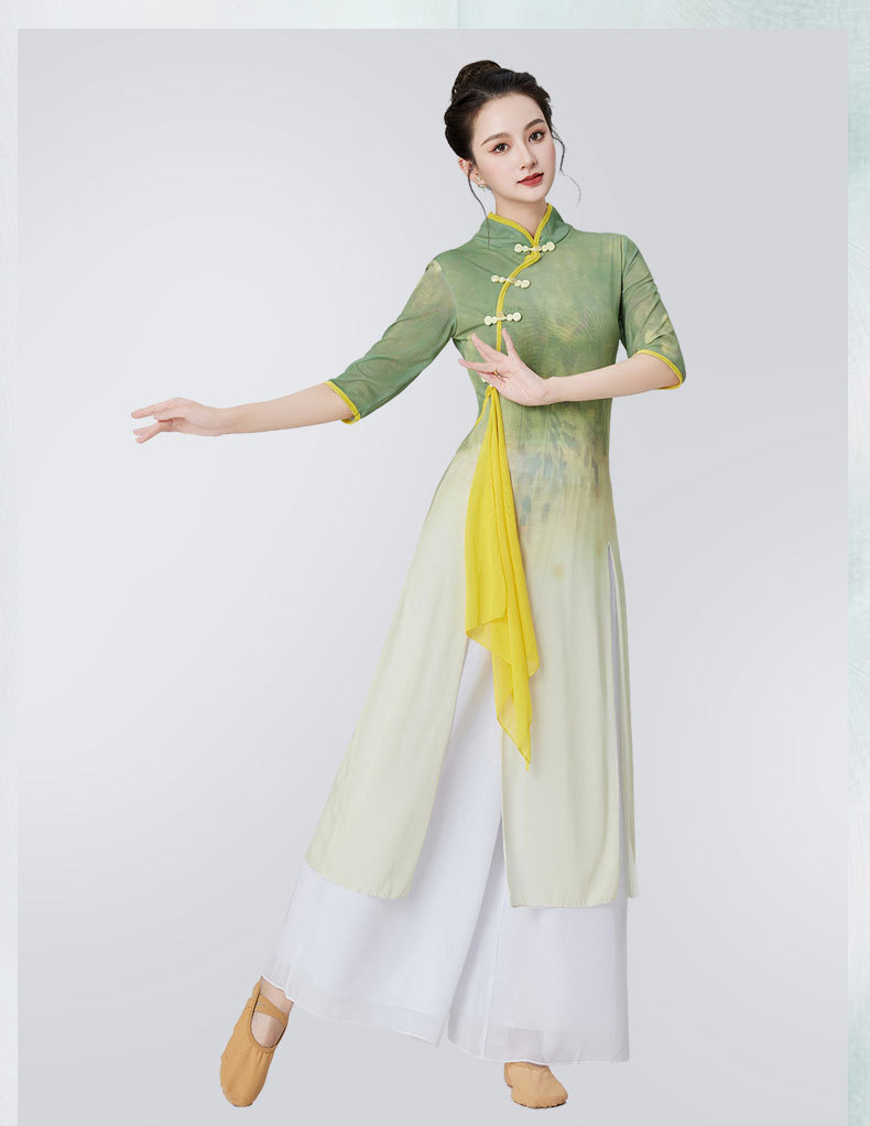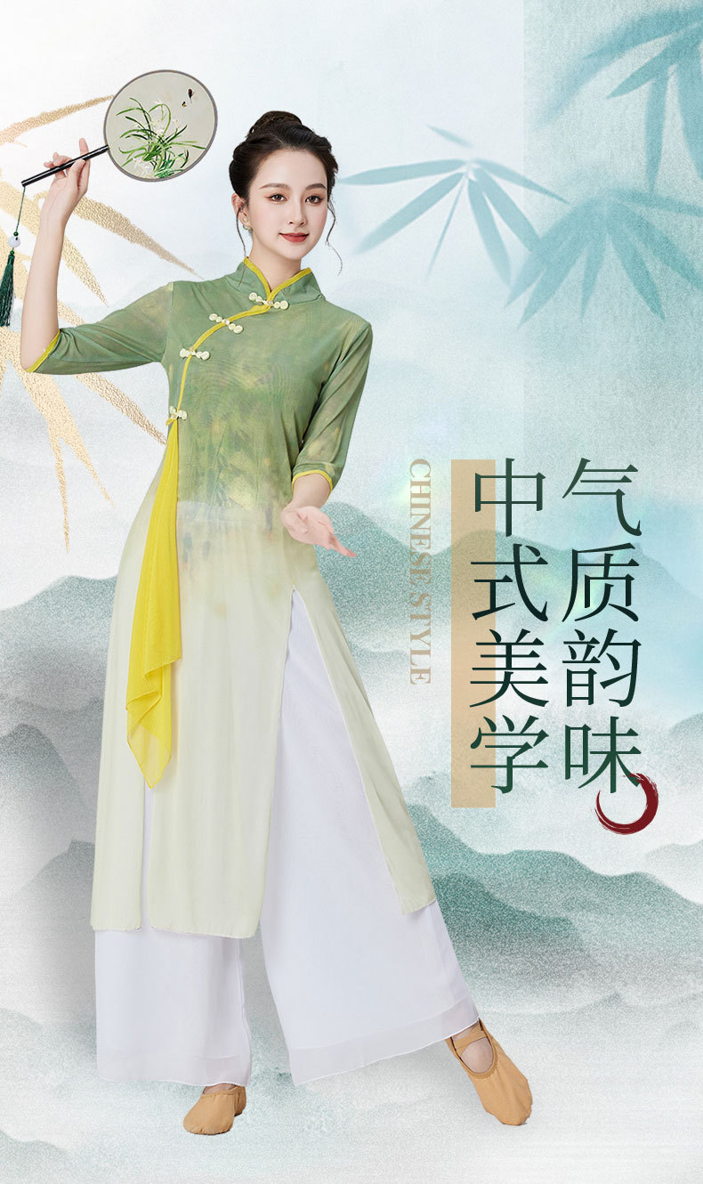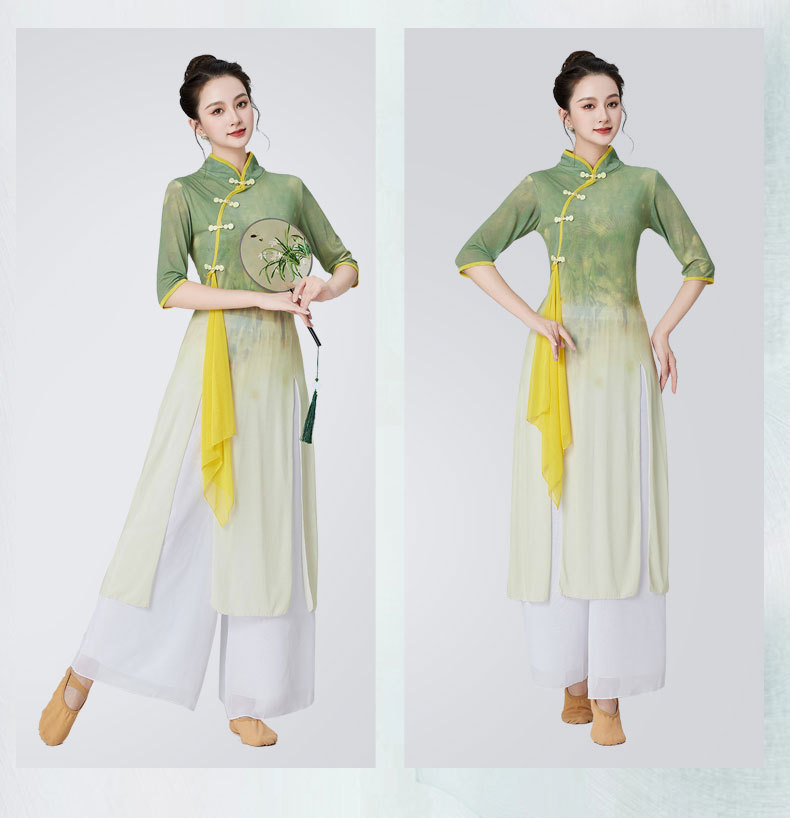 Клубы костюм новый набор китайского классического национального танца вентилятор градиент женский марля элегантный чонсам 2411