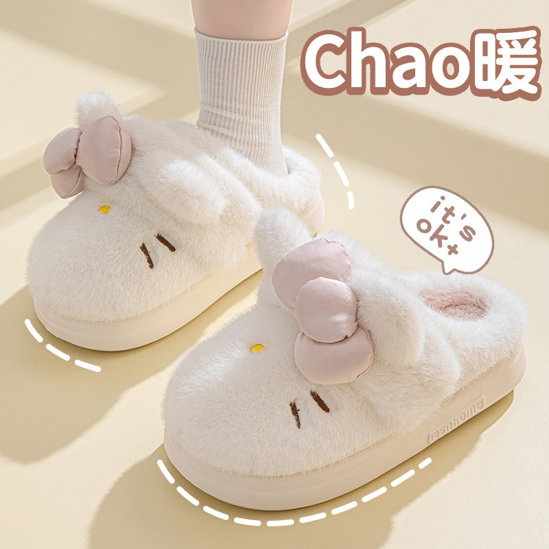 Женские хлопковые тапочки с кошачьим принтом, новая модель осень-зима 2025, подходят для использования на улице и в помещении, плюшевые тапочки для женщин на зиму.
