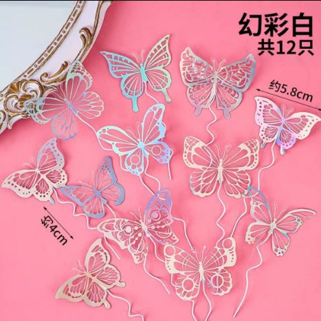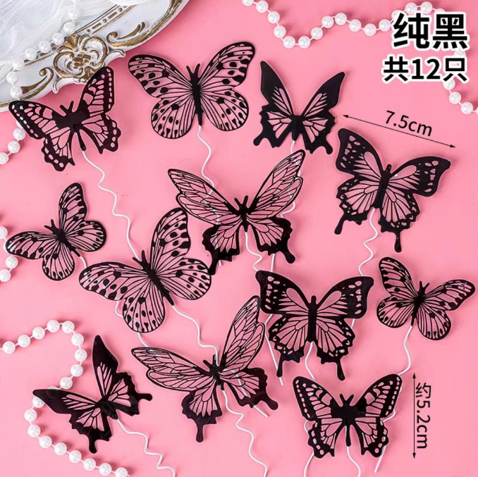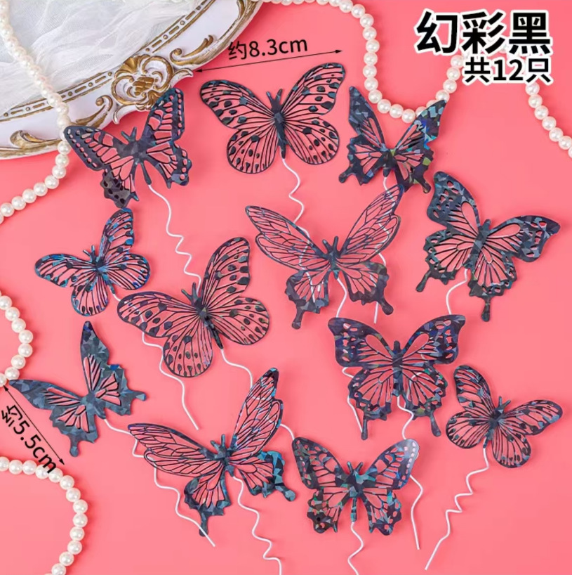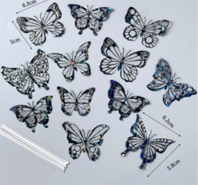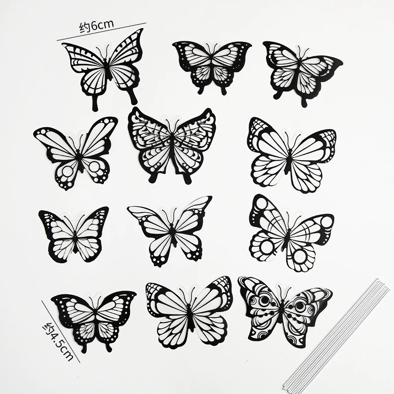 Бабочка из ПВХ в стиле АА красочная 12 шт.; Бабочка из ПВХ в стиле АА, чистый белый, 12 шт.; Бабочка ПВХ стиль AB фэнтези белый 12 шт.; Бабочка из ПВХ в стиле AB, чистый белый, 12 шт.; Бабочка ПВХ стиль AB фэнтези черный 12шт; Бабочка из ПВХ в стиле AB, чистый черный, 12 шт.; Бабочка из ПВХ в стиле АА, чистый черный, 12 шт.; Бабочка ПВХ стиль АА фэнтези черный 12шт; 6 разноцветных бабочек; 9 черных бабочек; 9 белых бабочек; 12 серебряных бумажных бабочек; 9 новых разноцветных бабочек