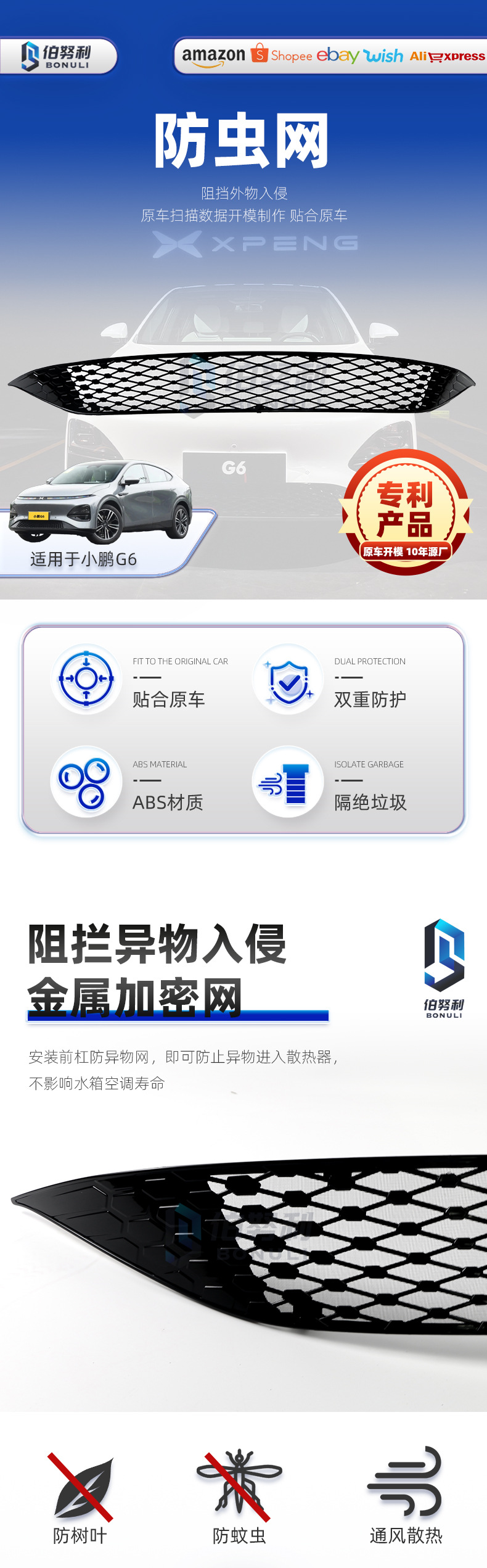 Bernuli подходит для Xiaopeng G6 защиты от насекомых