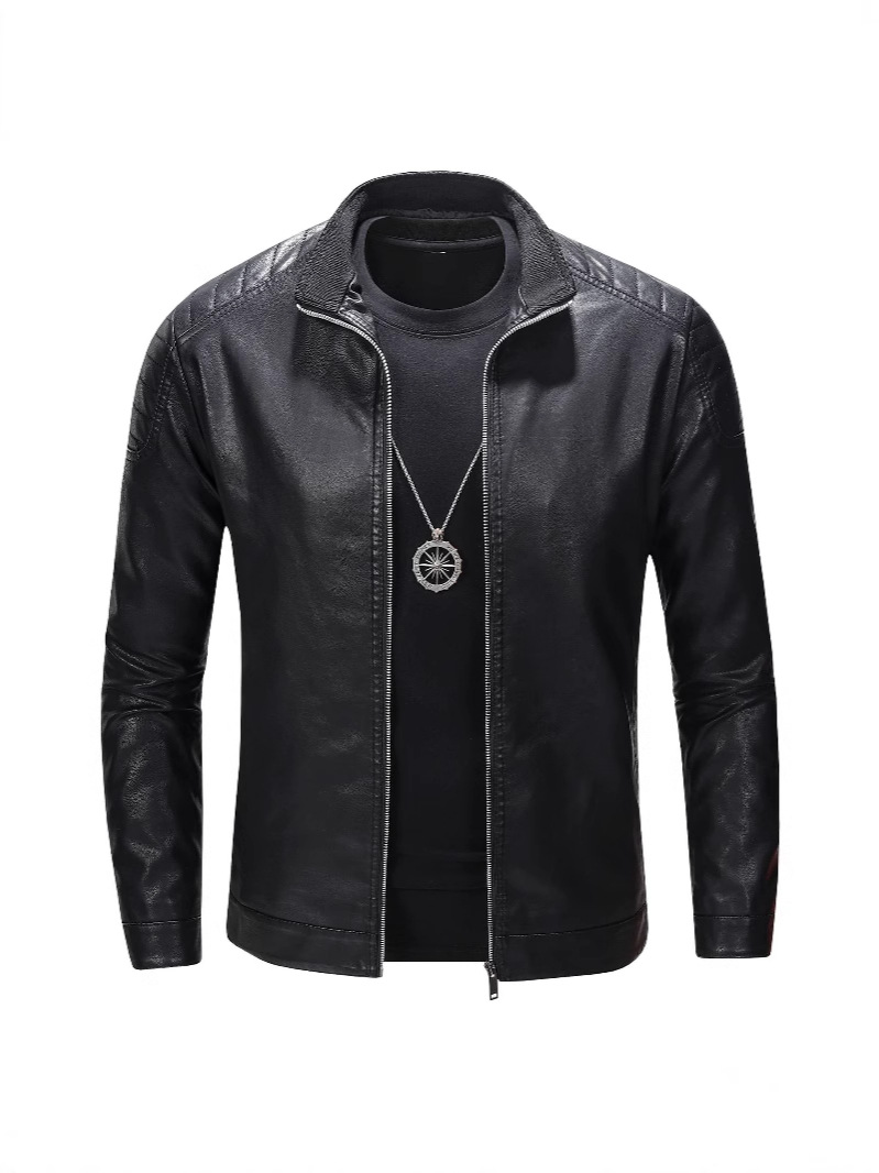 Кожаный воротник мужской мотоциклетный куртка куртка 2024 осень и зима новая кожаная куртка стройная корейская версия красивого мужчины