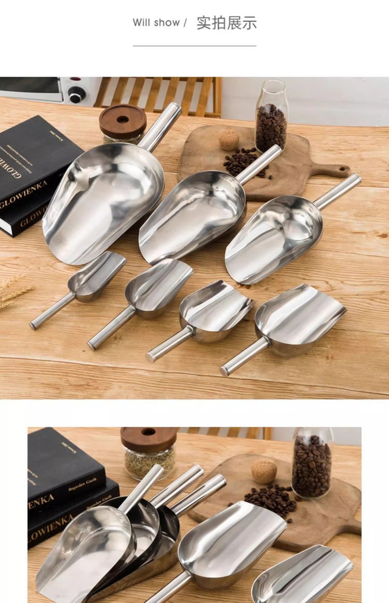 Лопата льда из нержавеющей стали утолщенный рисовая лопата цельная рисовая мука пищевая чай круглый лопата молочный чайный магазин генератор льда универсальный