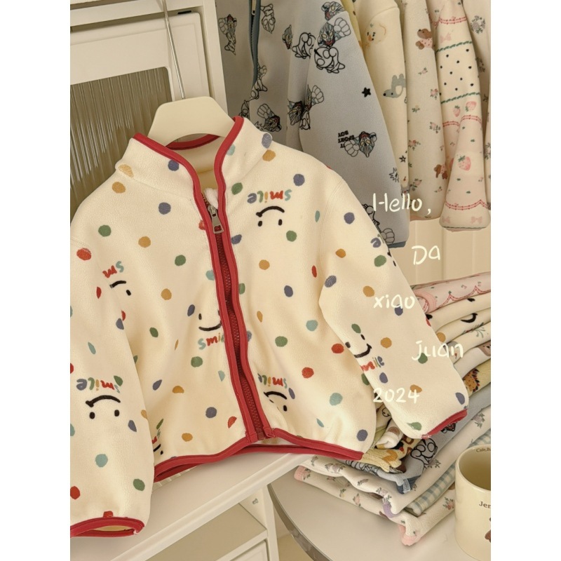 Куртки унисекс на молнии с воротником-стойкой в корейском стиле, с полным принтом мультяшного персонажа Олли, из вельвета, для мальчиков и девочек, осенне-зимняя коллекция, большие и маленькие размеры, модная теплая одежда