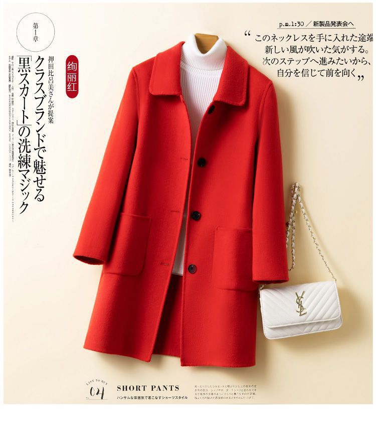 Вне сезона женская верхняя одежда из чистой шерсти средней длины, новинка зимы 2024 года, высококачественная корейская двусторонняя кашемировая шерстяная верхняя одежда