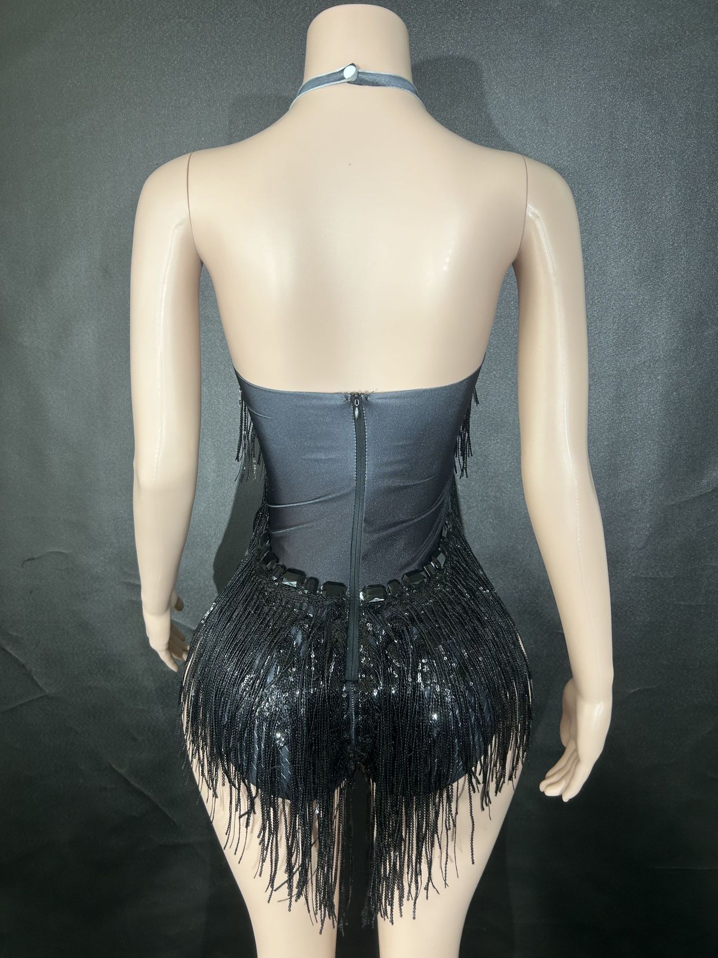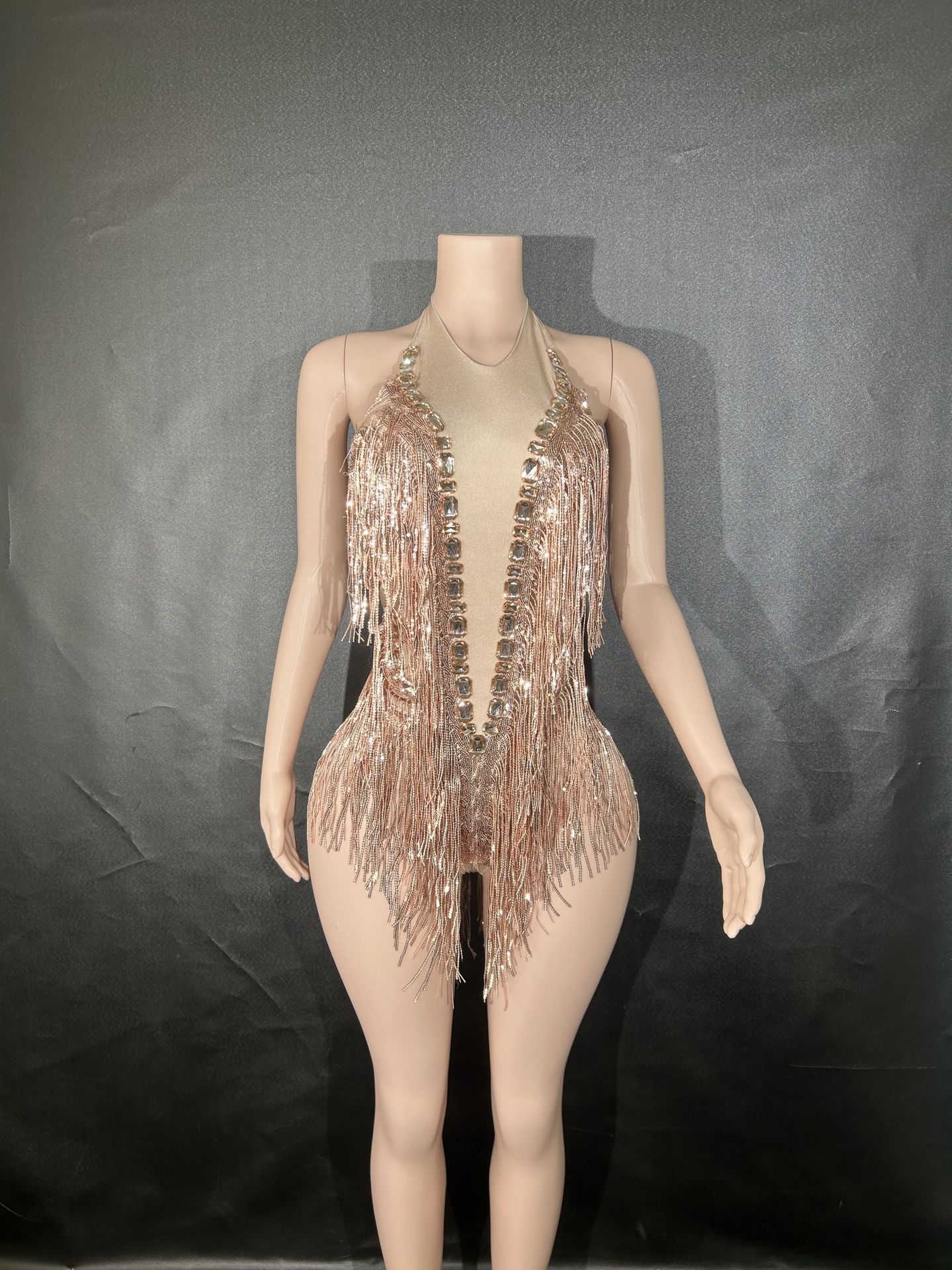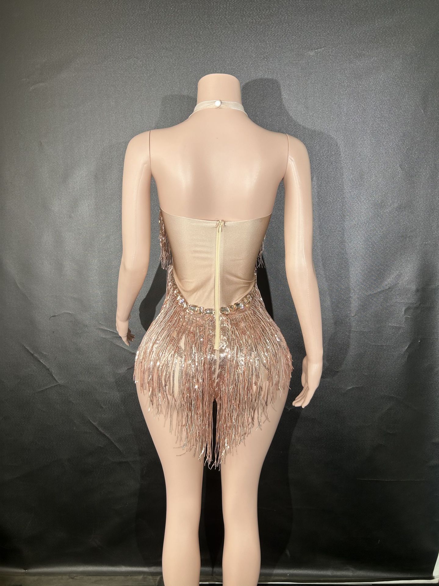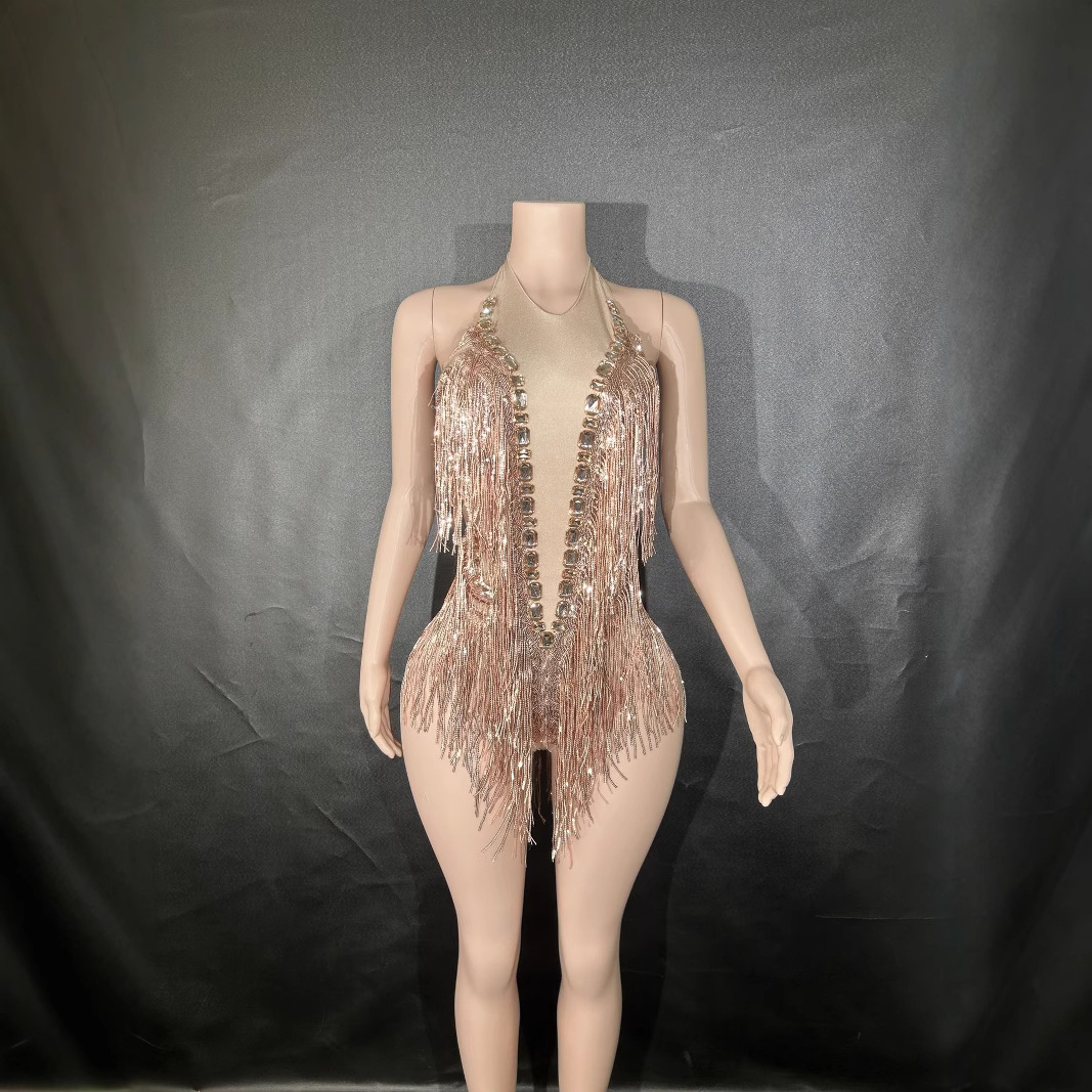 Европейский и американский танцевальный сексуальный блестящий комбинезон со стразами и эластичными блестками, комбинезон с кисточками, одежда для выступлений на сцене, коммерческое представление, модная танцевальная вечеринка