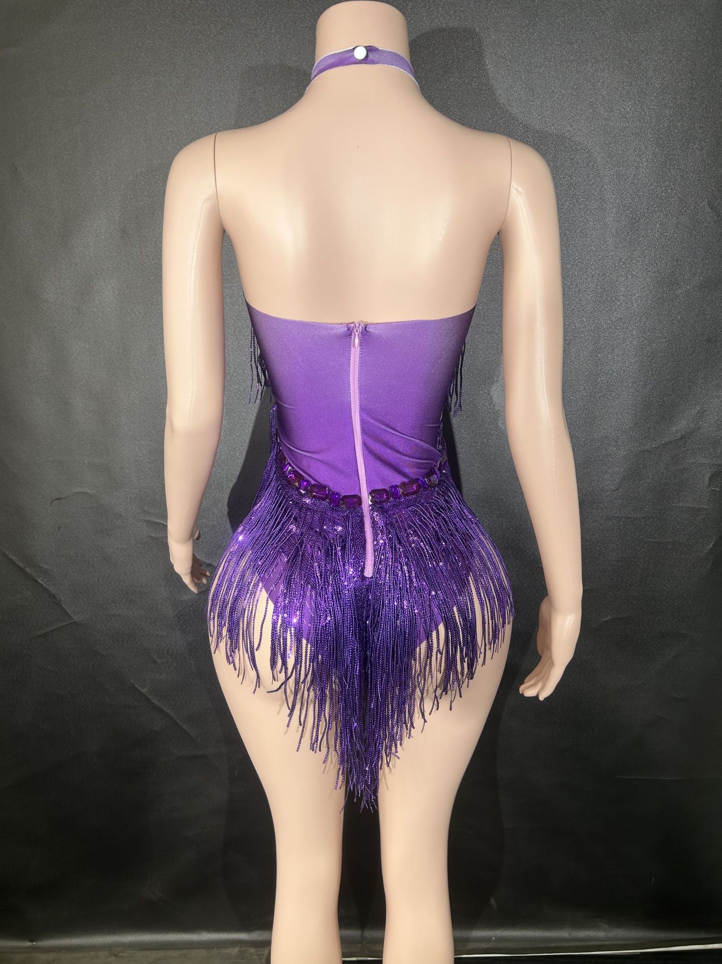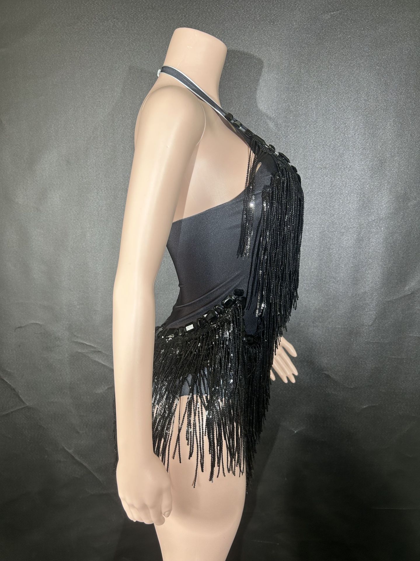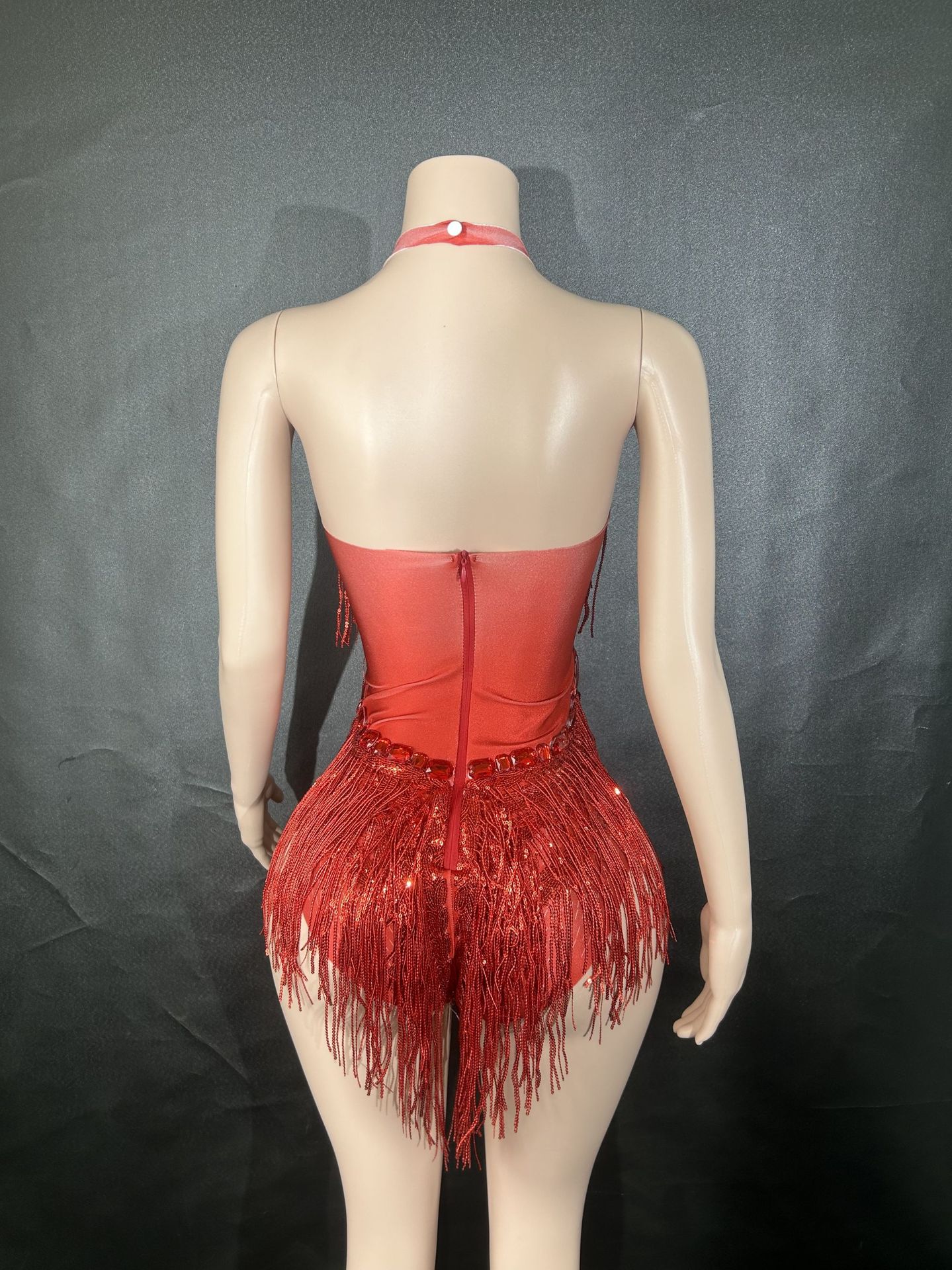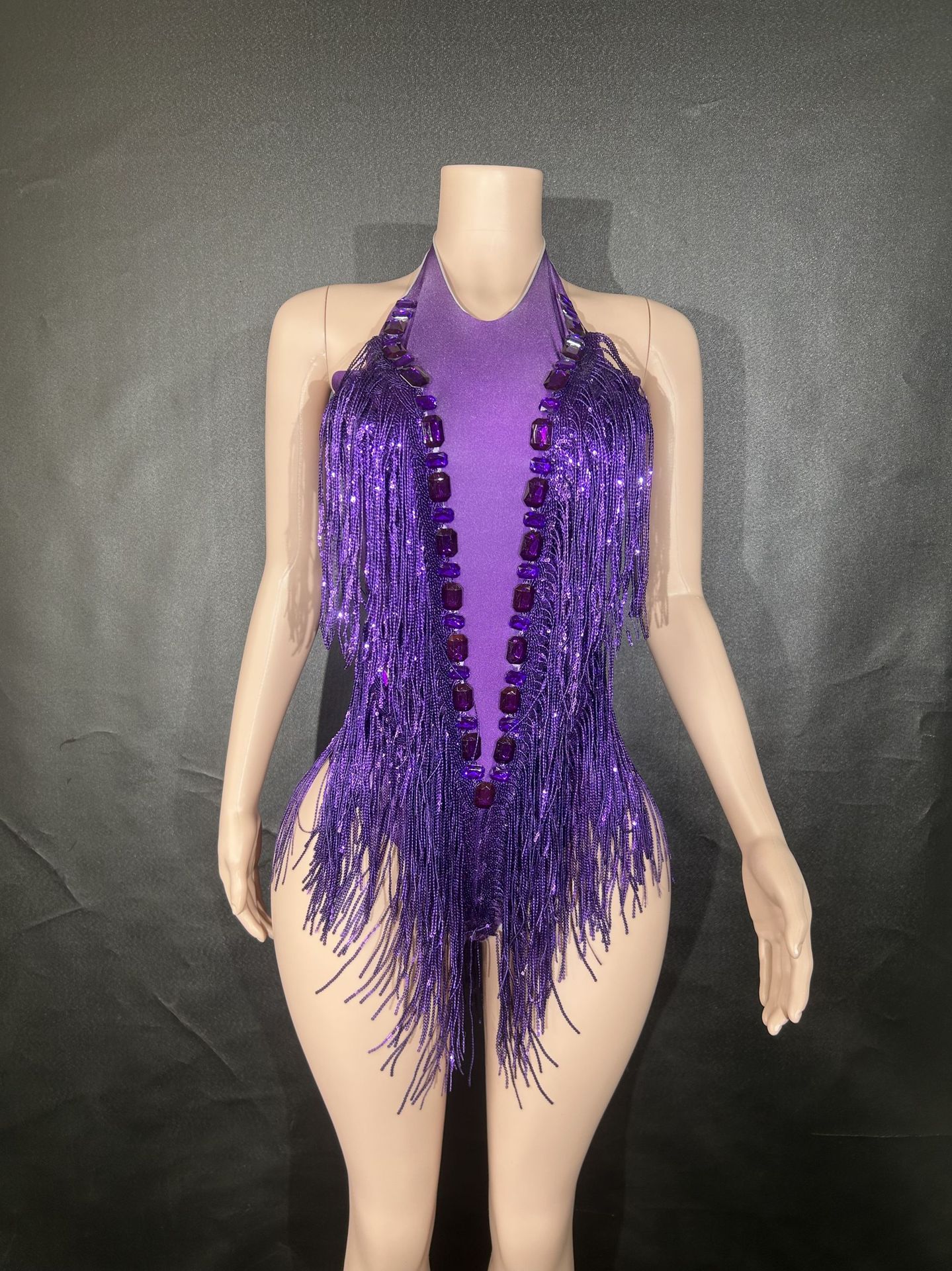 Европейский и американский танцевальный сексуальный блестящий комбинезон со стразами и эластичными блестками, комбинезон с кисточками, одежда для выступлений на сцене, коммерческое представление, модная танцевальная вечеринка