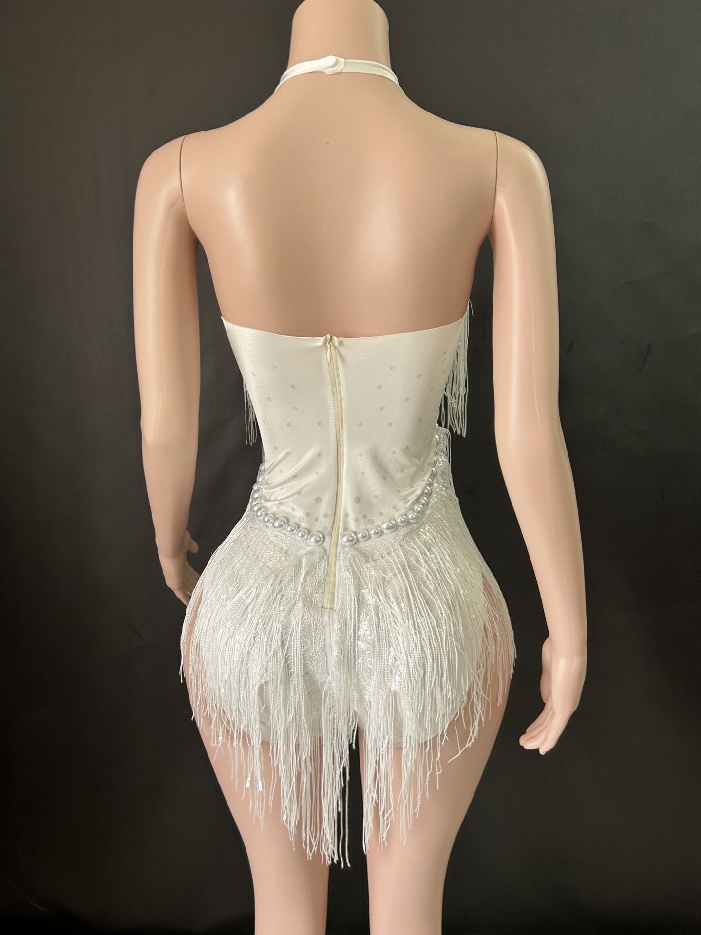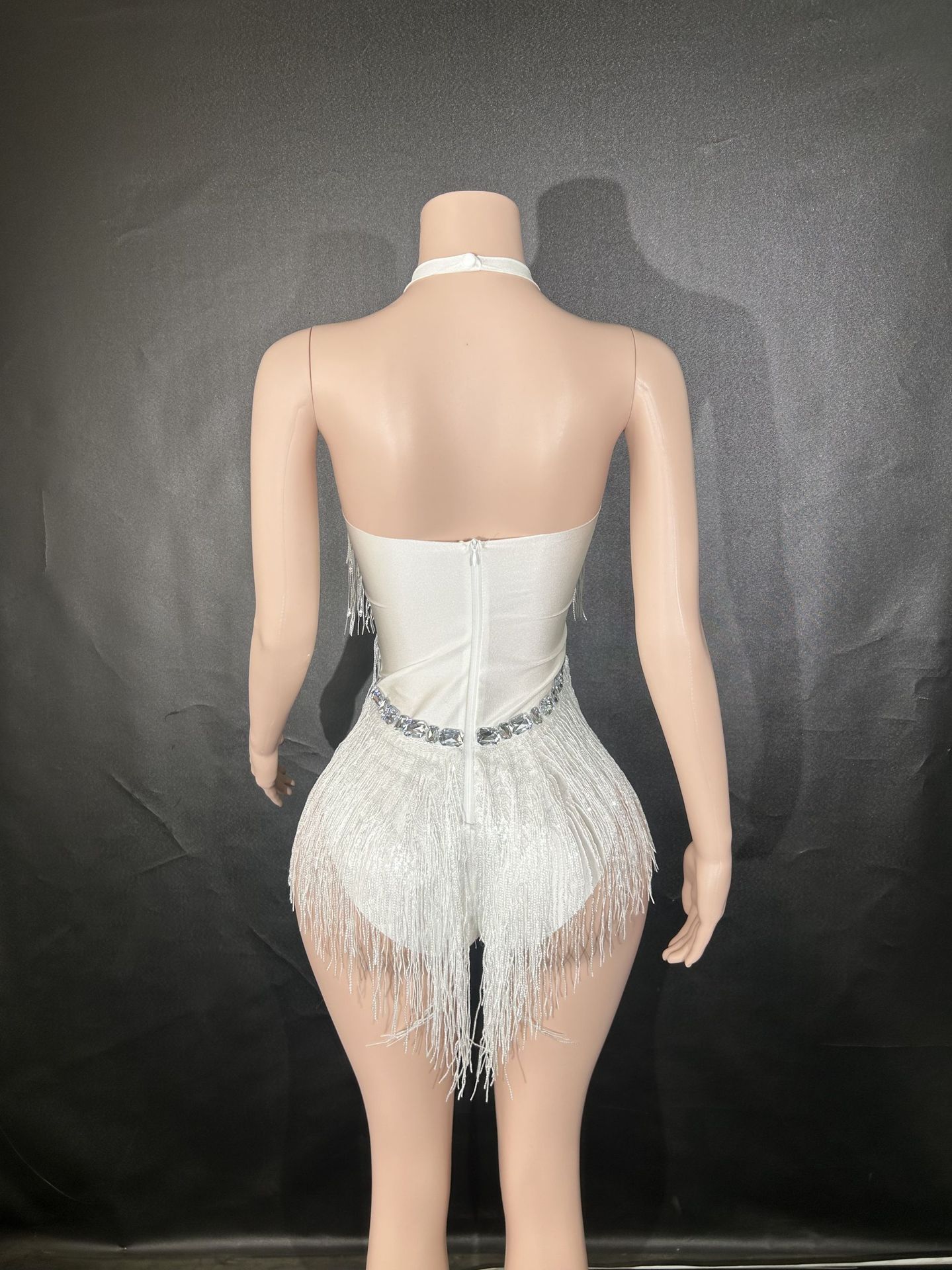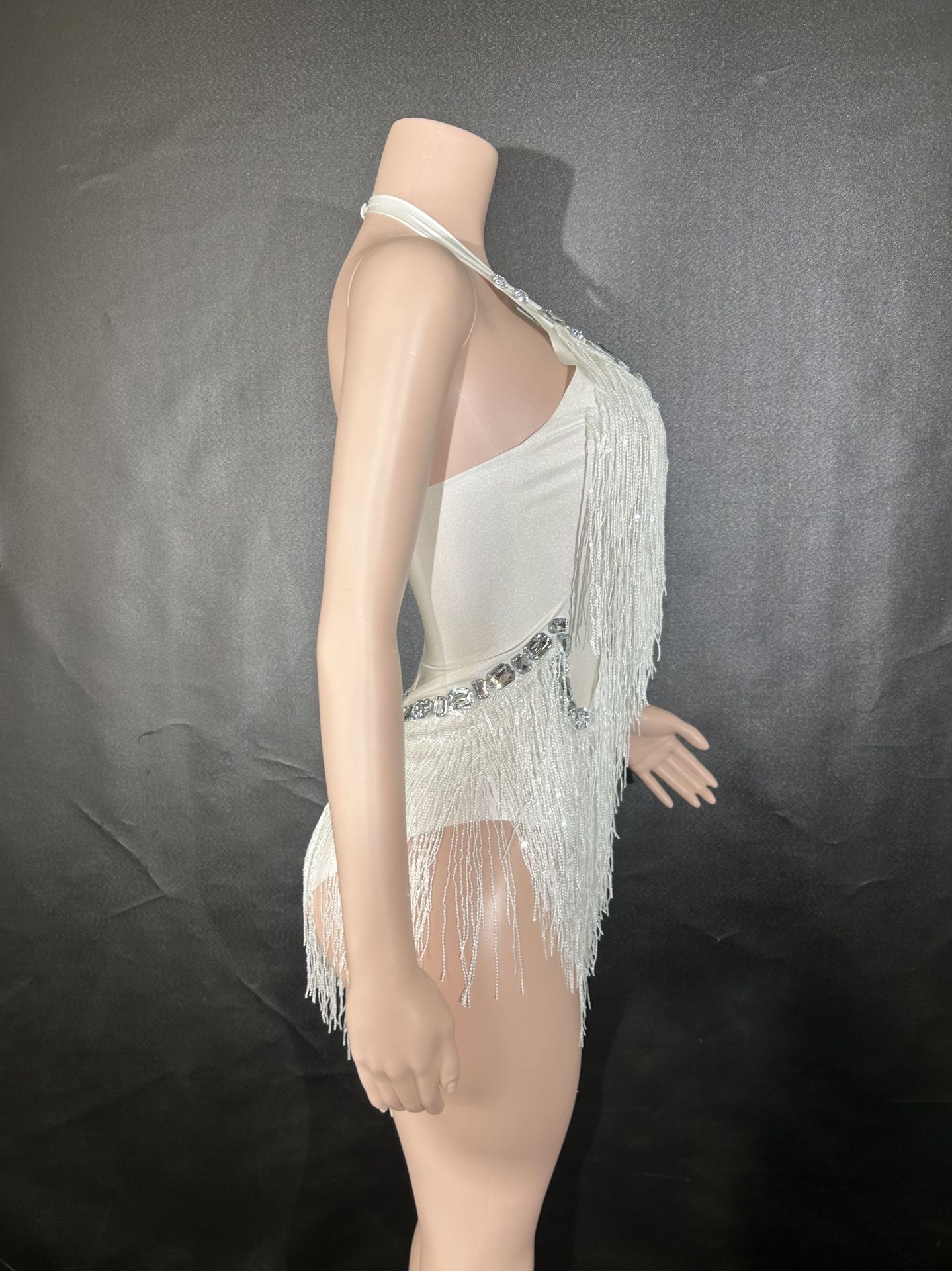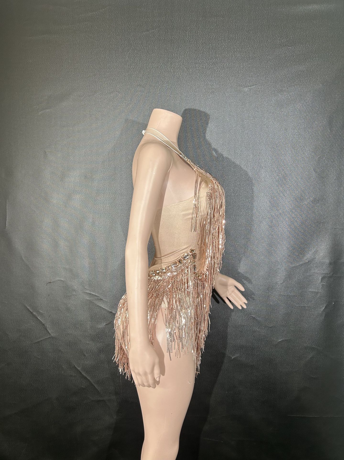 Европейский и американский танцевальный сексуальный блестящий комбинезон со стразами и эластичными блестками, комбинезон с кисточками, одежда для выступлений на сцене, коммерческое представление, модная танцевальная вечеринка