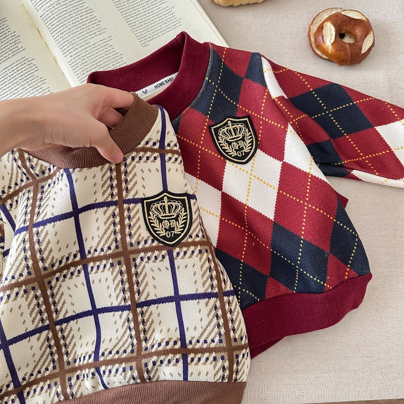 Свитер с значком WXF-красная клетка; Свитер с значком WXF-хаки синий квадратный; Свитер с значком WXF-глубокий карри; СВИТЕР WXF Coulmi-Фиолетовый квадрат; Свитер WXF Мелотти-розовый синий рябь