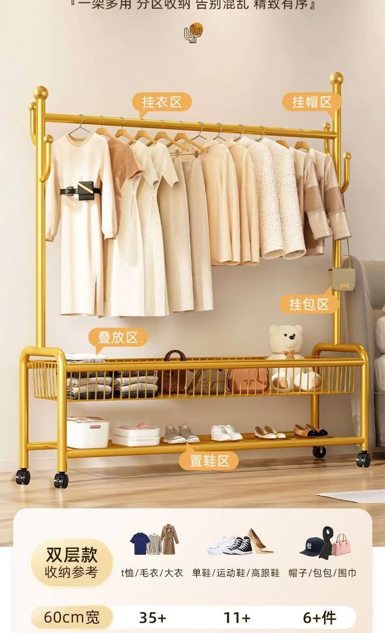Простая вешалка для одежды, спальня, напольная вешалка для одежды, подвижная, доступная, роскошь, для дома, корзина для хранения, вешалка для одежды, напольная, в помещении, для дома, утолщенная сушилка для подвешивания одежды; Современный и минималистичный