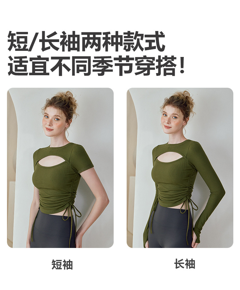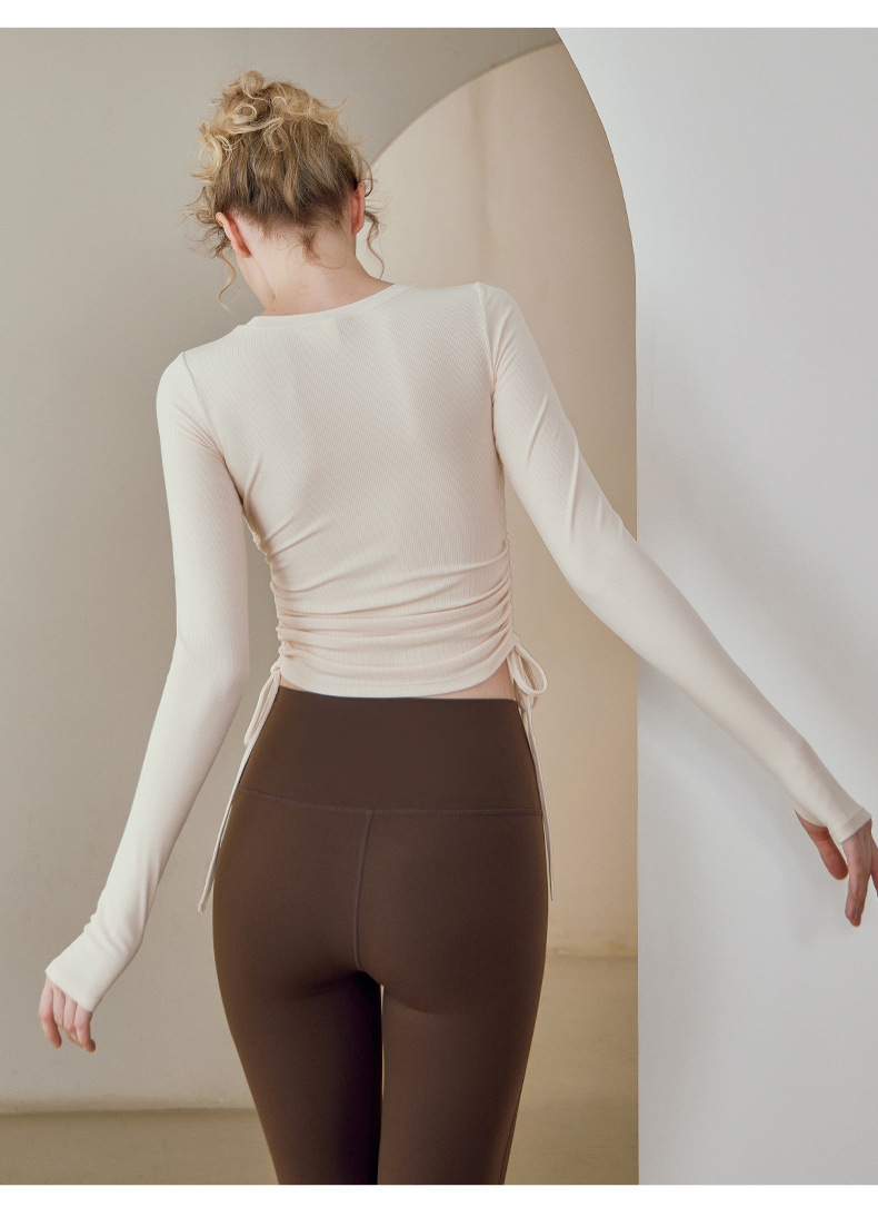 Одежда для йоги для женщин, новая осенне-зимняя коллекция, облегающий крой с подкладками для груди, трикотажная одежда для фитнеса, спортивные уличные топы с длинными рукавами и вырезами.