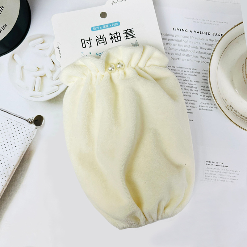 Накладки на рукава для женщин, осень-зима 2025, новый стиль, однотонные накладки на рукава с двойным жемчугом, белые накладки на рукава для студенческих пуховиков, грязеотталкивающие и водоотталкивающие манжеты.