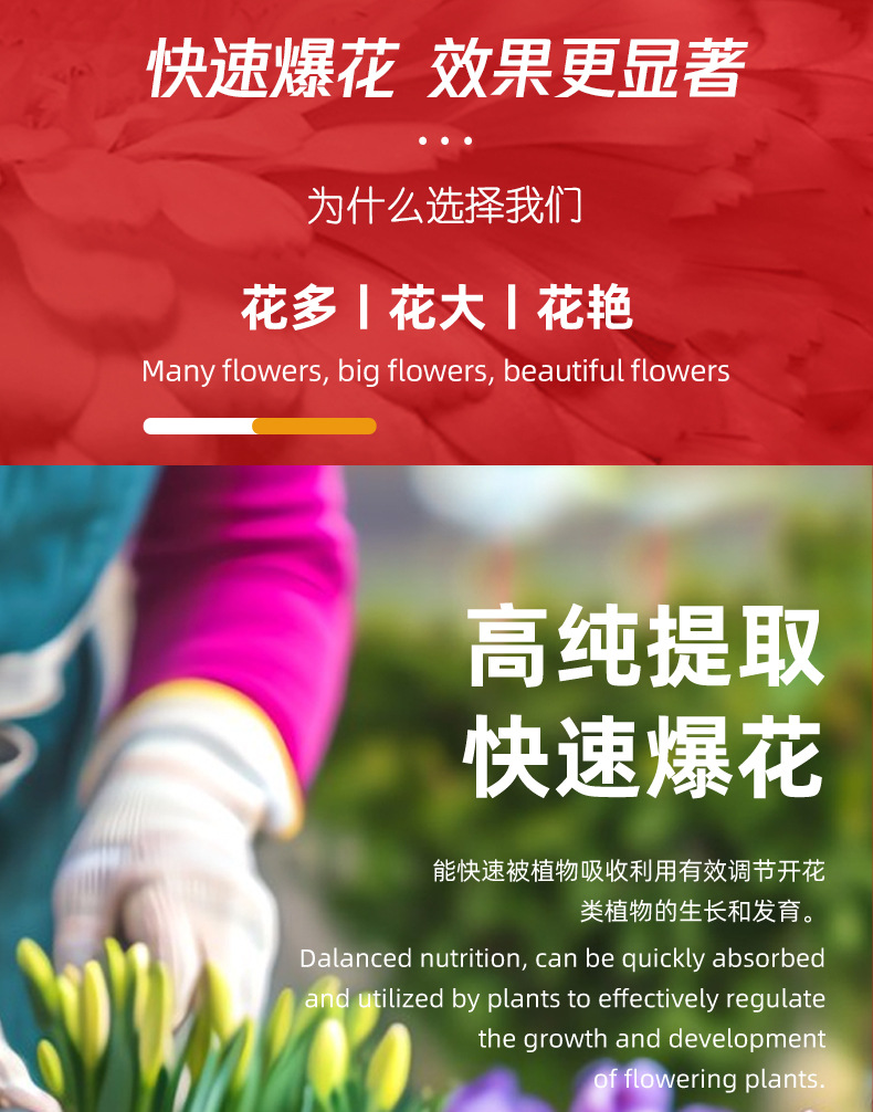 Высококонцентрированное взрывчатое цветочное удобрение из Лос-Анджелеса для орхидей, роз, бугенвиллии и жасмина, специально для стимуляции цветения и цветения.