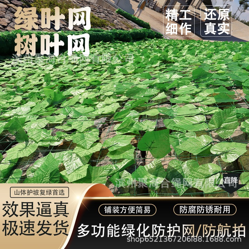 Защита от склона Зеленая сеть листьев Горный склон покрыт зеленой сетью