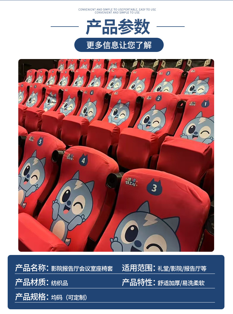 Чехлы для сидений кресел в кинотеатрах, школьных аудиториях, студиях, театрах, оптом