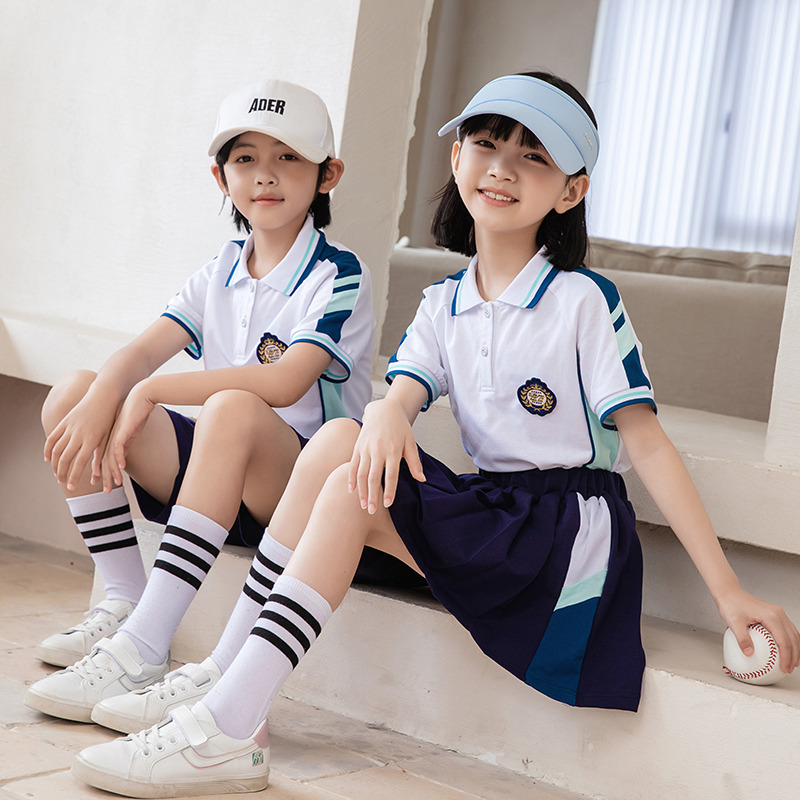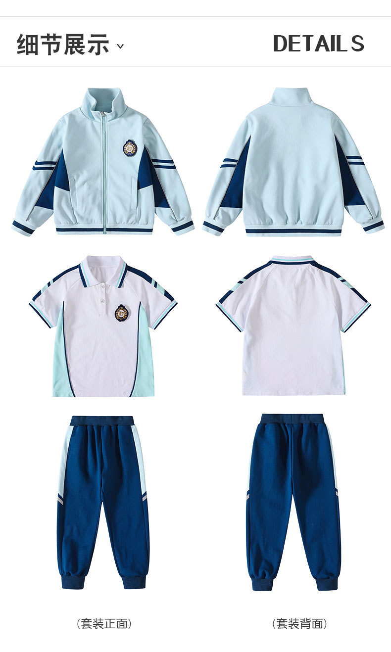 Летний комплект из двух предметов для мальчиков; Летний комплект из двух предметов для девочек; Набор из четырех предметов для мальчиков на południe моря, голубое небо, наружный язык, специальная фотография; Набор из четырех предметов для школьных девочек на południe моря, голубое небо, специальная фотография; одинарный короткий рукав; Весенне-осенний комплект из двух предметов