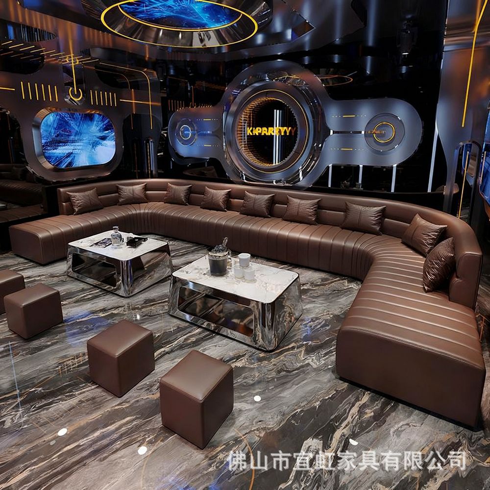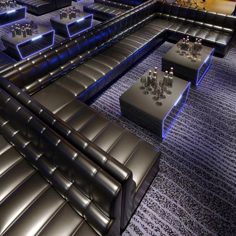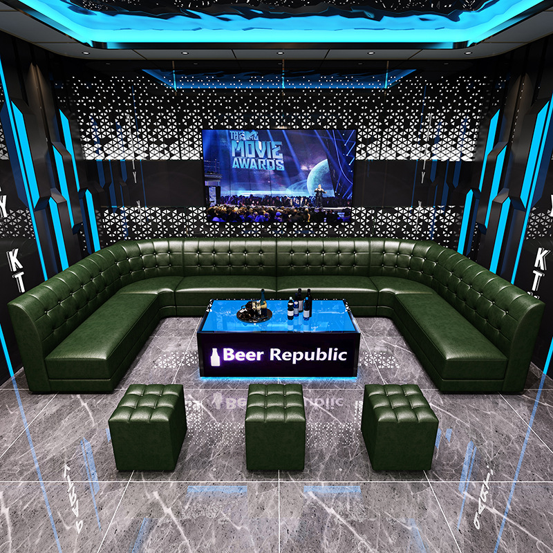 Комплект мягкой мебели для караоке-клуба: диван-кровать U-образной и L-образной формы, кресла для караоке, журнальный столик.