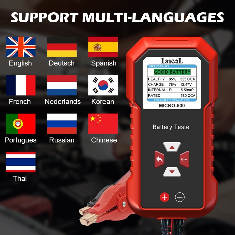 Lancol Micro 500 Car Battery Tester 12V Lithium Battery Test Lead Acid Battery Analyzer System Test 40-3000 CCA LED Display