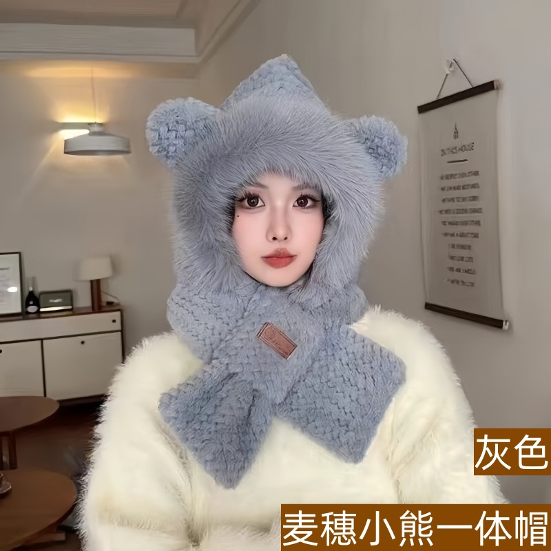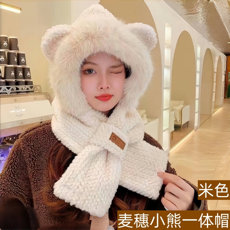 Комплект из шапки и шарфа для зимней езды на велосипеде, теплый, ветрозащитный, с защитой ушей, плюшевая шапка-перчатки 2-в-1