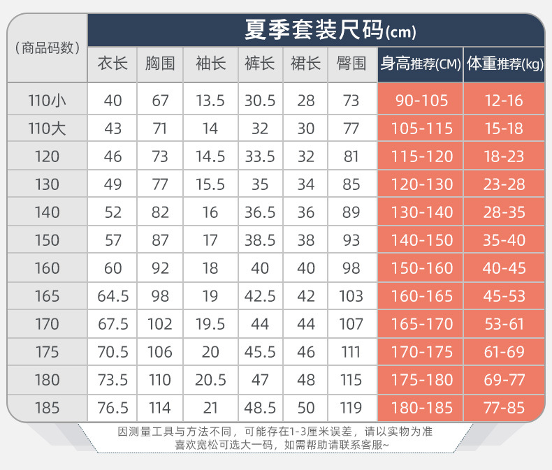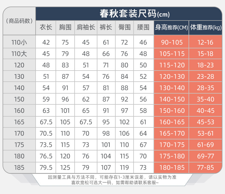 100cm; 110cm; 120cm; 130cm; 140cm; 150cm; 160cm; 165cm; 170cm; 175cm; 180cm; 185cm