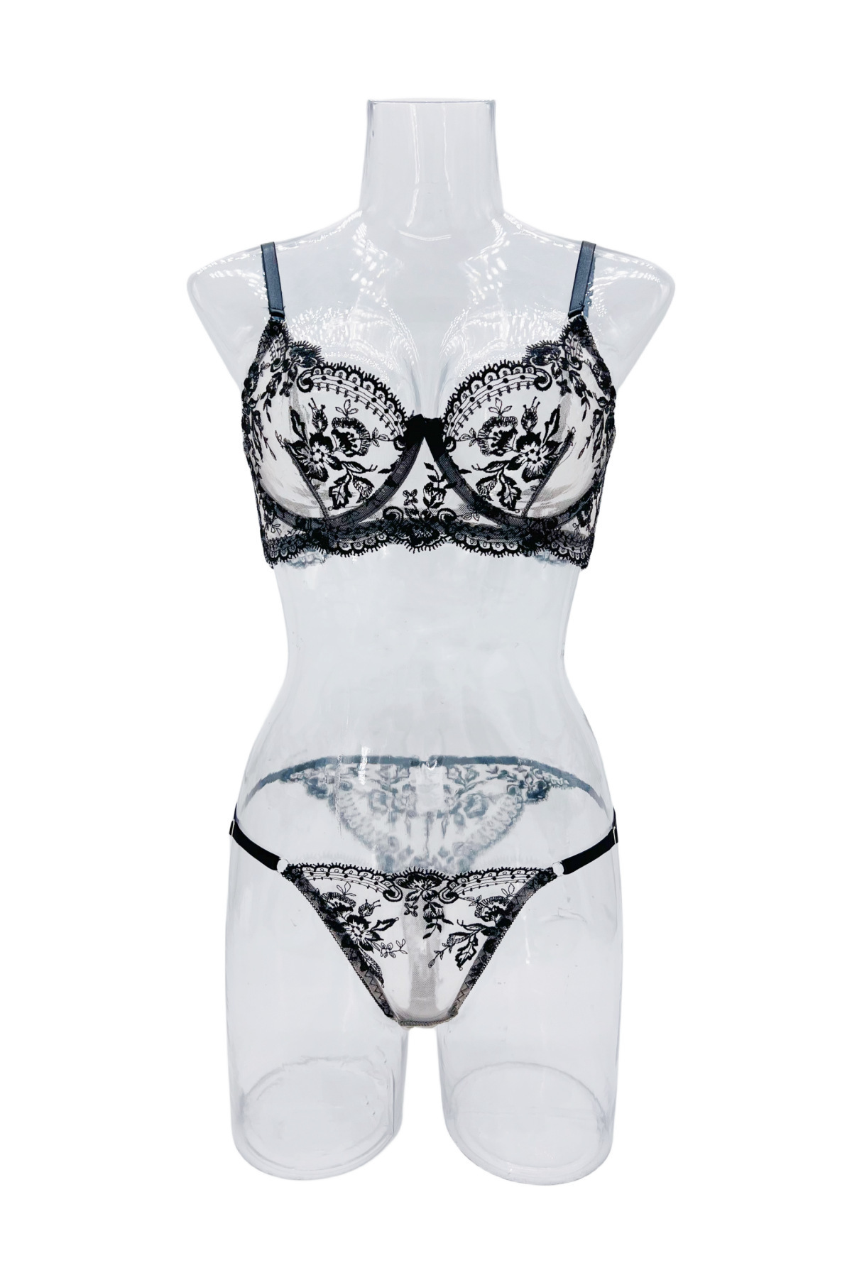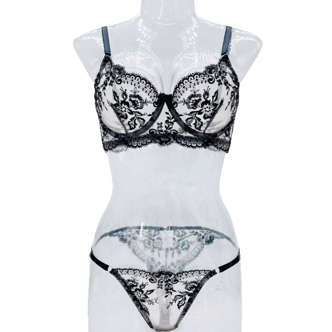 Комплект эротического белья 2024 года: хит продаж, вышивка цветами, прозрачная сетка, сексуальный, удобный, с подкладкой, простой и элегантный.
