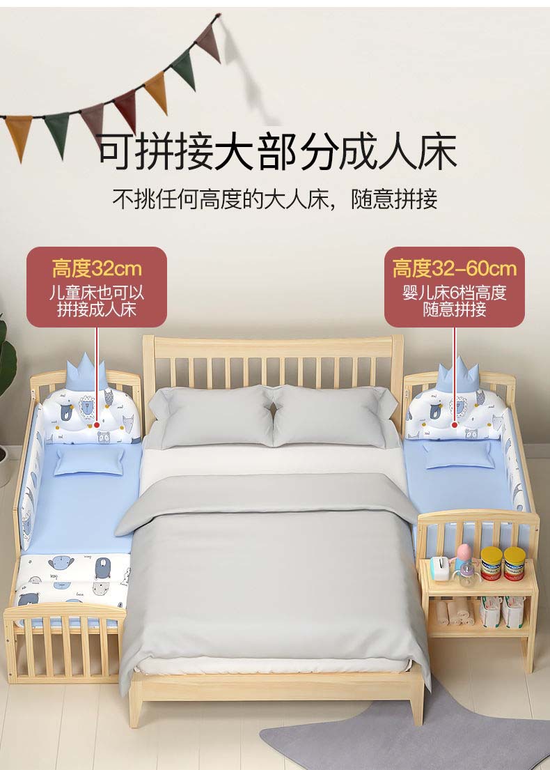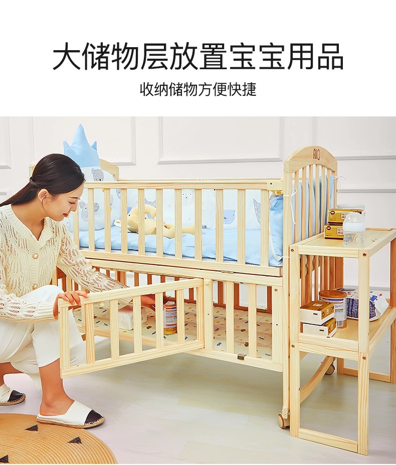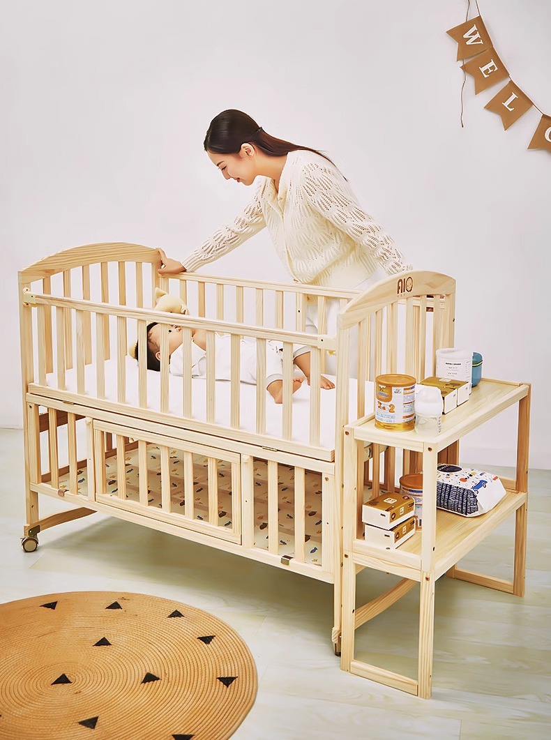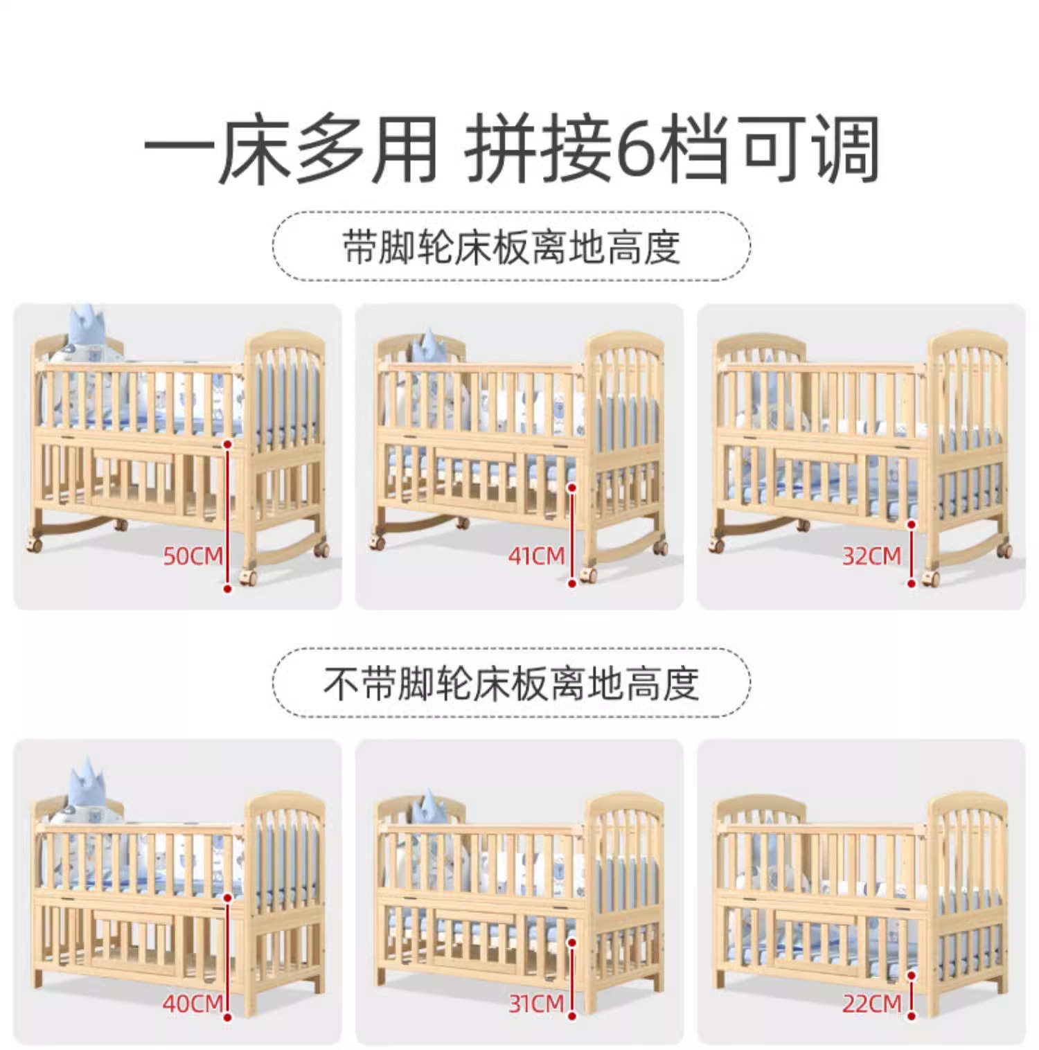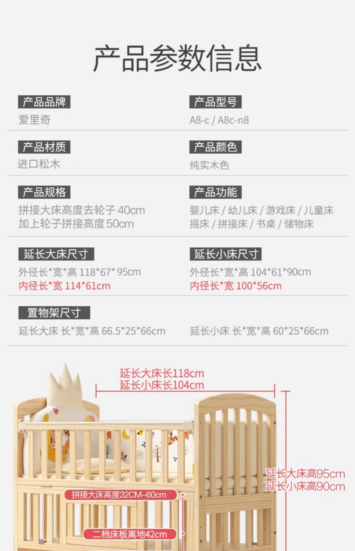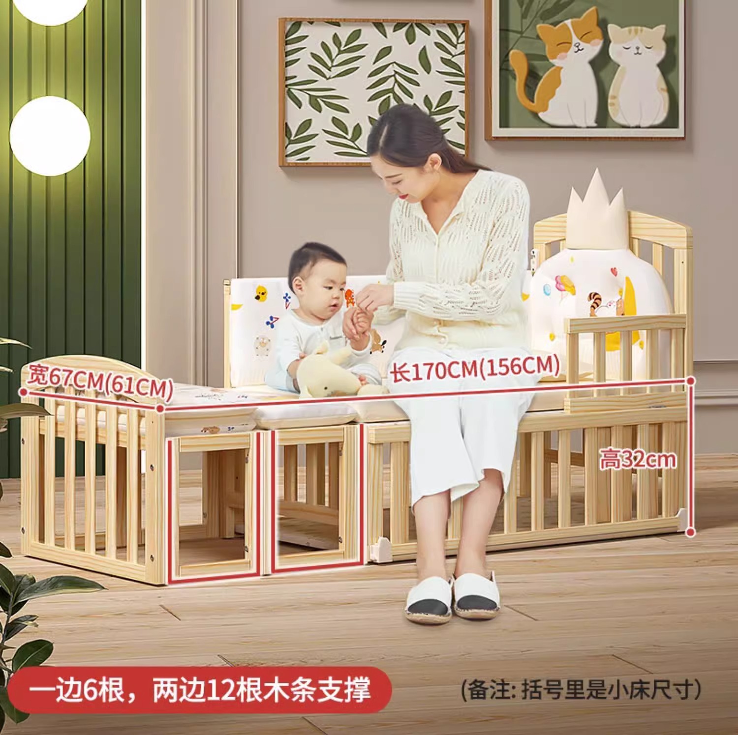 Детская кроватка Ailichi, многофункциональная, из массива дерева, без покраски, колыбель для новорожденных, детская кровать, передвижная, с возможностью соединения, большая кровать