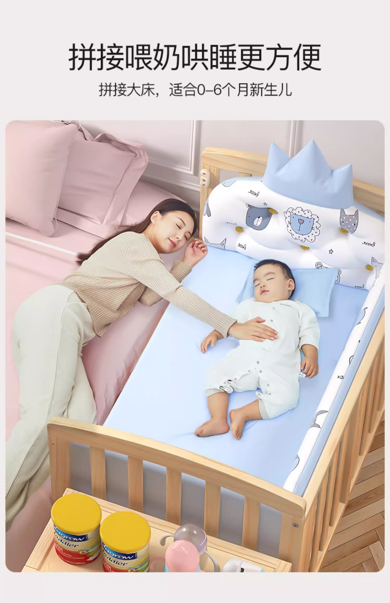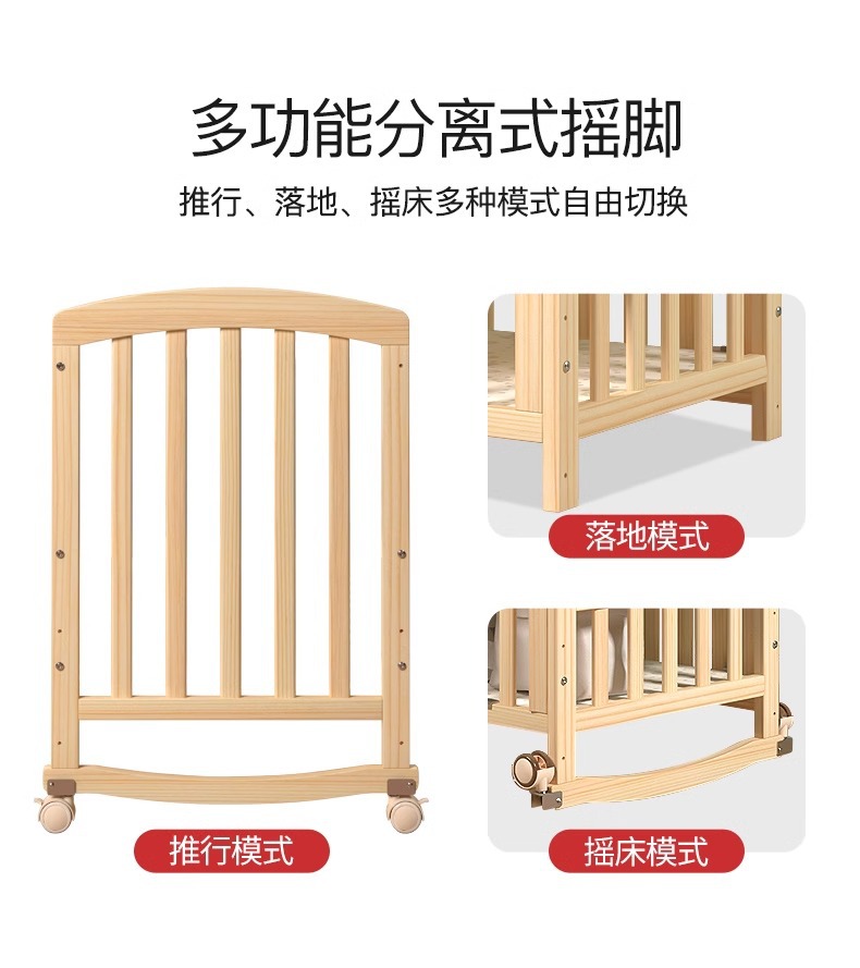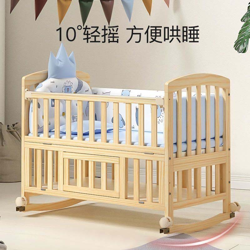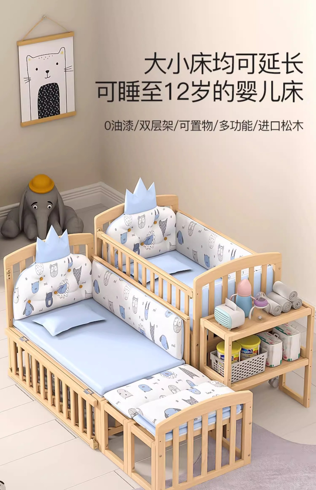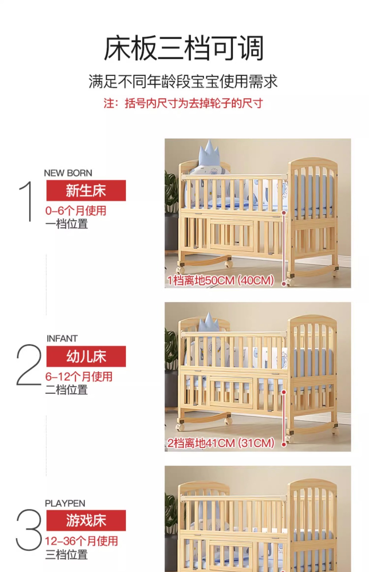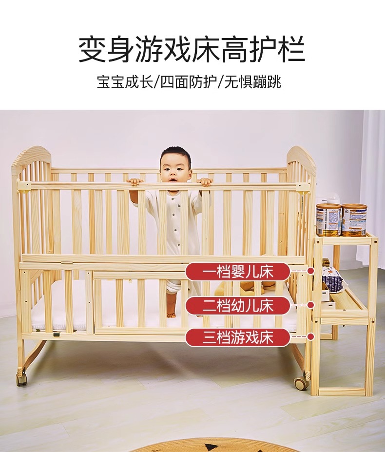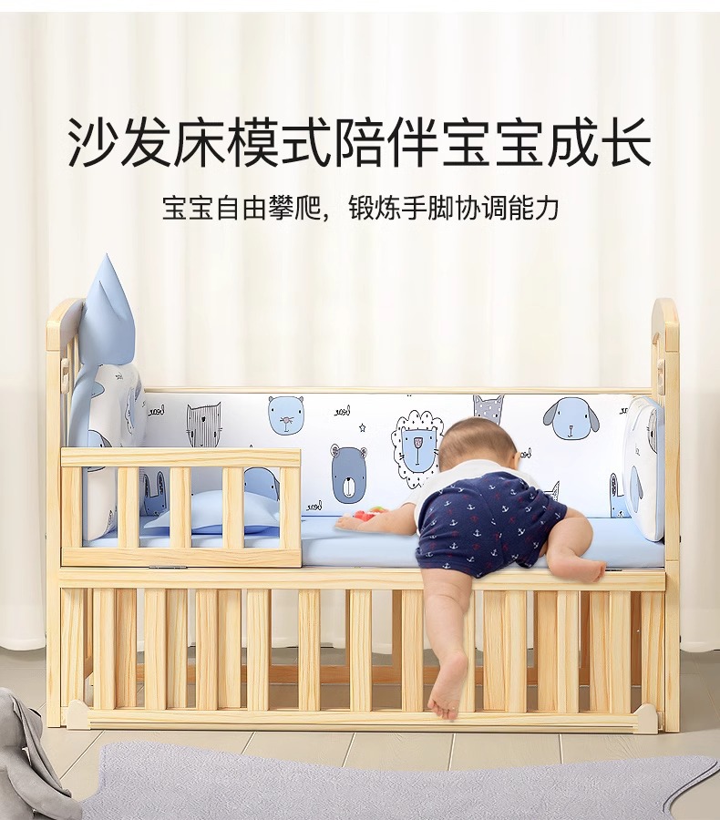 Детская кроватка Ailichi, многофункциональная, из массива дерева, без покраски, колыбель для новорожденных, детская кровать, передвижная, с возможностью соединения, большая кровать