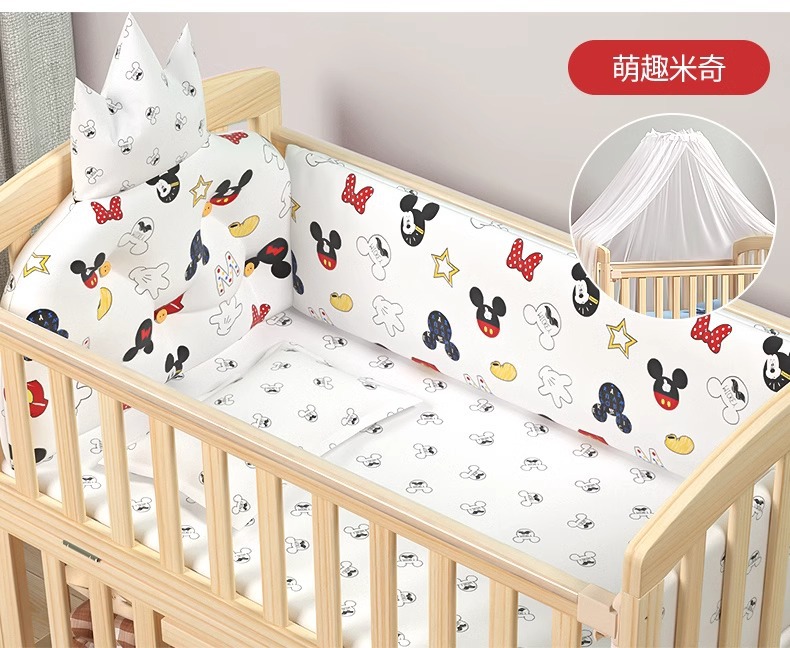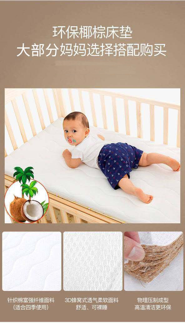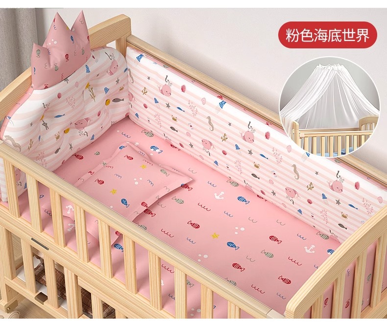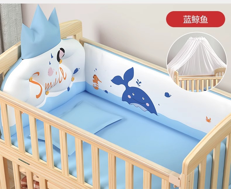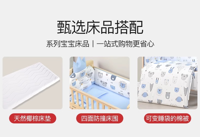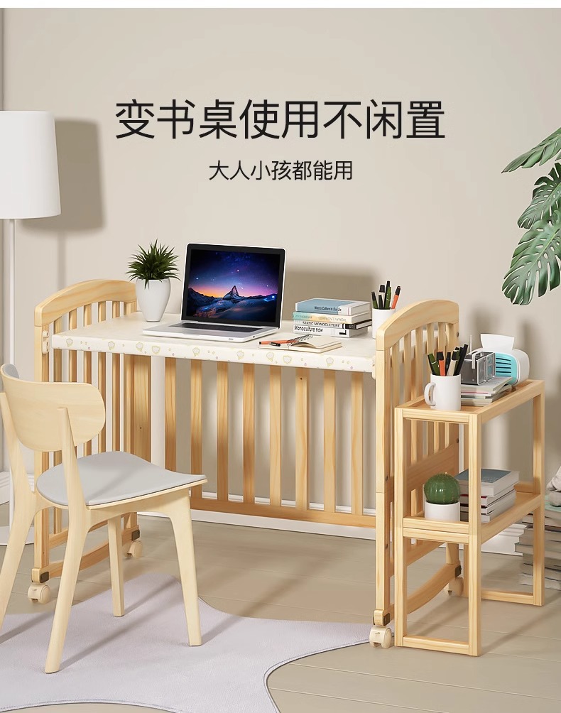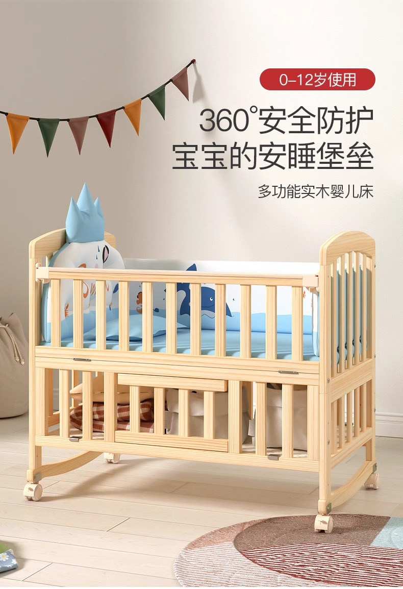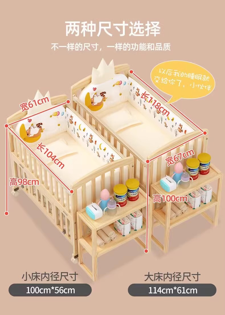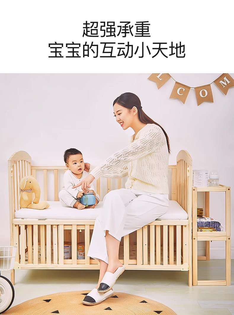 Детская кроватка Ailichi, многофункциональная, из массива дерева, без покраски, колыбель для новорожденных, детская кровать, передвижная, с возможностью соединения, большая кровать