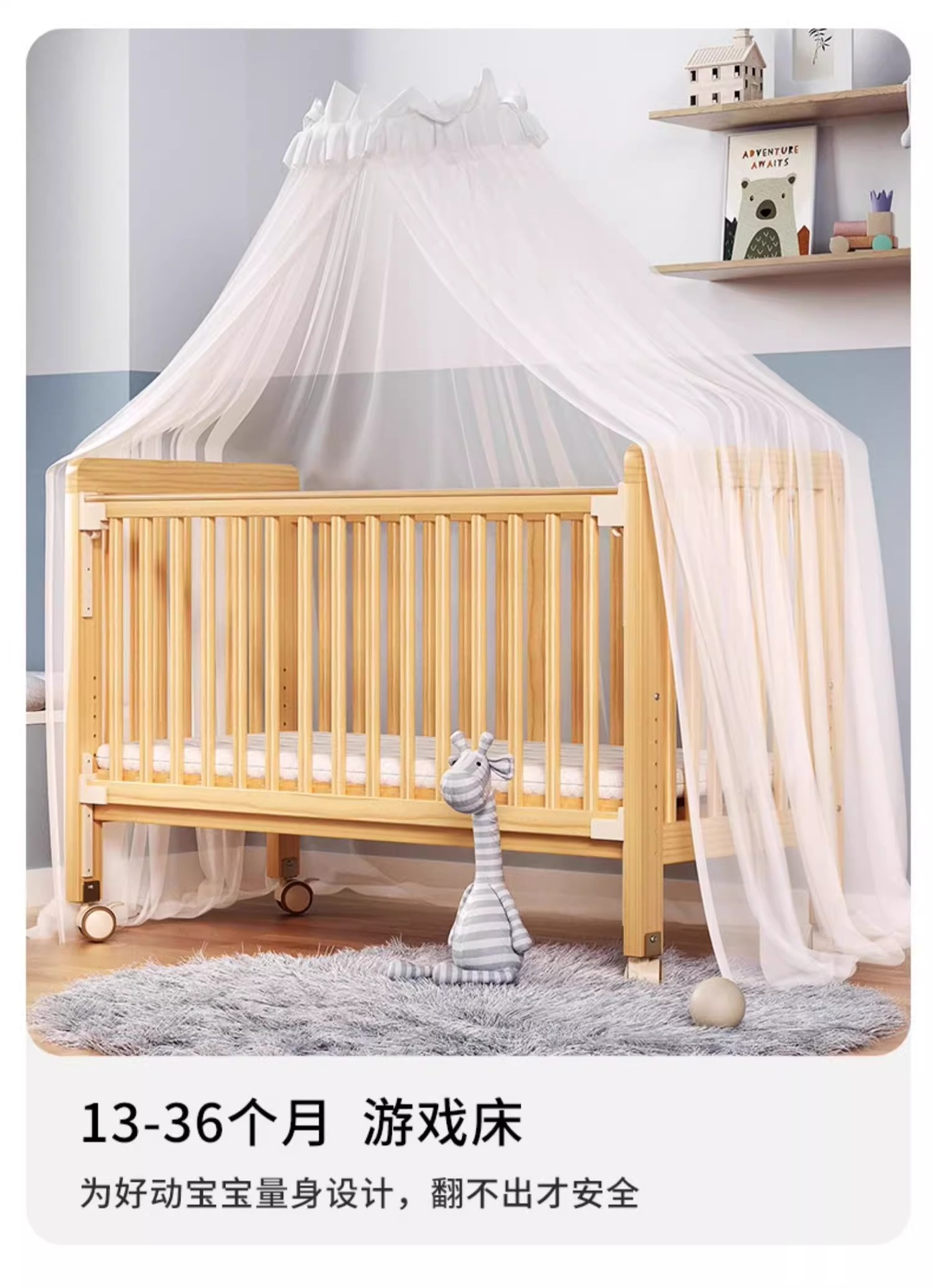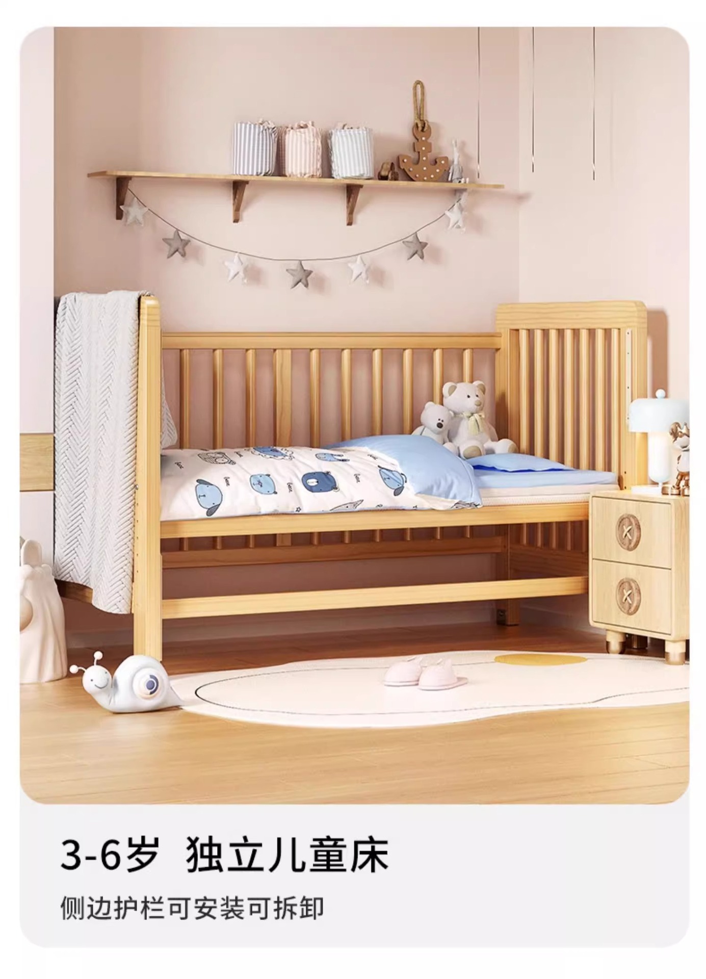 Детская кроватка-манеж Ariqi из массива дерева, многофункциональная, с возможностью приспособления в виде большой кровати, съемная люлька, кроватка для новорожденных