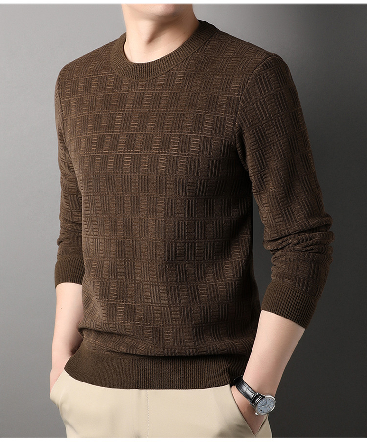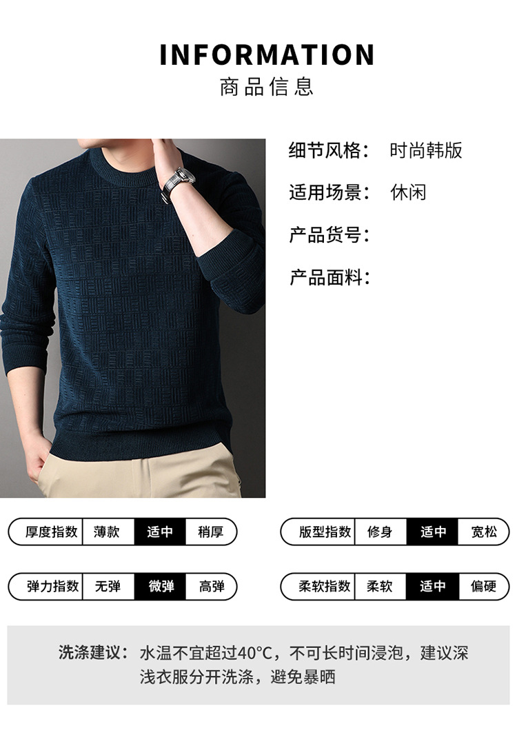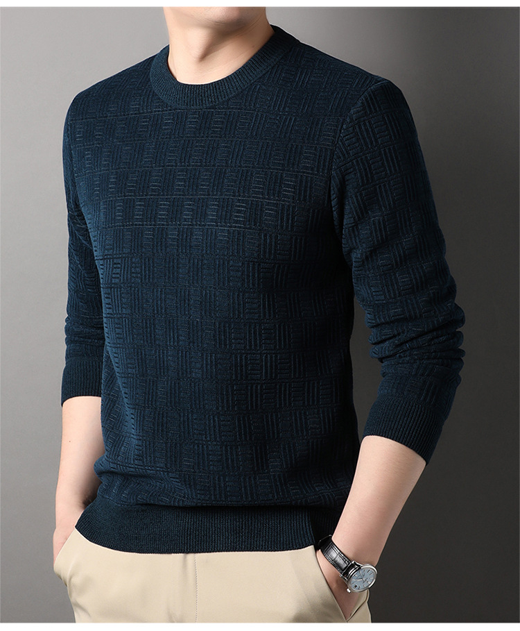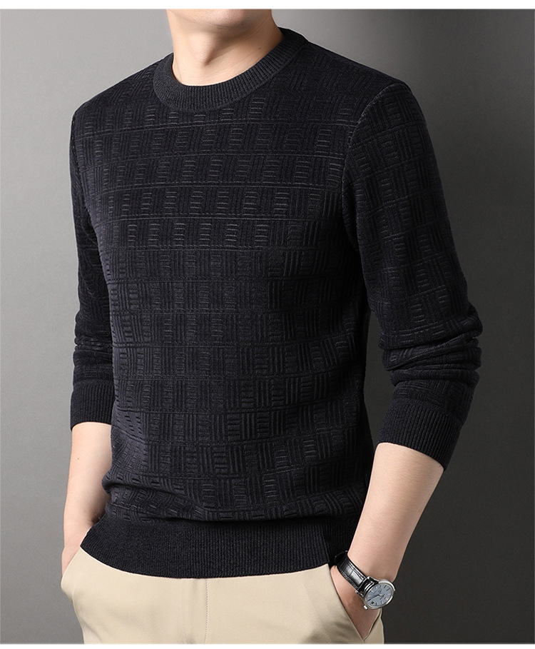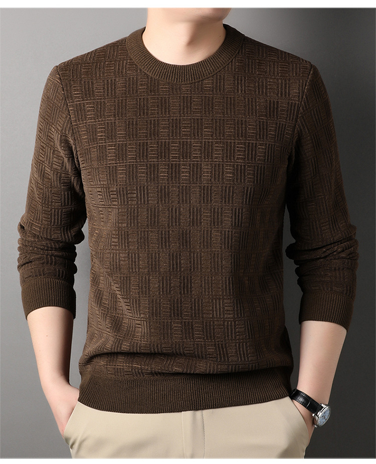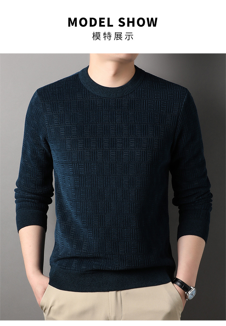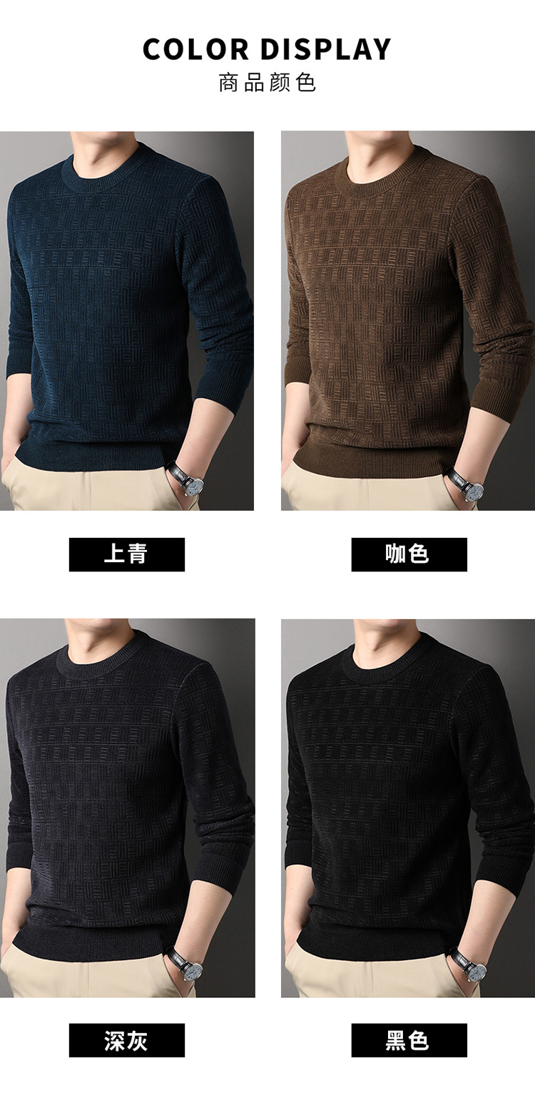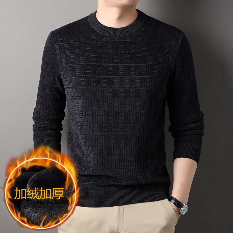 Трансграничная внешняя торговля Chenier Mahjong сетка свитер с длинными рукавами мужской зимний бархат толстый с круглым вырезом повседневный нижний свитер мужской