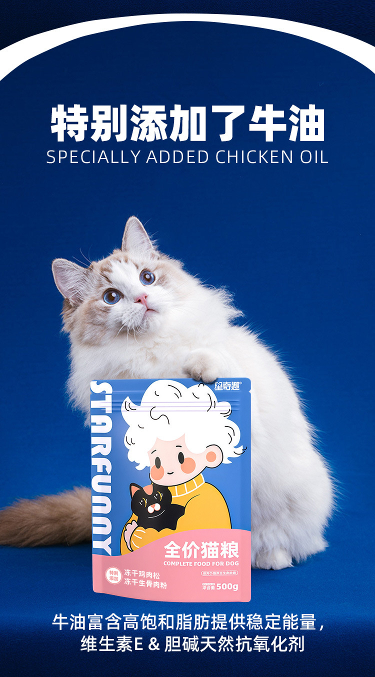 Полнопродовольственная корм для кошек Xingqiqu (500 г) с добавлением рыбьего жира; Корм для собак Xingqiqu по полной цене (500 г) с добавлением пробиотиков; Полнопродуктовый корм для собак сублимированный куриный корм для собак (10 кг)