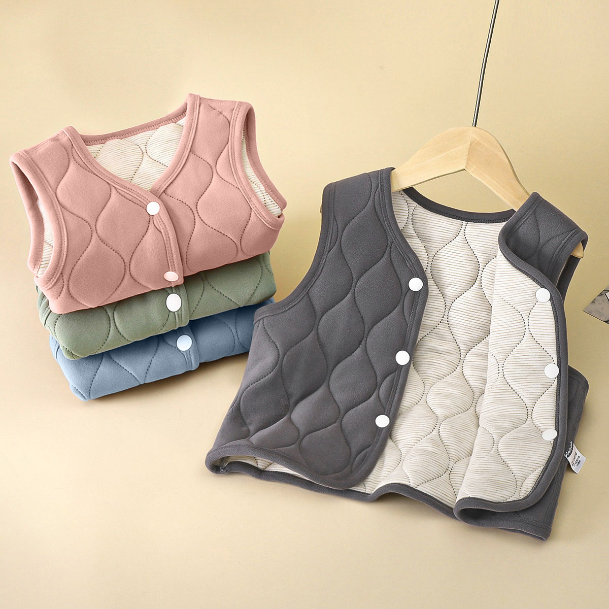 Осень и зима новая школьная форма артефакт для теплотехнического материала для мальчиков и девочек, утолщенная, средняя и большая детская теплая внутренняя одежда, одинарный верх, жилет в западном стиле.