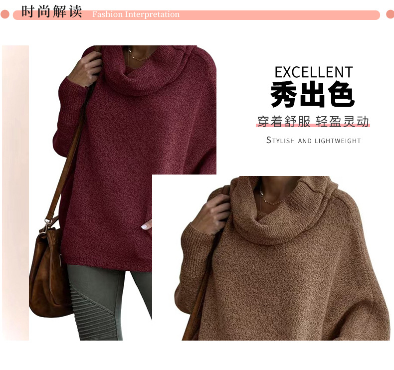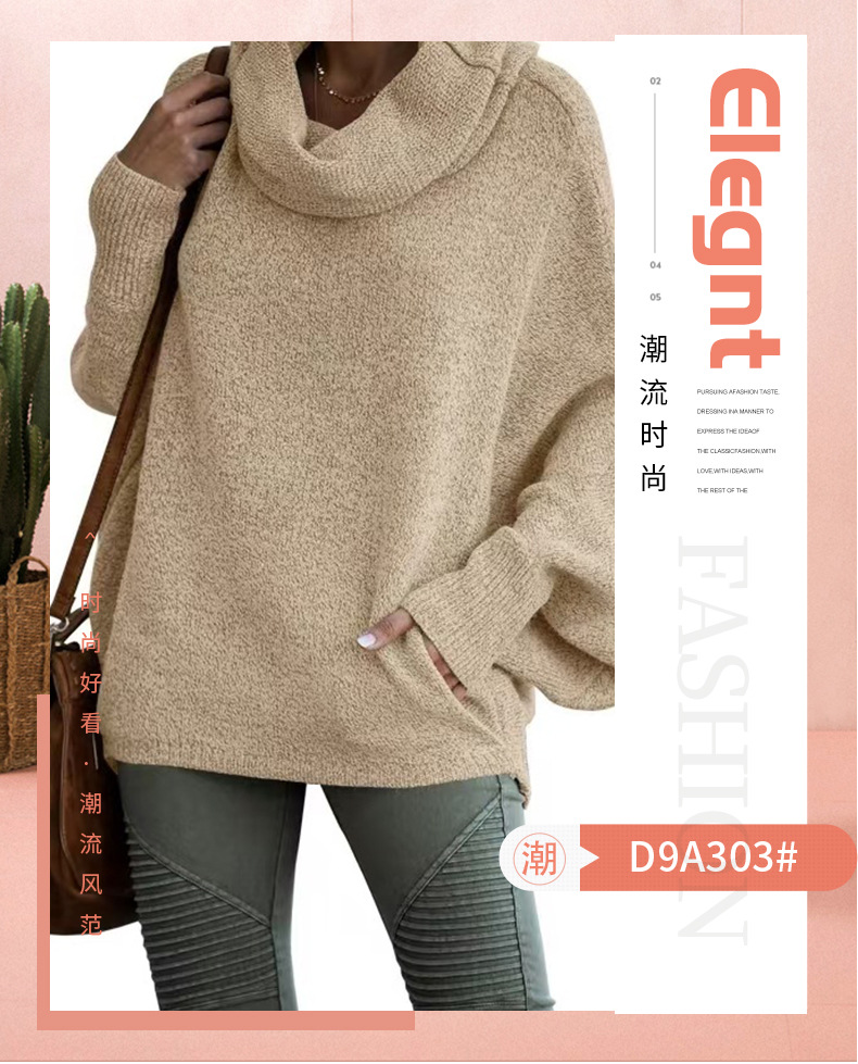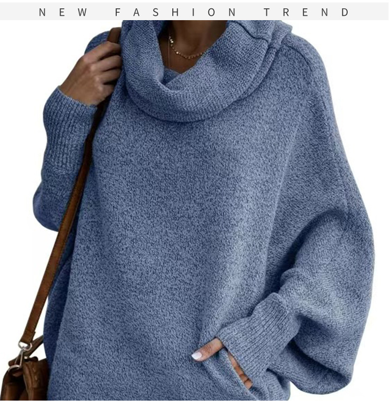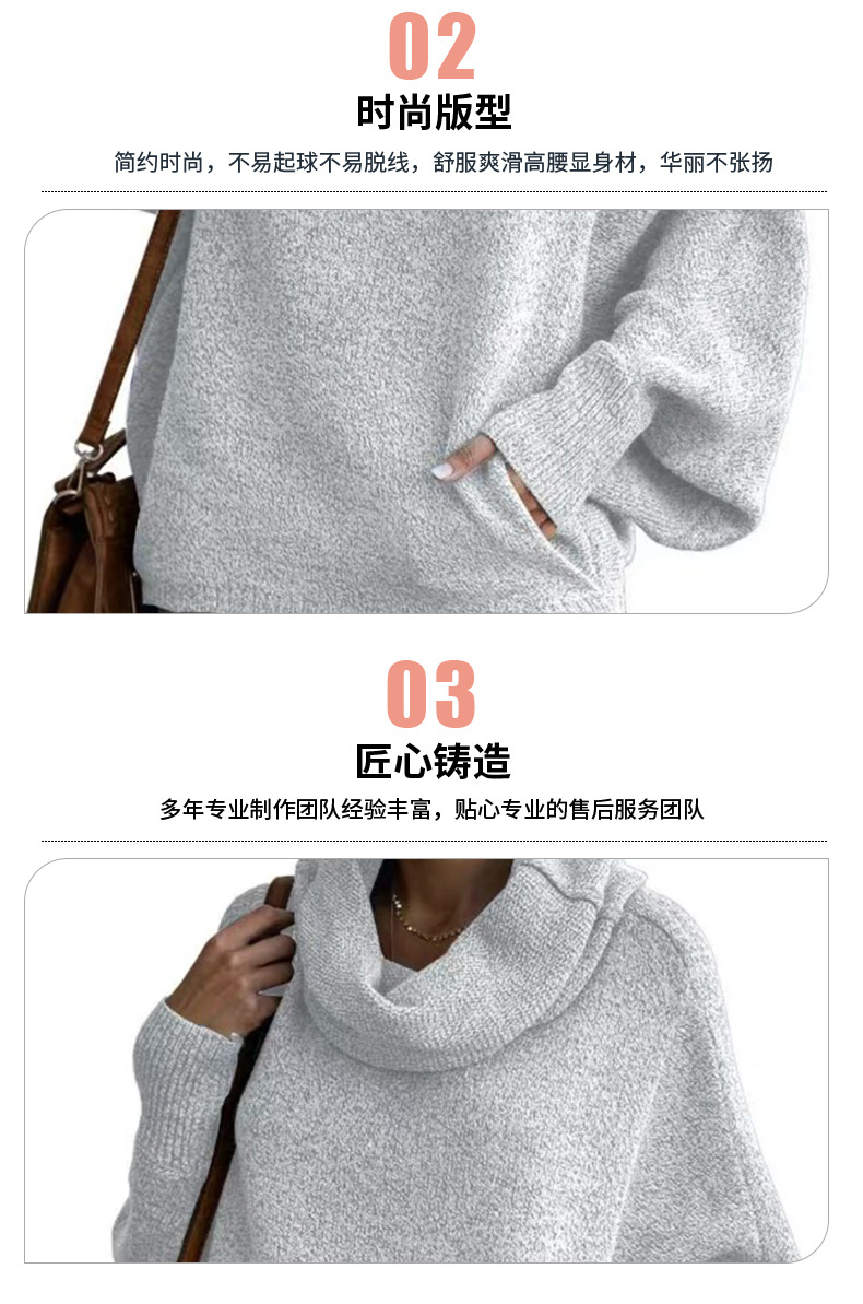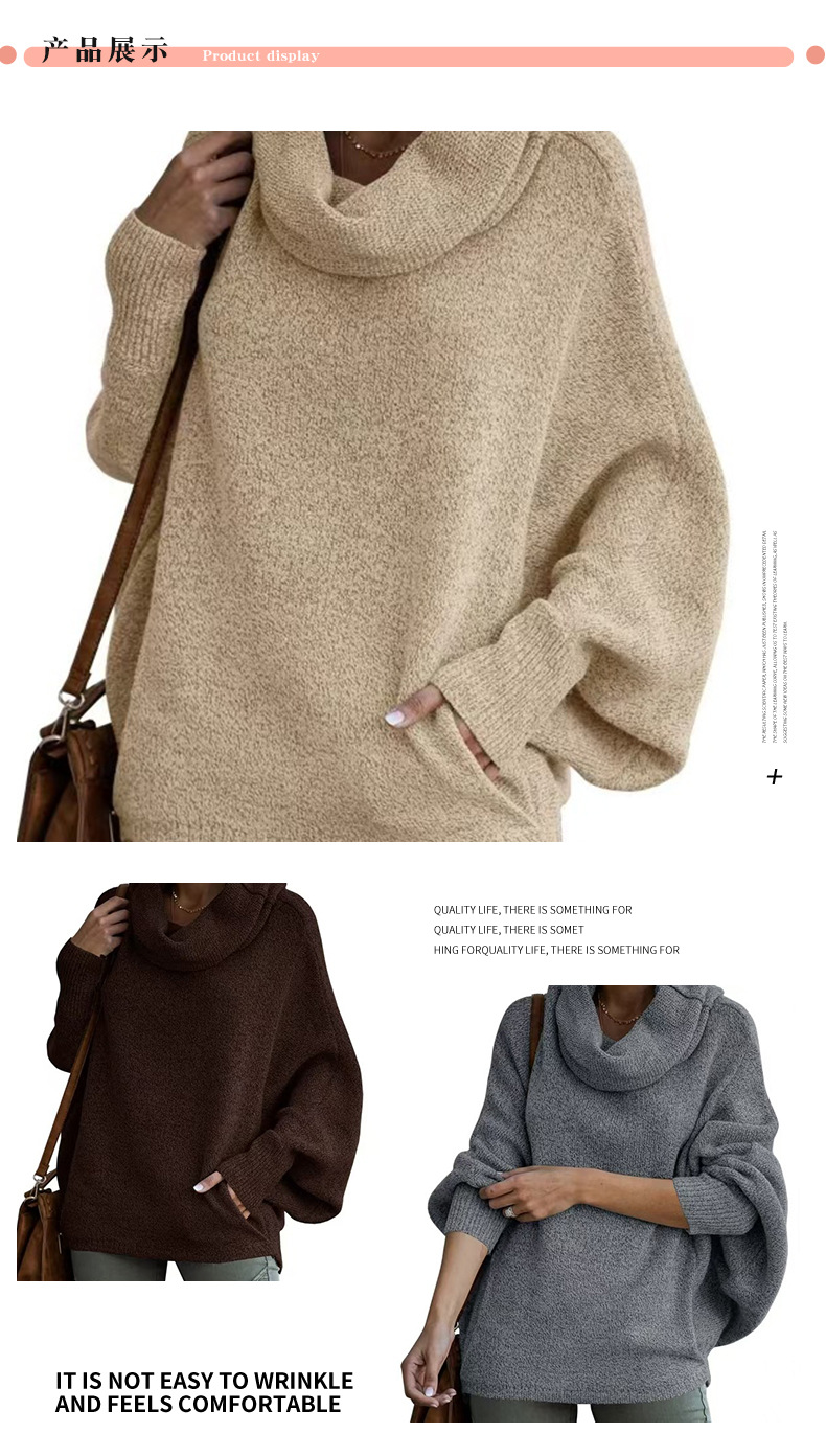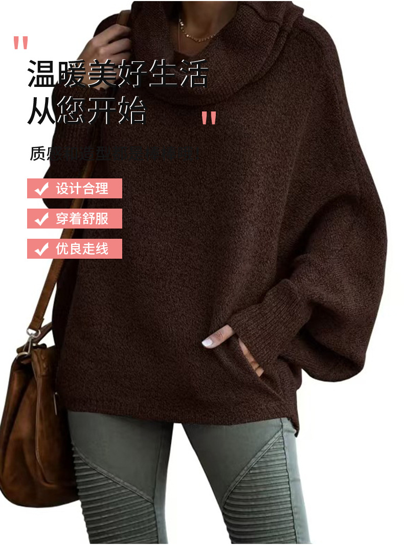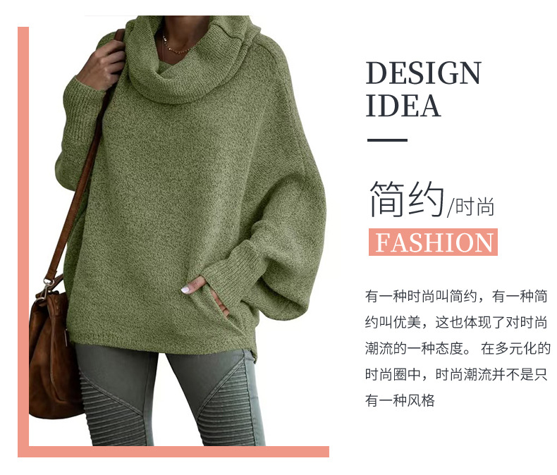 Трансграничный 2024 Amazon высокий воротник дамы сплошной цвет вязаный свитер модный пуловер фонарь свободный длинный рукав повседневный свитер