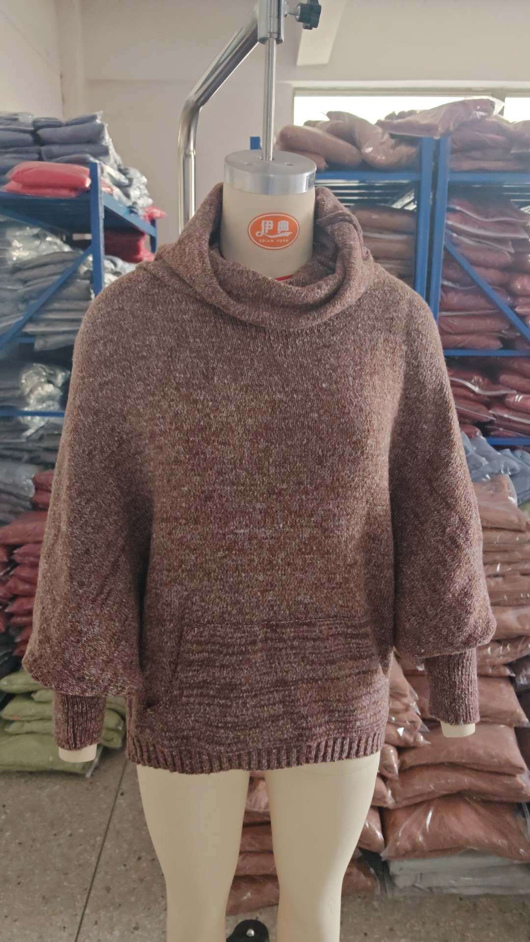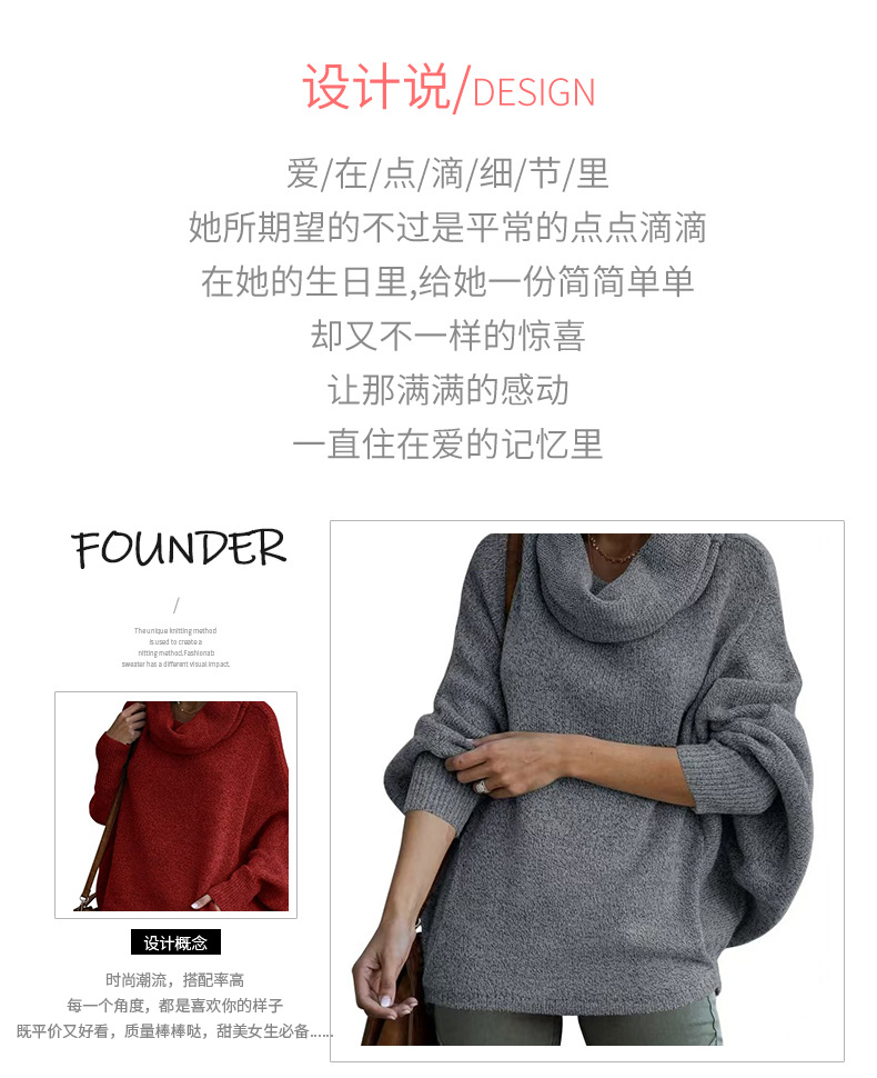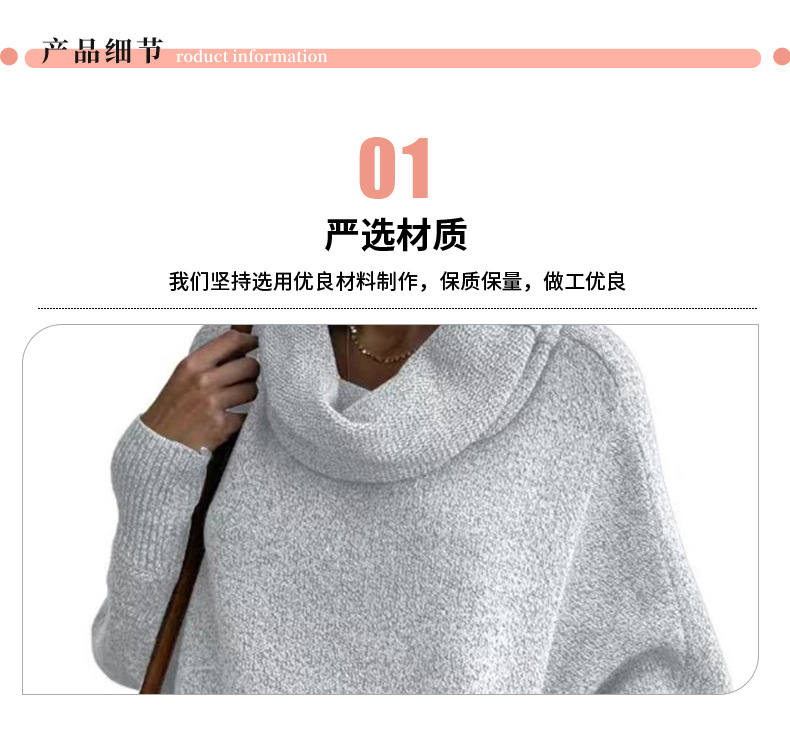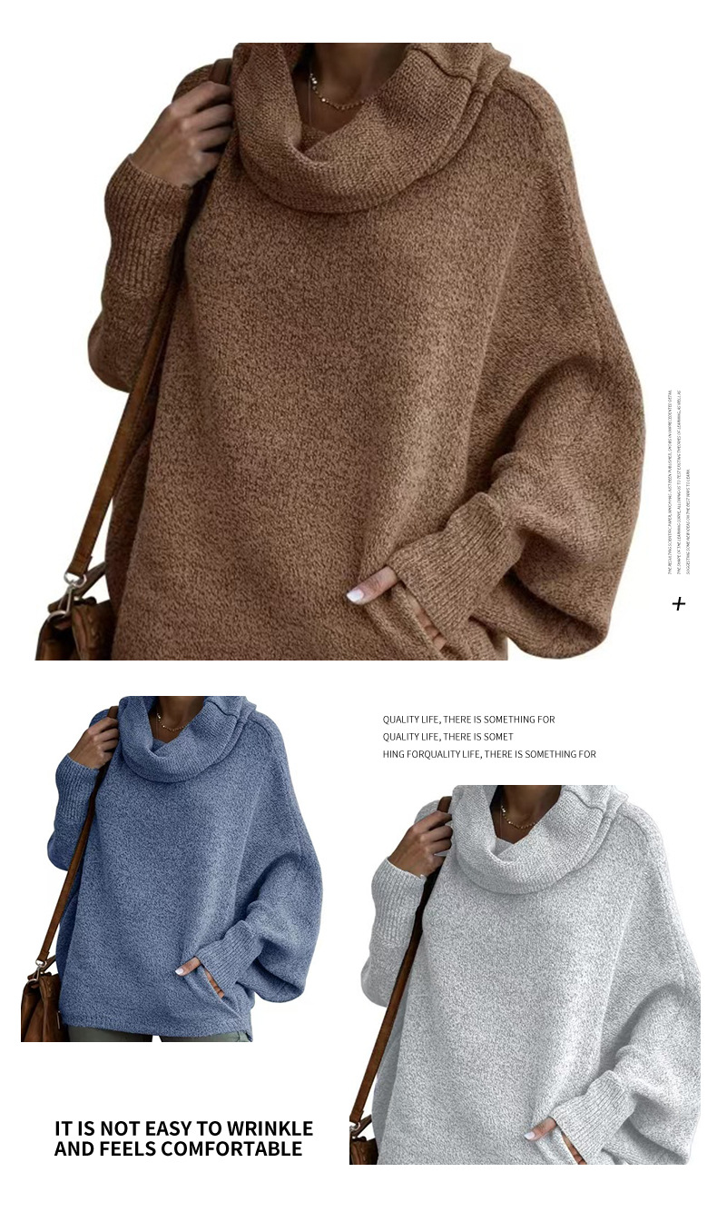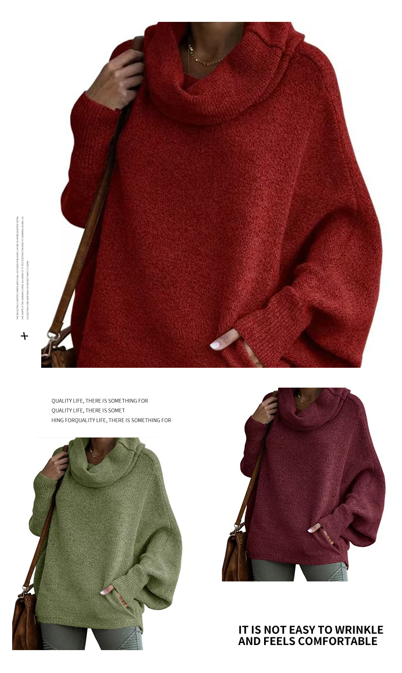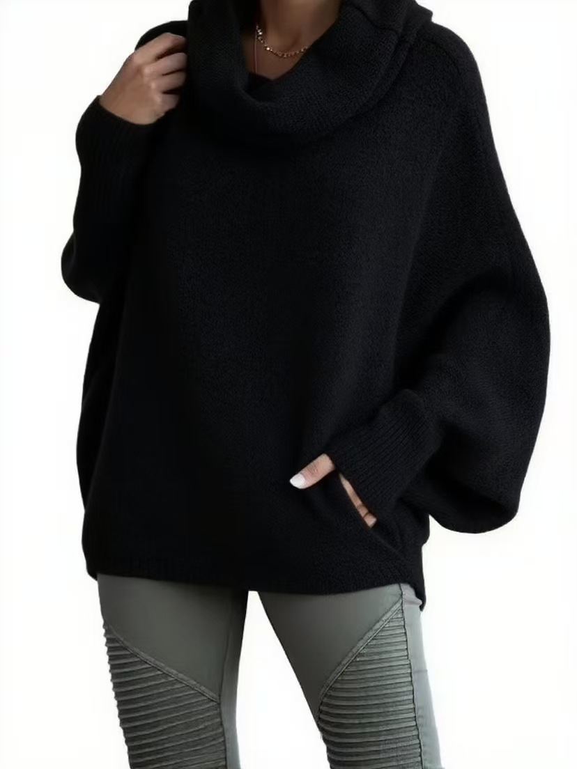 Трансграничный 2024 Amazon высокий воротник дамы сплошной цвет вязаный свитер модный пуловер фонарь свободный длинный рукав повседневный свитер