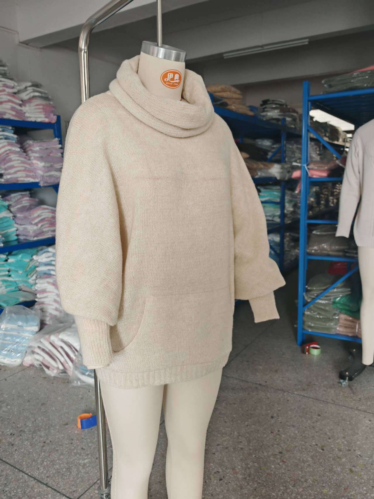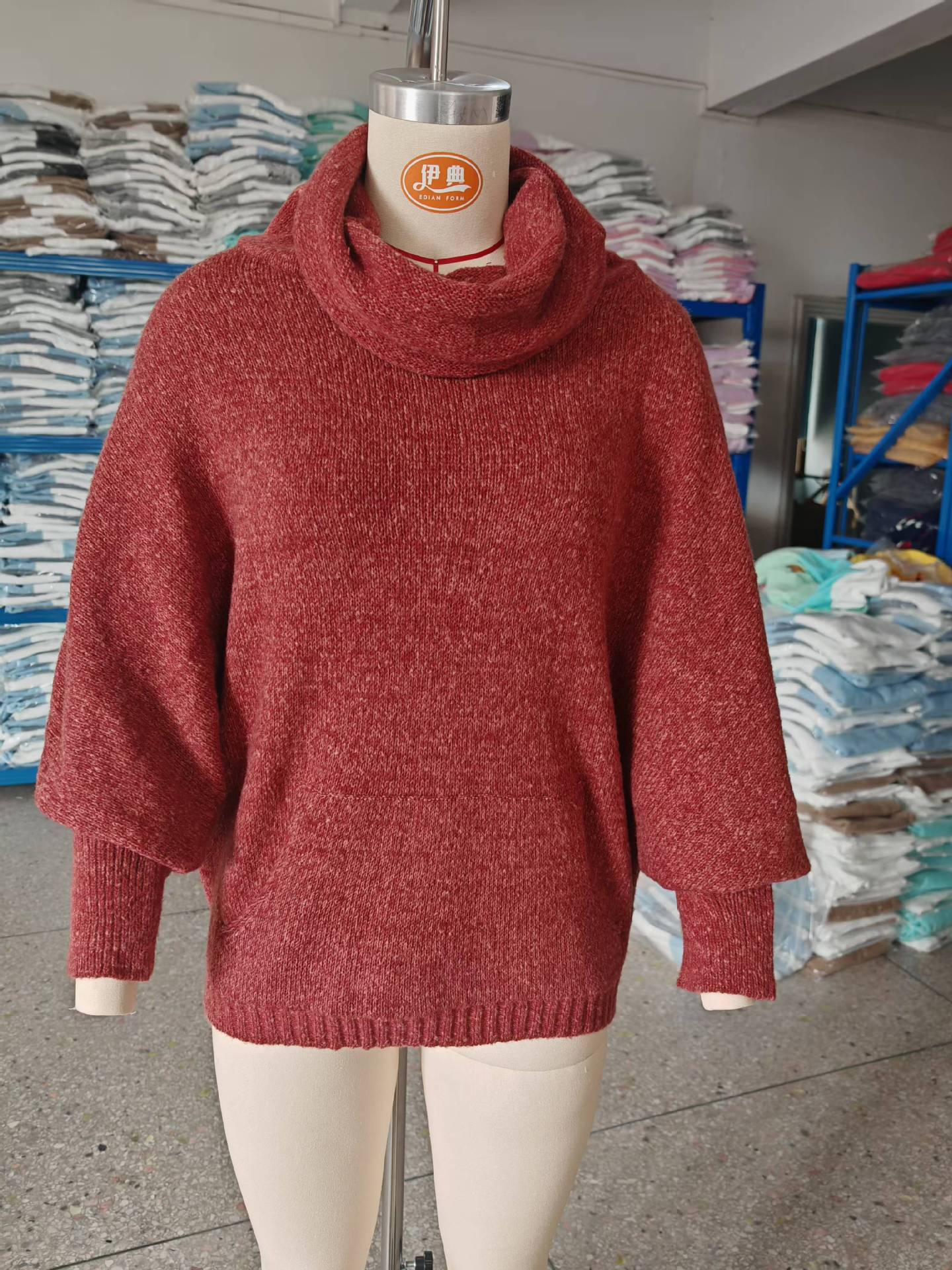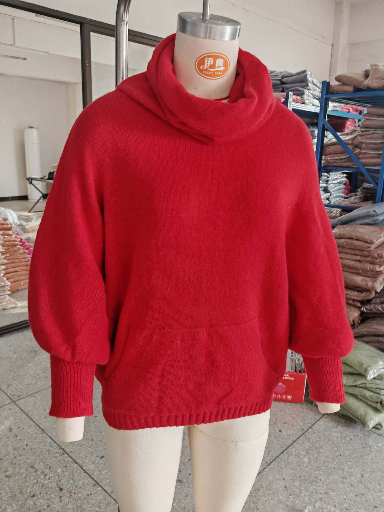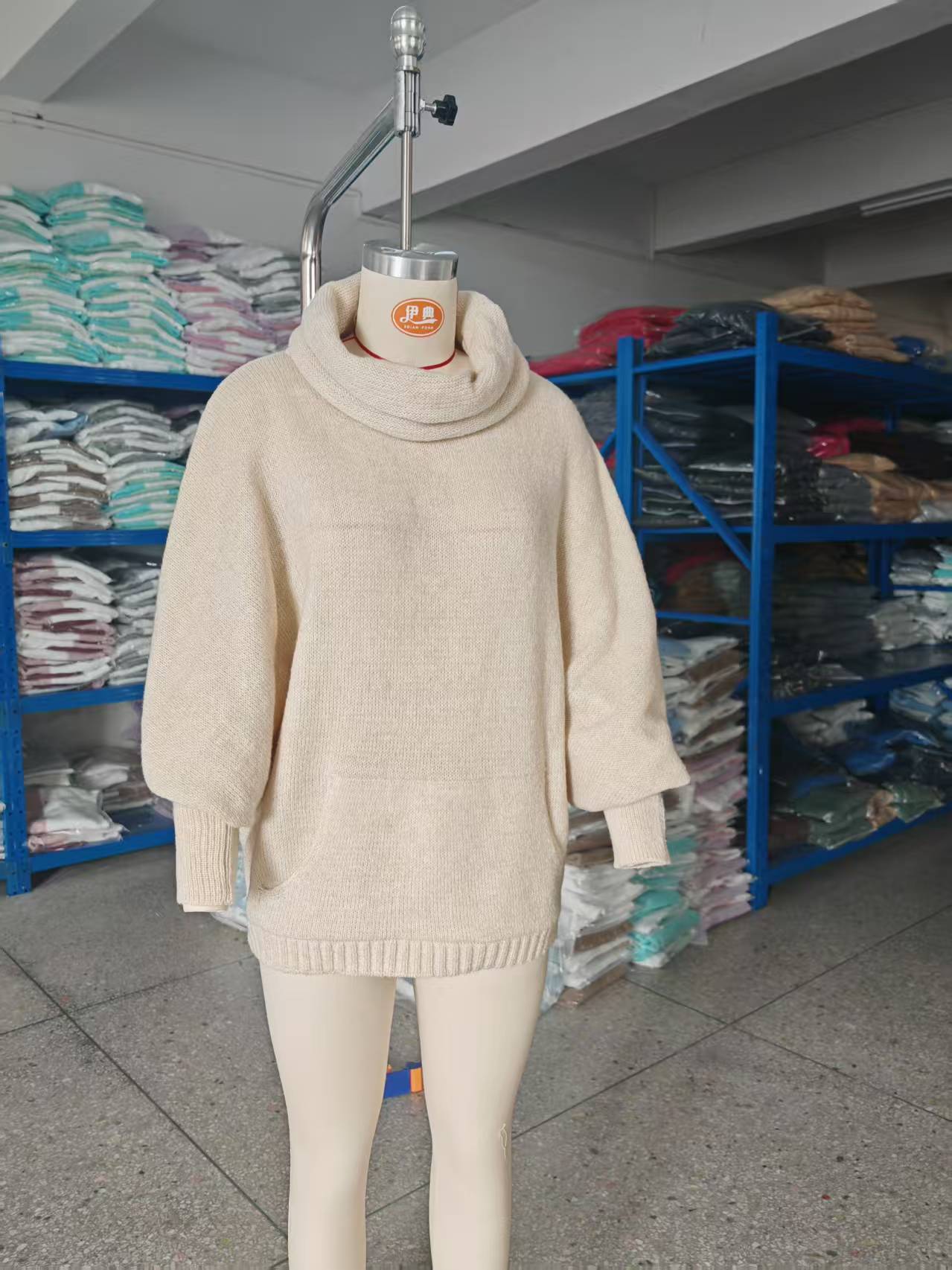 Трансграничный 2024 Amazon высокий воротник дамы сплошной цвет вязаный свитер модный пуловер фонарь свободный длинный рукав повседневный свитер