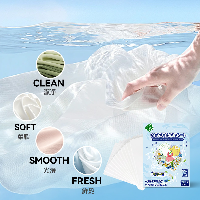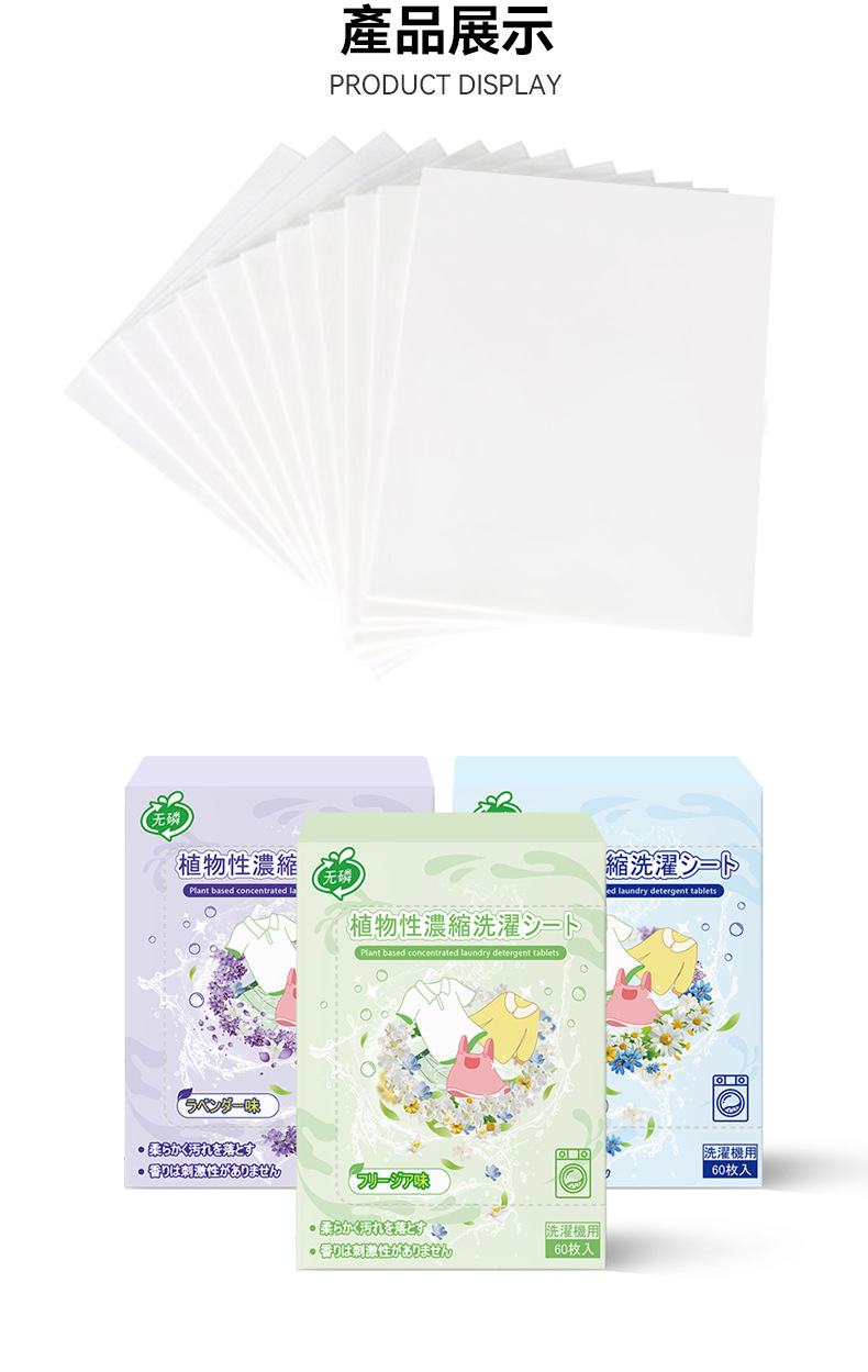 Средство для стирки в листах на растительной основе, концентрированное, высокоактивное, для удаления пятен, с низким пенообразованием, японская бумага, оптом, антибактериальное, свежий аромат